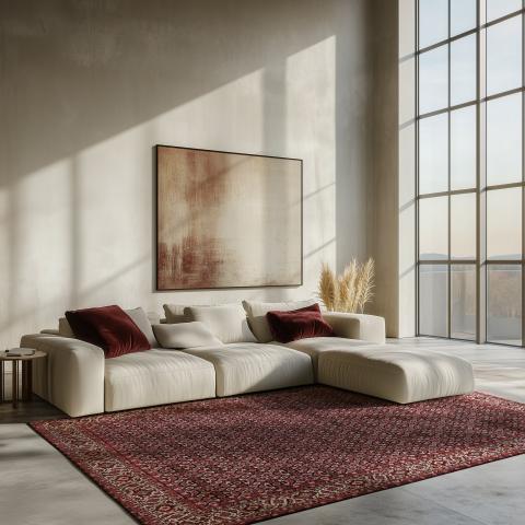 Handknutna mattor har en självklar plats i både klassiska och samtida interiörer. I moderna miljöer skapar kontrasten mellan tydlig arkitektur och ornamentala strukturer en särskild djup och dynamik.