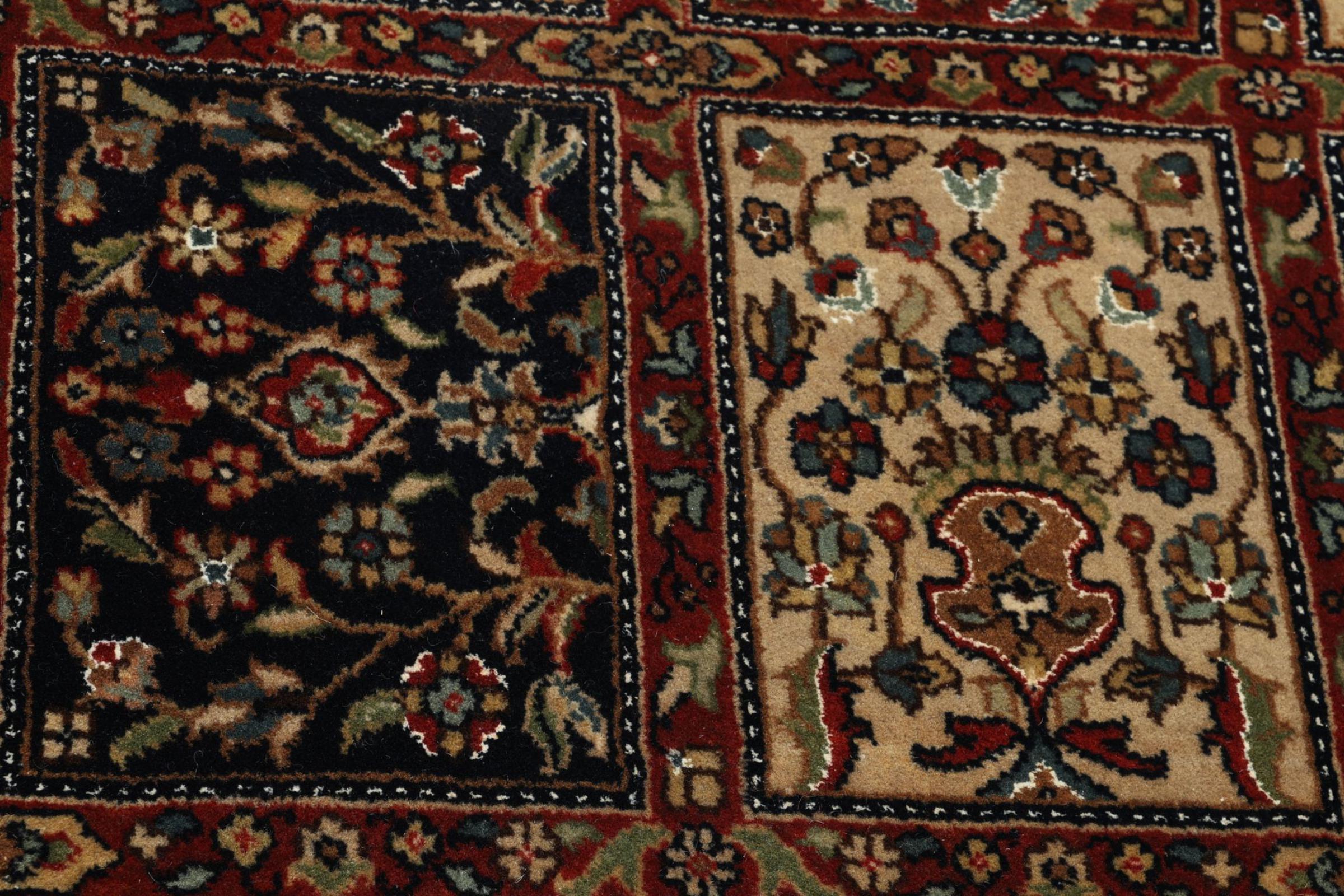 Mattans ID: 309181003796138 Storlek: 201x144 cm Tjocklek: ap. 12 mm Knuttäthet: 200 000 - 250 000 / m² Tillverkning: Knuten för hand Lugg: Ull med silke Varp: Bomull Ursprung: Indien Ålder: Ny Vikt: ap. 10 kg I lager: Unik - Endast 1 i lager