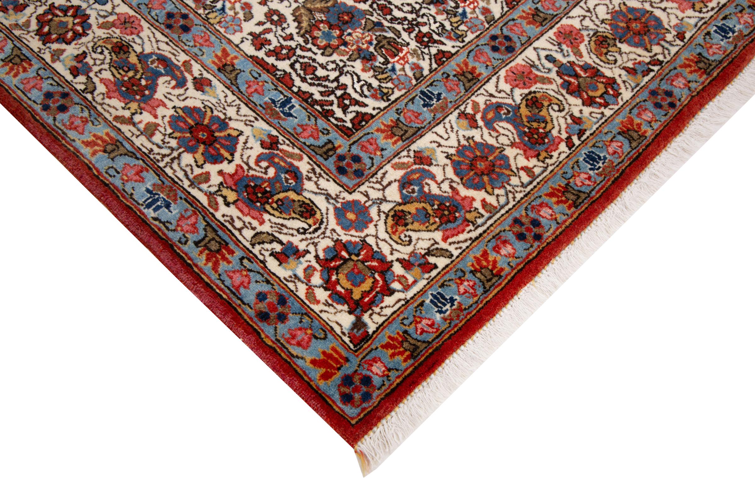 Det här mattan kommer från Iran (tidigare Persien) och är förmodligen det högsta rykte bland alla handknutna mattor som persisk matta. Ingen region ser tillbaka på en jämförbar lång tradition inom mattvätning än Iran. Så här kommer de finaste och mest utarbetade mattorna hit. Den persiska knutens robusthet, hållbarhet och kvalitet är fortfarande oöverträffad idag. Persiska mattor namnges vanligtvis efter din ursprungsregion. Så både en Nain, en Ghom och en Isfahan-matta kommer från staden med samma namn i Iran.