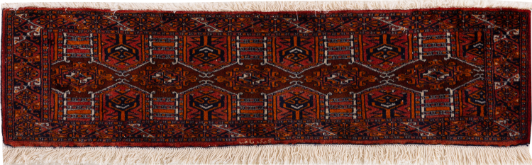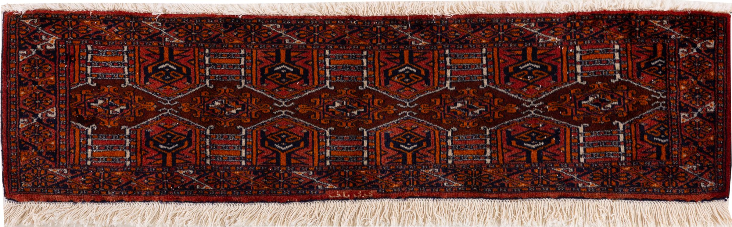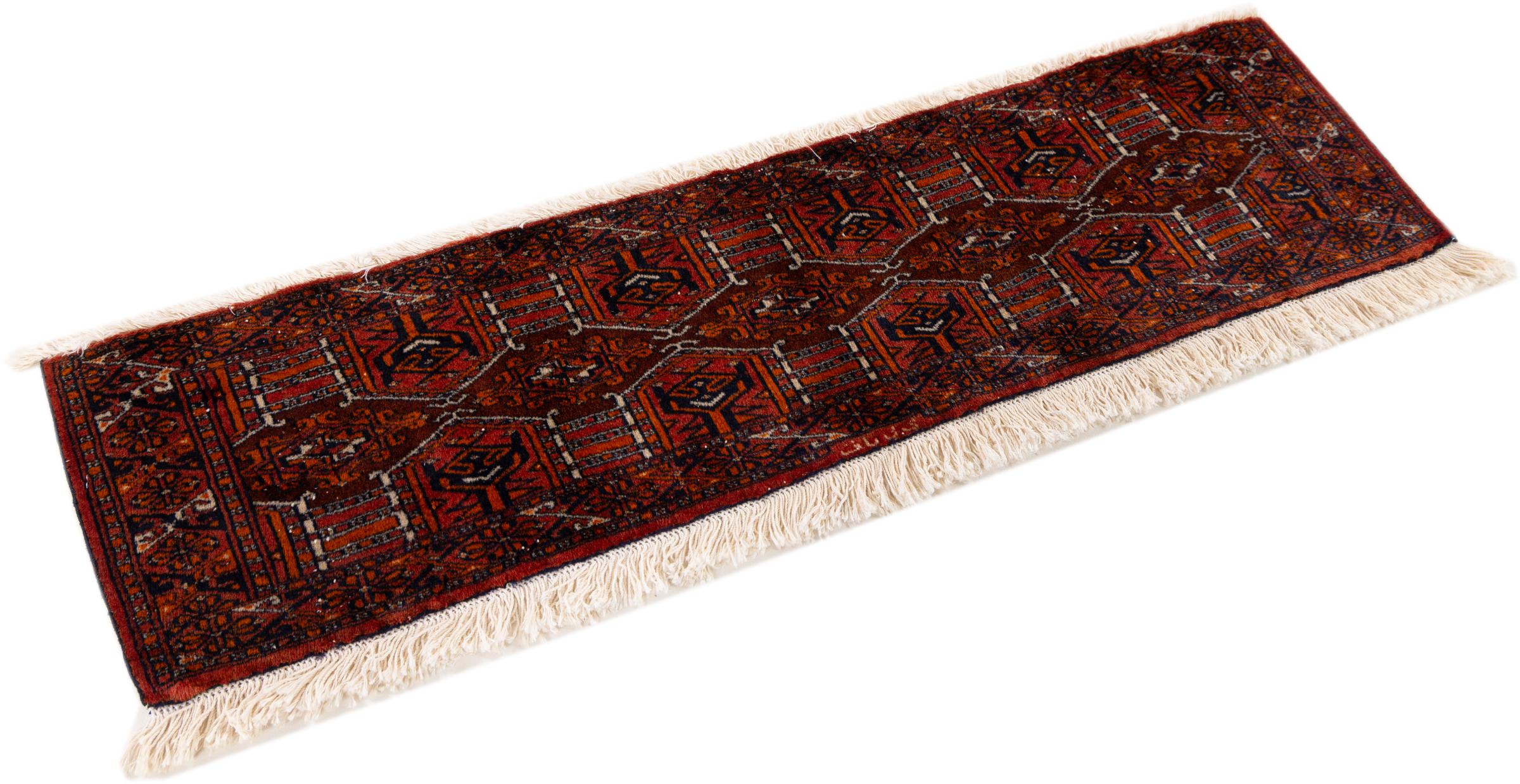Mattans ID: 30712500105628 Storlek: 31x127 cm Tjocklek: ap. 6 mm Knuttäthet: 440 000 - 490 000 / m² Tillverkning: Knuten för hand Lugg: Handspunnen ull Varp: Bomull Ursprung: Afghanistan Ålder: Ny Vikt: ap. 1 kg I lager: Unik - Endast 1 i lager
