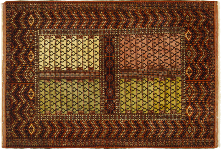Detta är en typisk afghansk matta som har handknutits av fårull. Den använda ullen kommer från lokala fårbesättningar och har inte importerats. Afghanska Mauri-mattor har mestadels mörkröda färger, vilket tyder på deras ursprung.