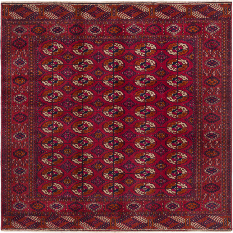 Mattans ID: 298535002539 Storlek: 202x203 cm Tjocklek: ap. 6 mm Knuttäthet: 160 000 - 200 000 / m² Tillverkning: Knuten för hand Lugg: Handspunnen ull Varp: Ull Ursprung: Afghanistan Ålder: Ny Vikt: ap. 14 kg Också känd som Afgan, Afghán, Afgán, Aqche I lager: Unik - Endast 1 i lager