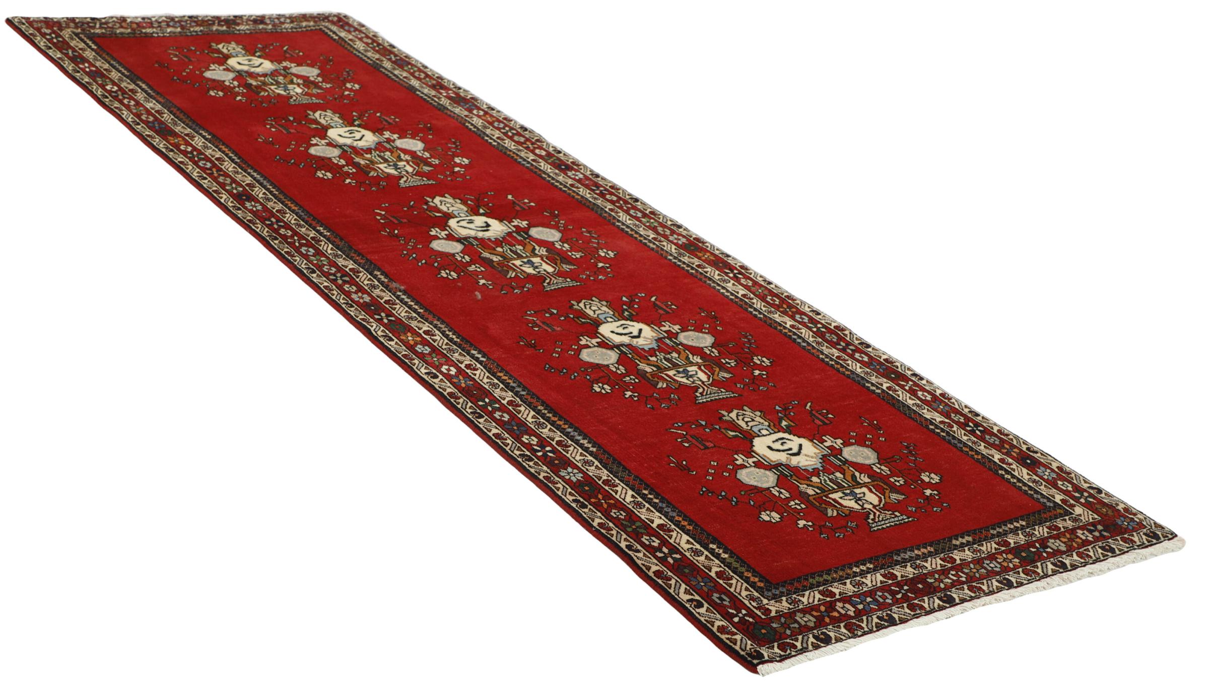Mattans ID: 233760008521443 Storlek: 291x101 cm Tjocklek: ap. 12 mm Knuttäthet: 200 000 - 250 000 / m² Tillverkning: Knuten för hand Lugg: Handspunnen ull Varp: Bomull Ursprung: Persien / Iran Ålder: Ny Vikt: ap. 10 kg Också känd som Kerman-Afshar, Sirjan I lager: Unik - Endast 1 i lager