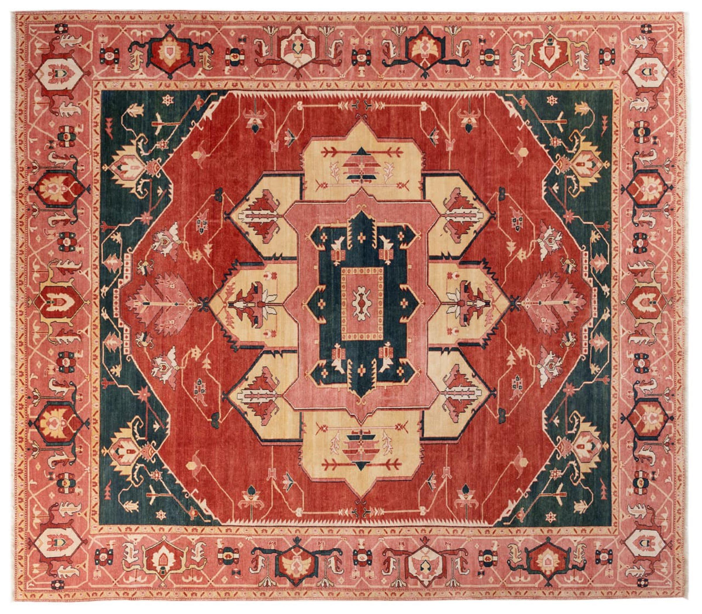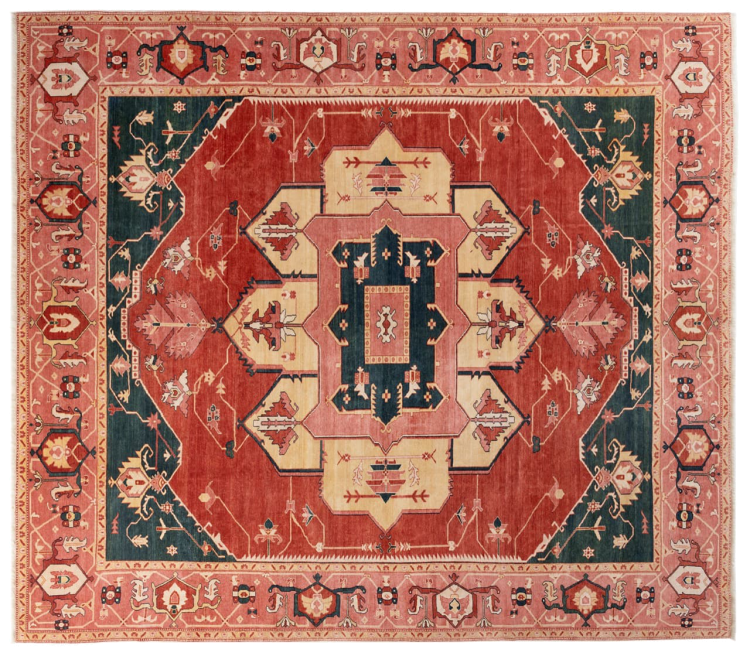 Mattans ID: 299069002860514 Storlek: 378x339 cm Tjocklek: ap. 6 mm Knuttäthet: 160 000 - 200 000 / m² Tillverkning: Knuten för hand Lugg: Handspunnen ull Varp: Bomull Ursprung: kalkon Ålder: Ny Vikt: ap. 45 kg Också känd som Ariana I lager: Unik - Endast 1 i lager