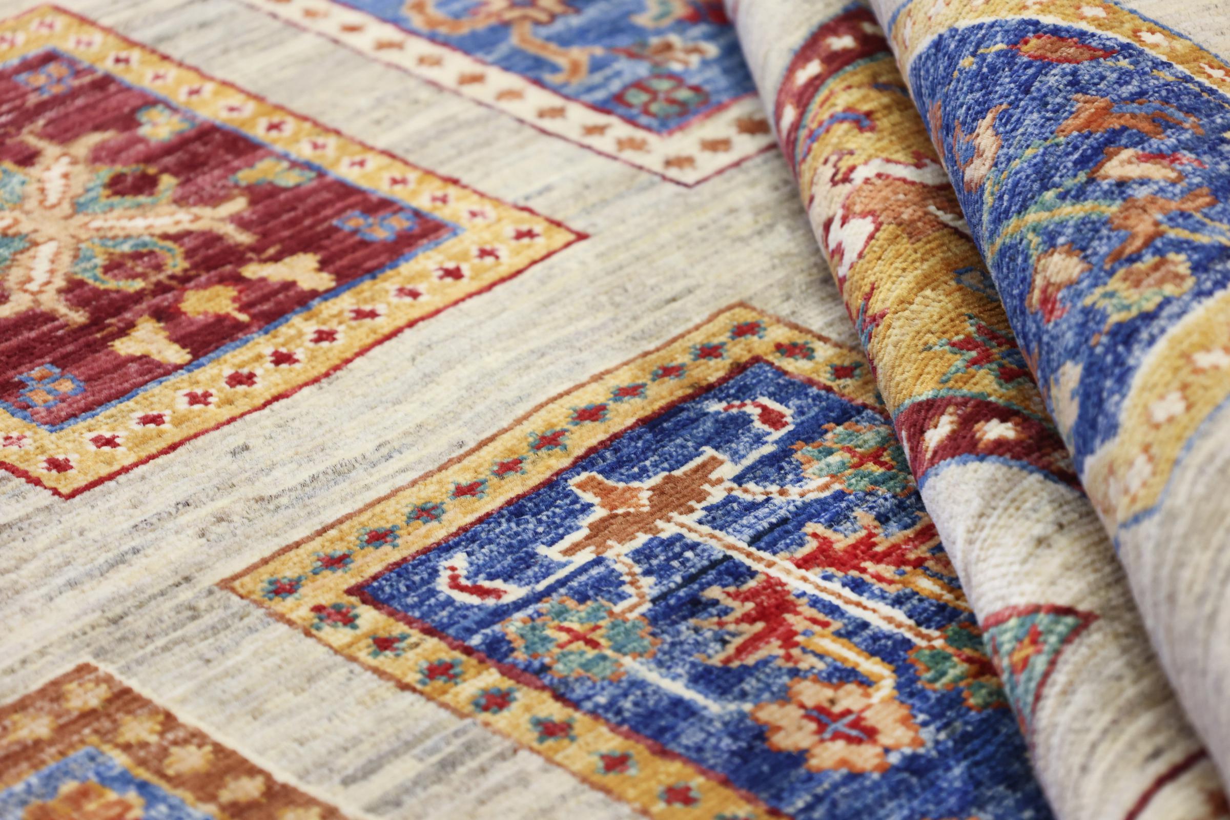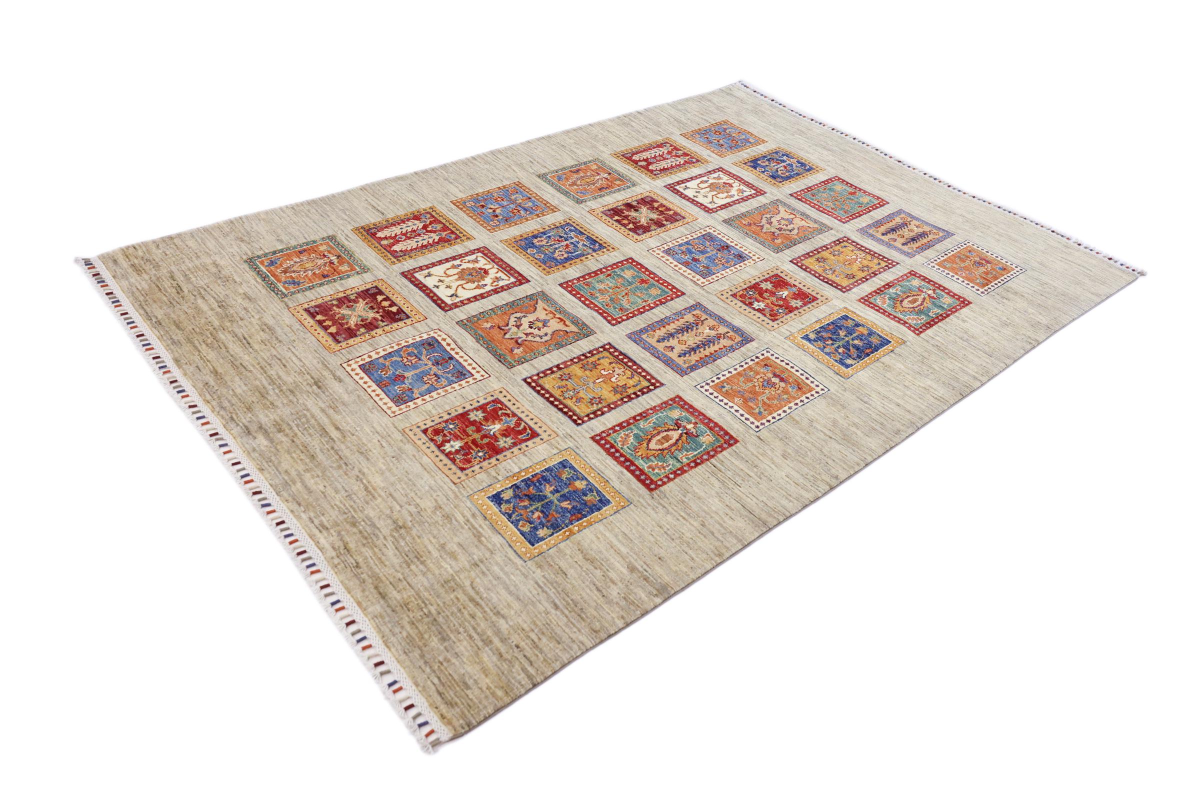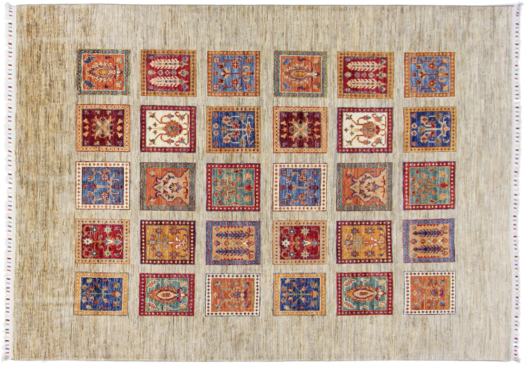 Mattans ID: 185243003752325 Storlek: 275x175 cm Tjocklek: ap. 5 mm Knuttäthet: 160 000 - 200 000 / m² Tillverkning: Knuten för hand Lugg: Handspunnen ull Varp: Bomull Ursprung: Afghanistan Ålder: Ny Vikt: ap. 17 kg I lager: Unik - Endast 1 i lager
