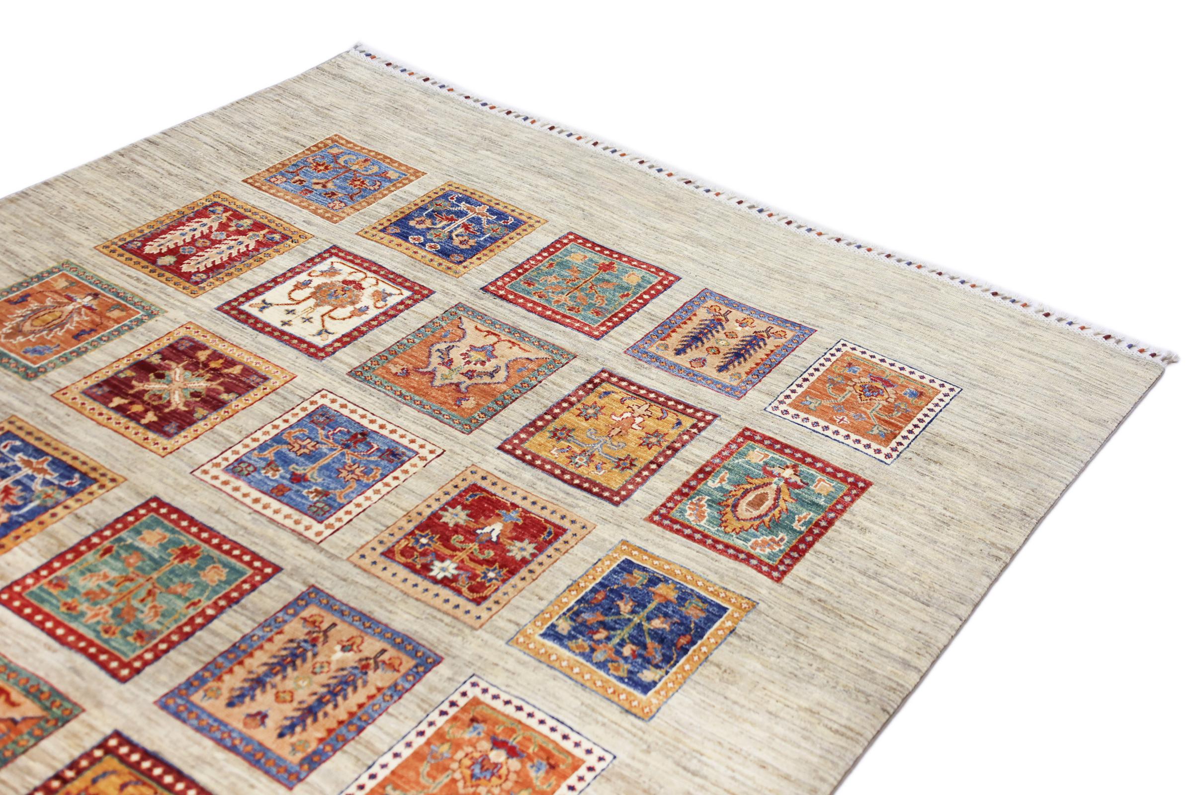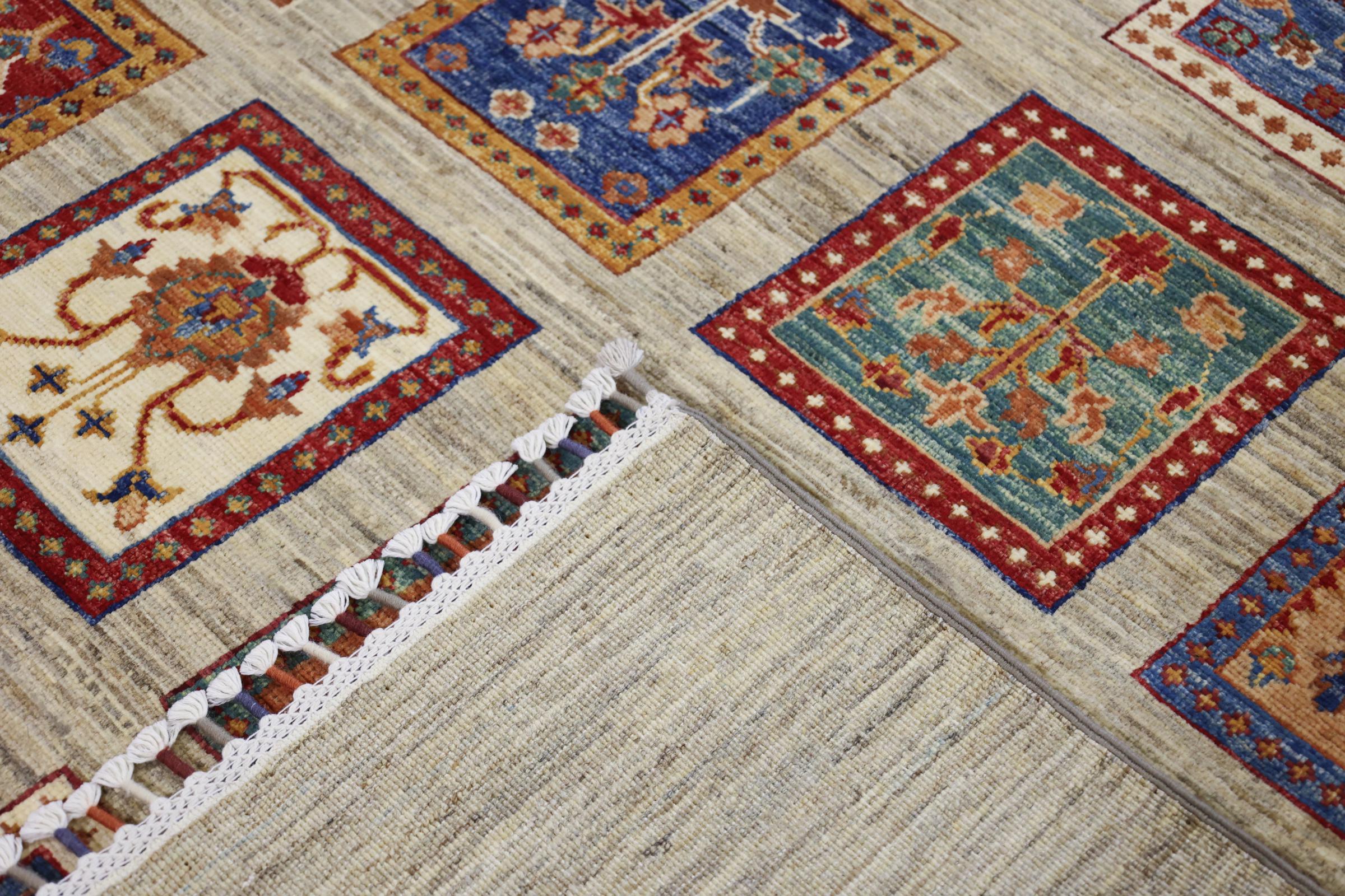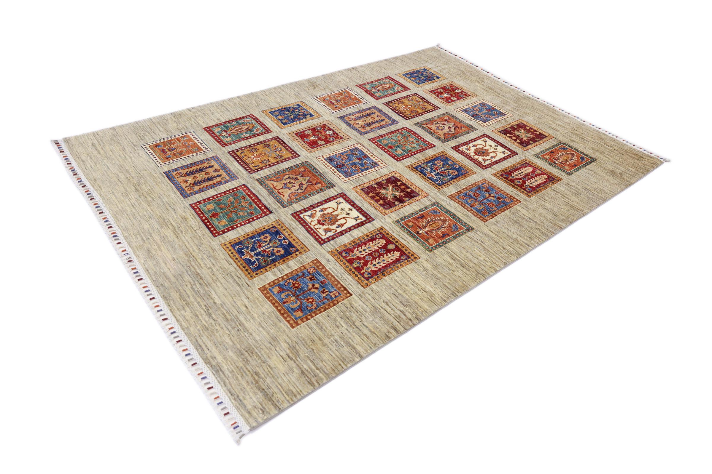 Mattans ID: 185243003752325 Storlek: 275x175 cm Tjocklek: ap. 5 mm Knuttäthet: 160 000 - 200 000 / m² Tillverkning: Knuten för hand Lugg: Handspunnen ull Varp: Bomull Ursprung: Afghanistan Ålder: Ny Vikt: ap. 17 kg I lager: Unik - Endast 1 i lager