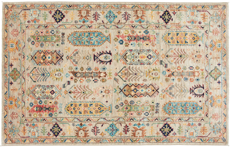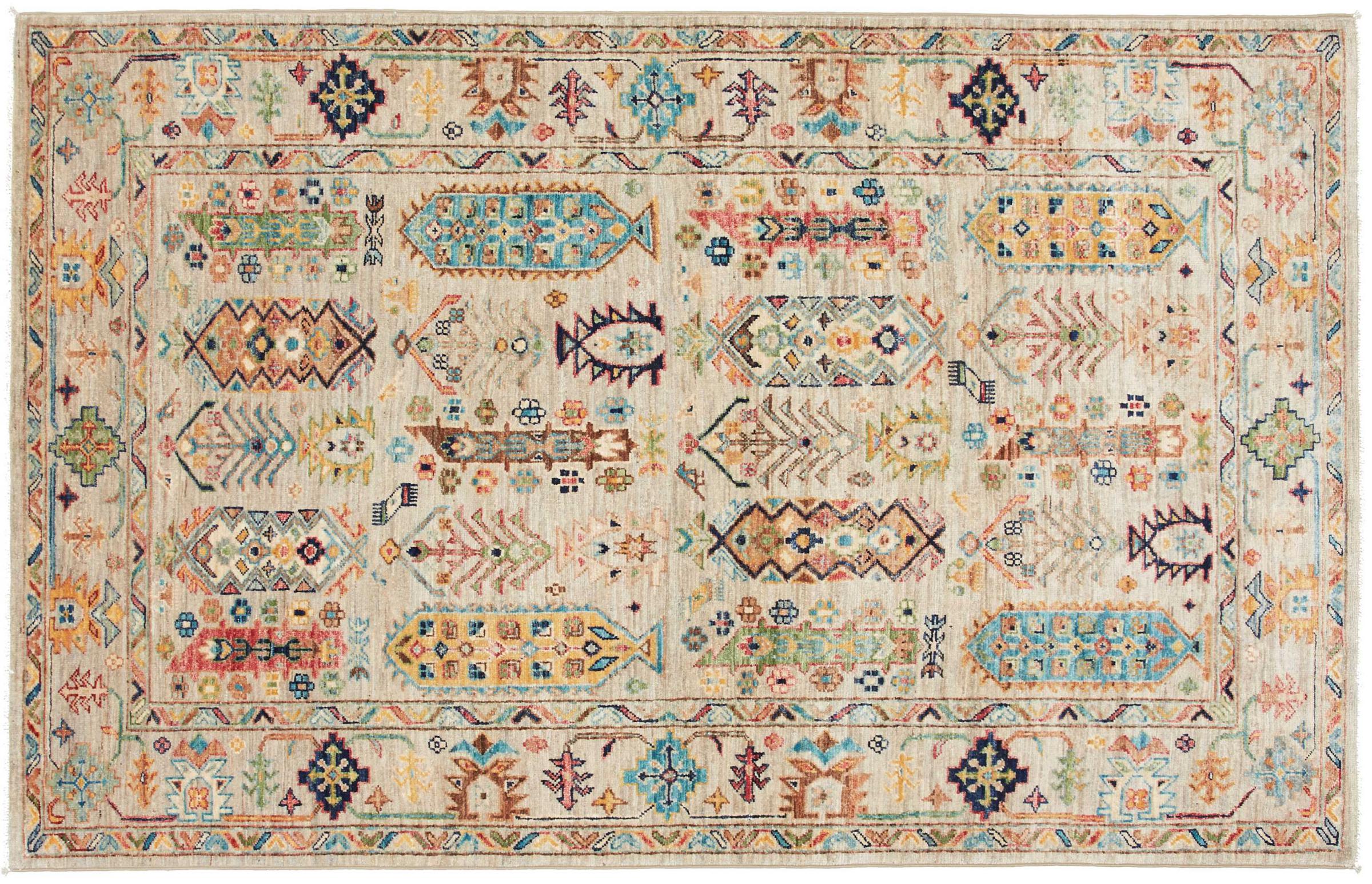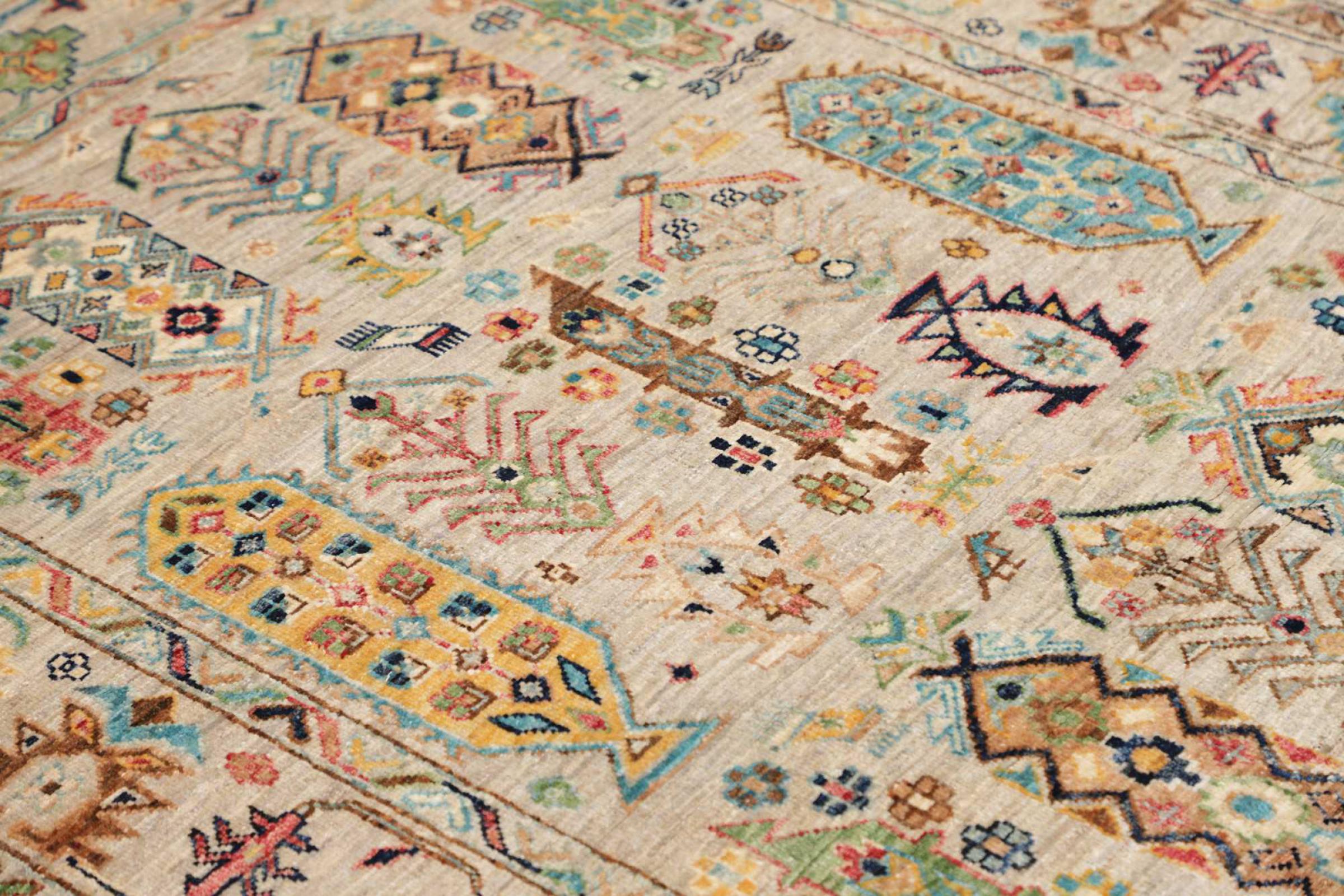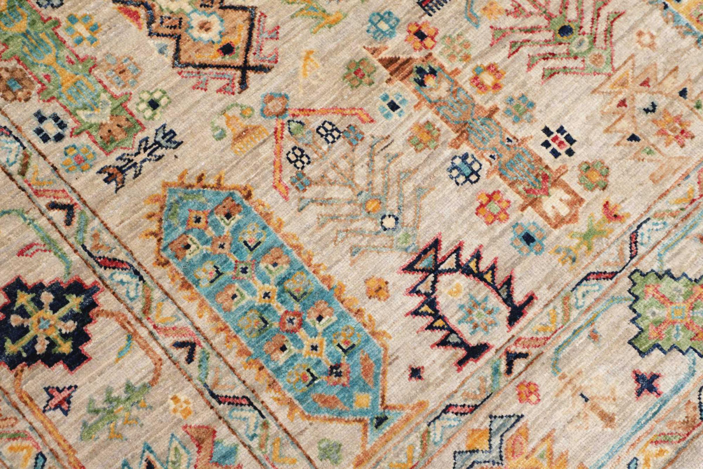 Mattans ID: 286435004159140 Storlek: 194x121 cm Tjocklek: ap. 5 mm Knuttäthet: 128 000 - 160 000 / m² Tillverkning: Knuten för hand Lugg: Handspunnen ull Varp: Bomull Ursprung: pakistan Ålder: Ny Vikt: ap. 8 kg I lager: Unik - Endast 1 i lager