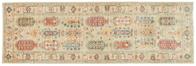Mattans ID: 286542008728044 Storlek: 247x81 cm Tjocklek: ap. 5 mm Knuttäthet: 128 000 - 160 000 / m² Tillverkning: Knuten för hand Lugg: Handspunnen ull Varp: Bomull Ursprung: pakistan Ålder: Ny Vikt: ap. 7 kg I lager: Unik - Endast 1 i lager