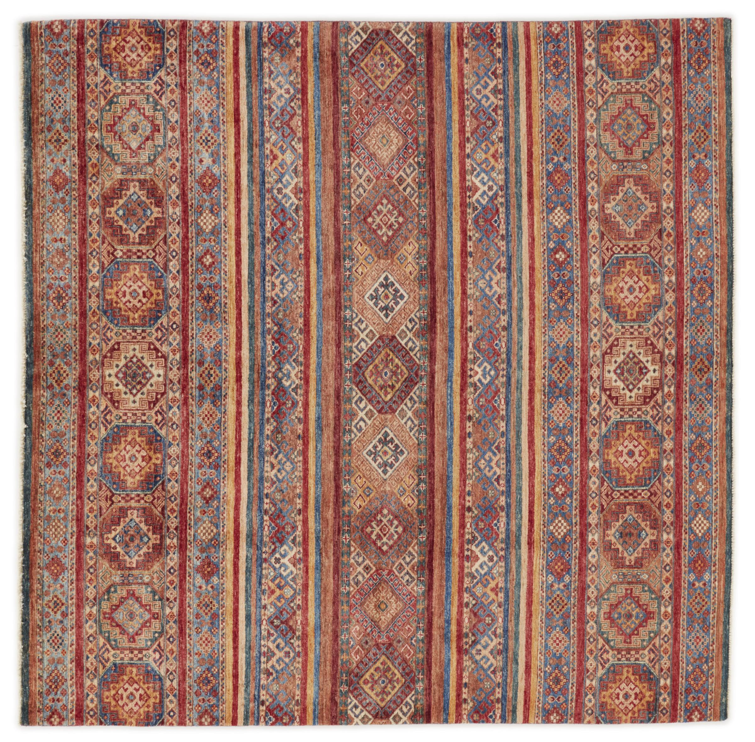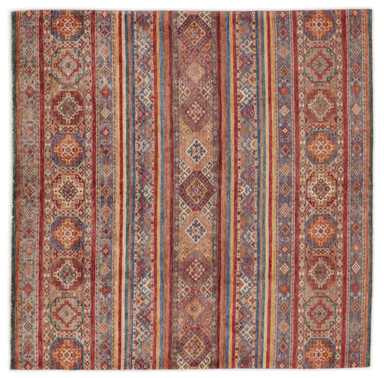 Mattans ID: 291877009799683 Storlek: 202x201 cm Tjocklek: ap. 5 mm Knuttäthet: 160 000 - 200 000 / m² Tillverkning: Knuten för hand Lugg: Handspunnen ull Varp: Bomull Ursprung: Afghanistan Ålder: Ny Vikt: ap. 14 kg I lager: Unik - Endast 1 i lager