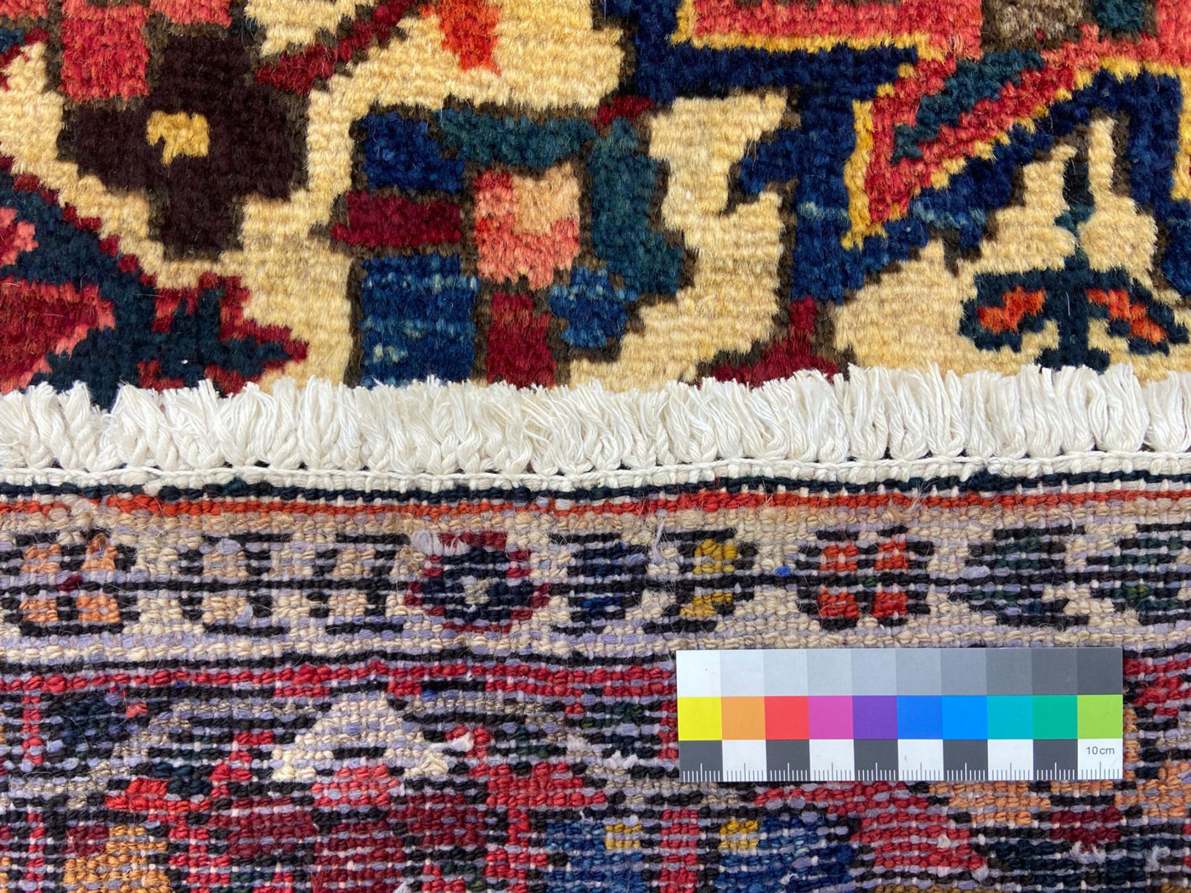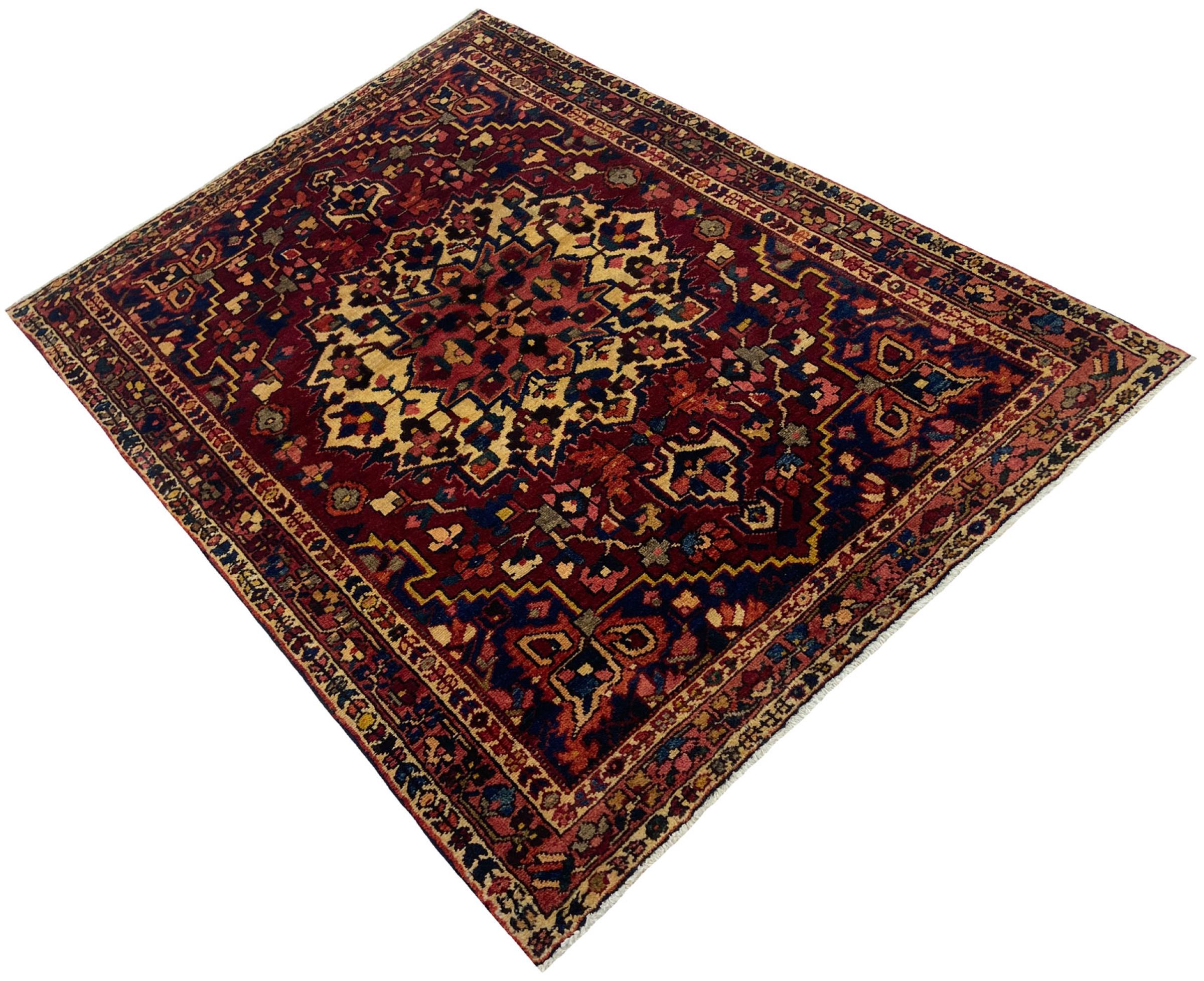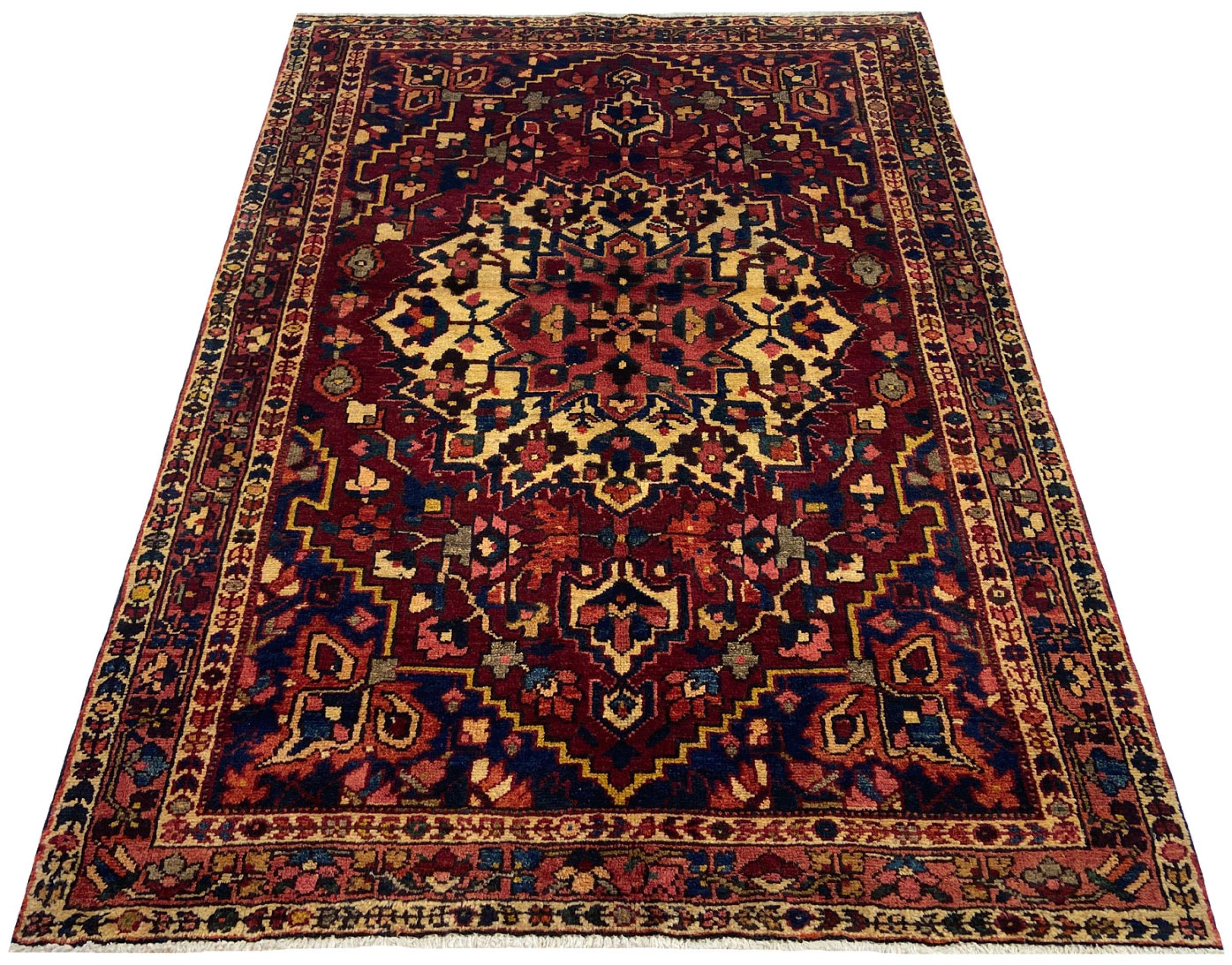 Denna persiska Bakhtiar var handknuten av nomader från Bakhtiari-stammen. Denna persiska matta spelar med färgerna på Orienten i vackra mönster. Utformningen av dess ornament är inspirerad av persiska trädgårdar. Den så kallade traditionella trädgårdsdesignen har blivit mycket populär i den västra världen genom åren. Dess höga knutdensitet i kombination med det starka garnet lovar långvarig glädje av persisk mattekonst.