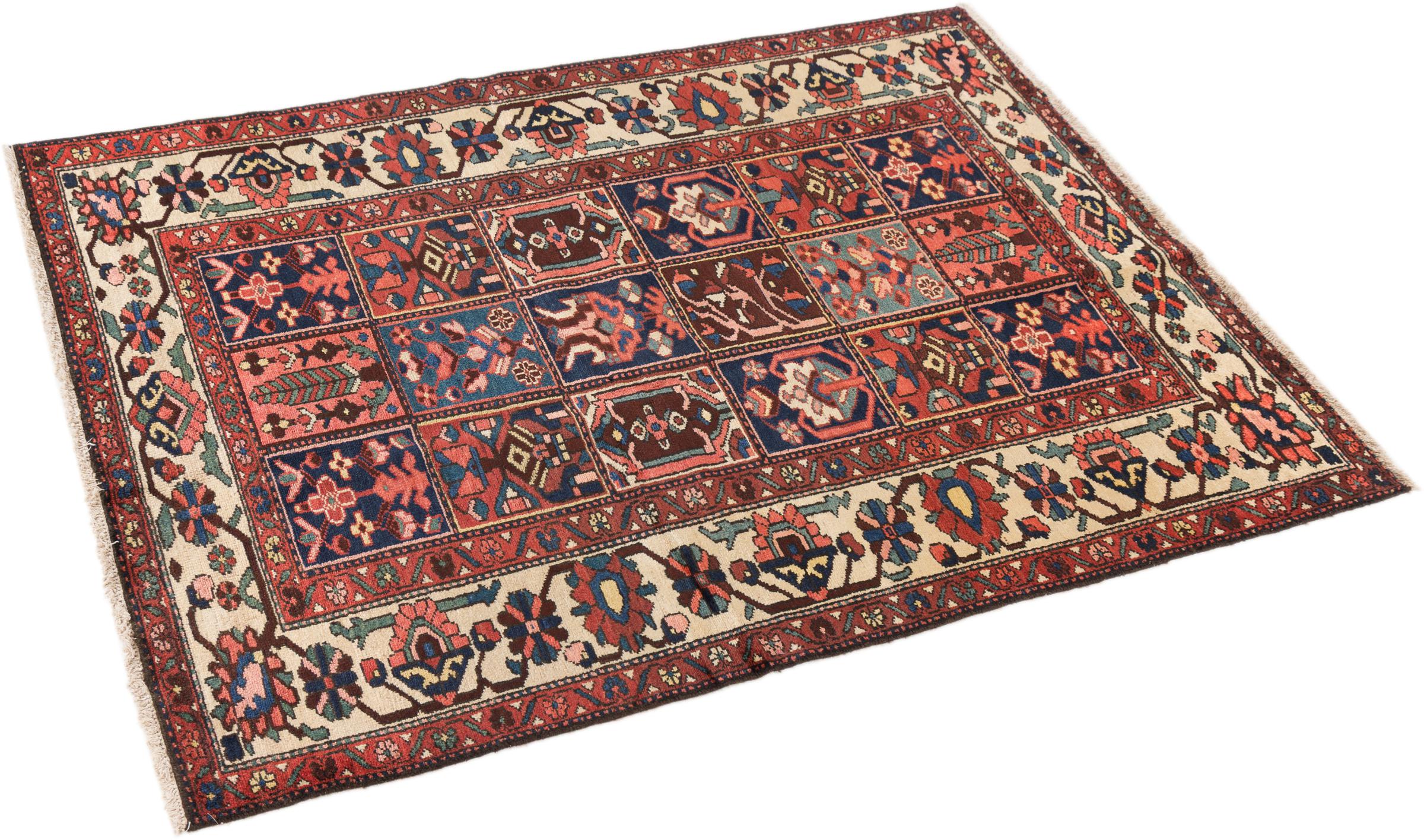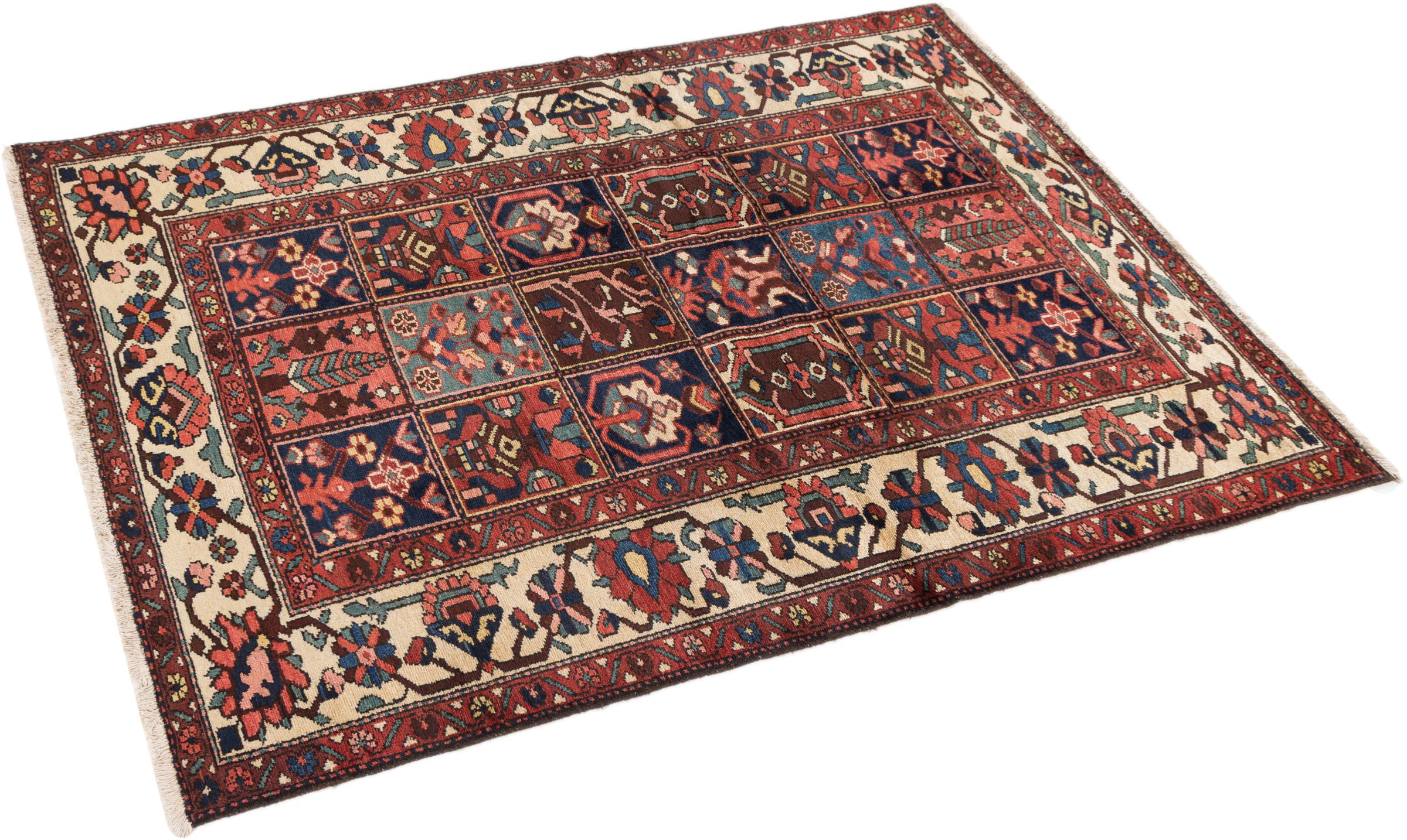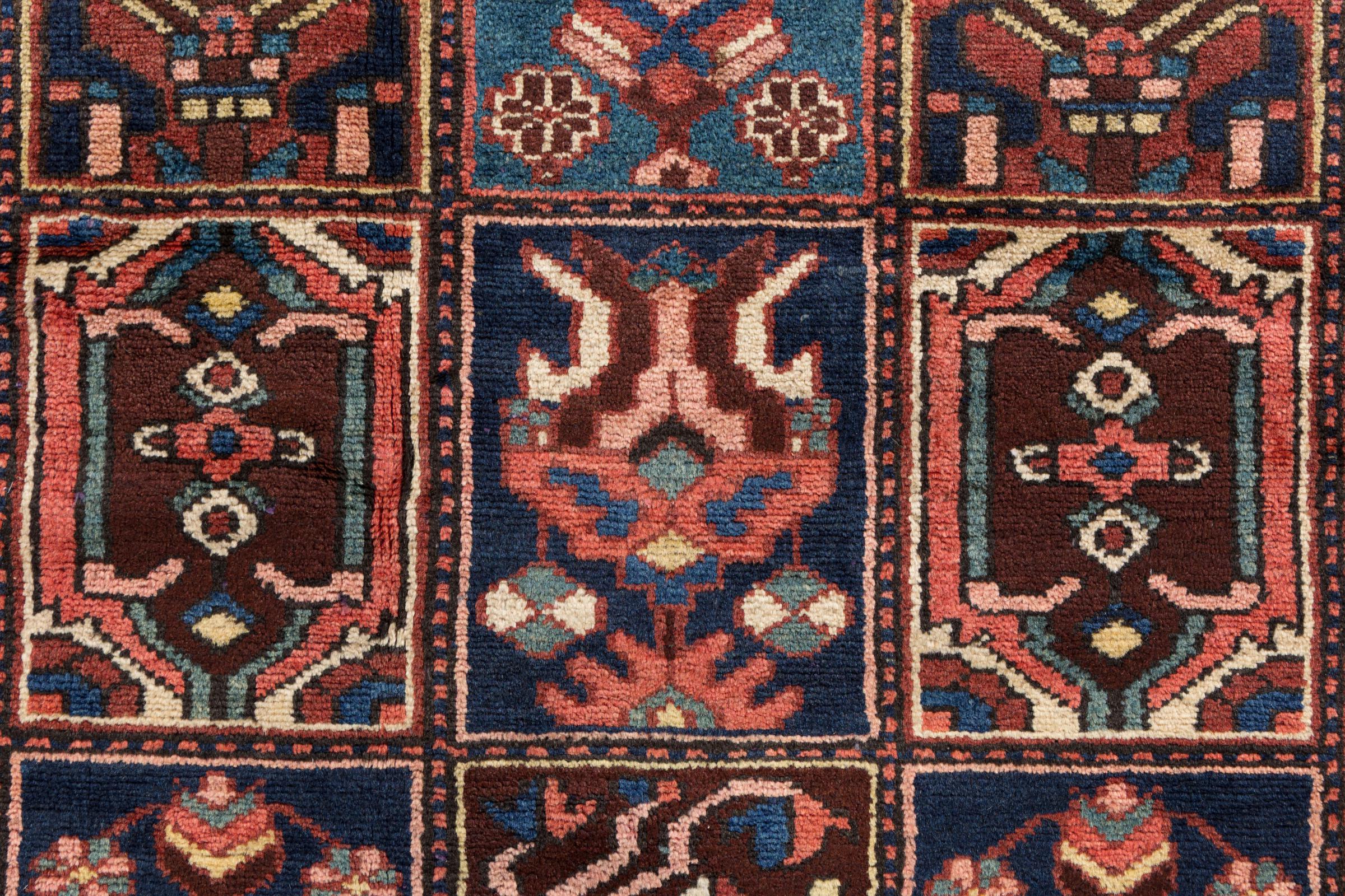 Denna persiska Bakhtiar var handknuten av nomader från Bakhtiari-stammen. Denna persiska matta spelar med färgerna på Orienten i vackra mönster. Utformningen av dess ornament är inspirerad av persiska trädgårdar. Den så kallade traditionella trädgårdsdesignen har blivit mycket populär i den västra världen genom åren. Dess höga knutdensitet i kombination med det starka garnet lovar långvarig glädje av persisk mattekonst.