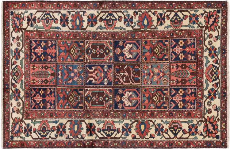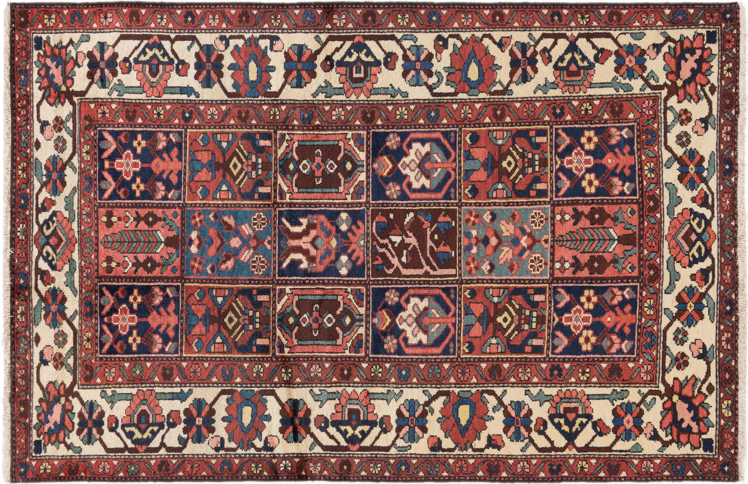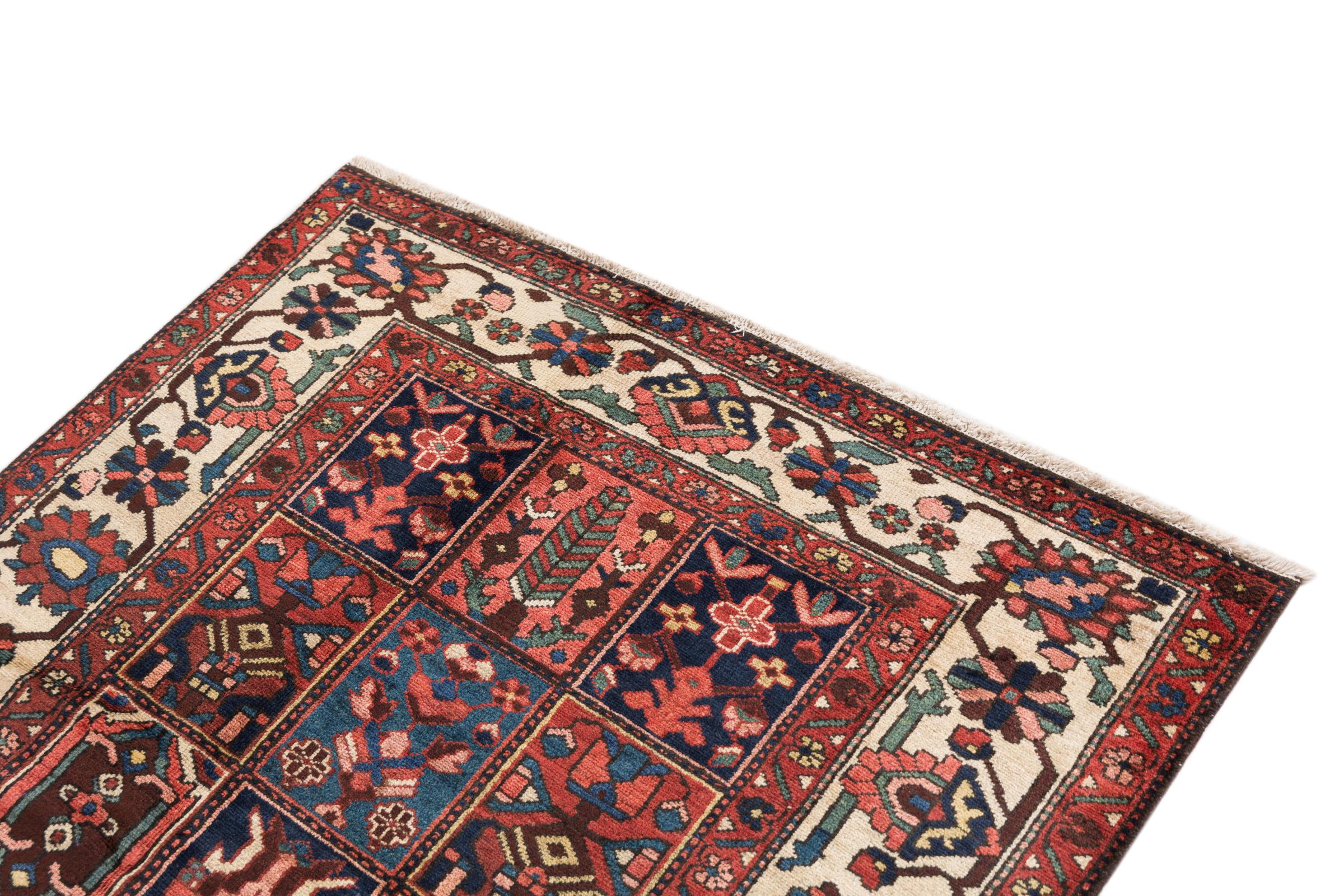 Denna persiska Bakhtiar var handknuten av nomader från Bakhtiari-stammen. Denna persiska matta spelar med färgerna på Orienten i vackra mönster. Utformningen av dess ornament är inspirerad av persiska trädgårdar. Den så kallade traditionella trädgårdsdesignen har blivit mycket populär i den västra världen genom åren. Dess höga knutdensitet i kombination med det starka garnet lovar långvarig glädje av persisk mattekonst.