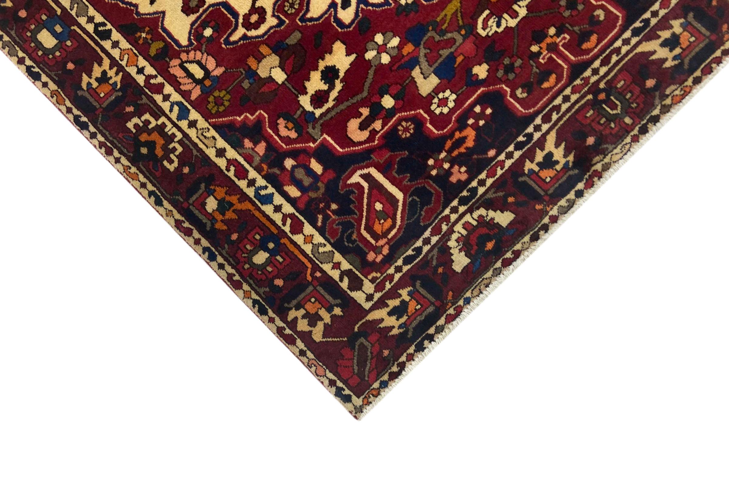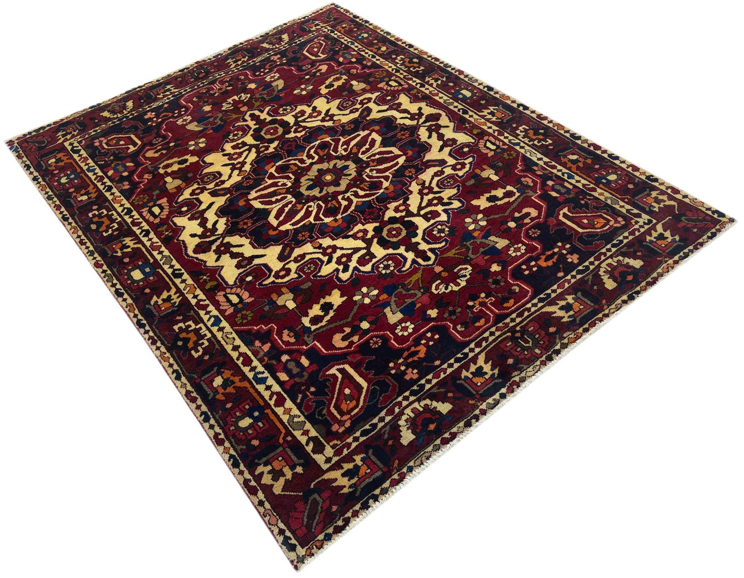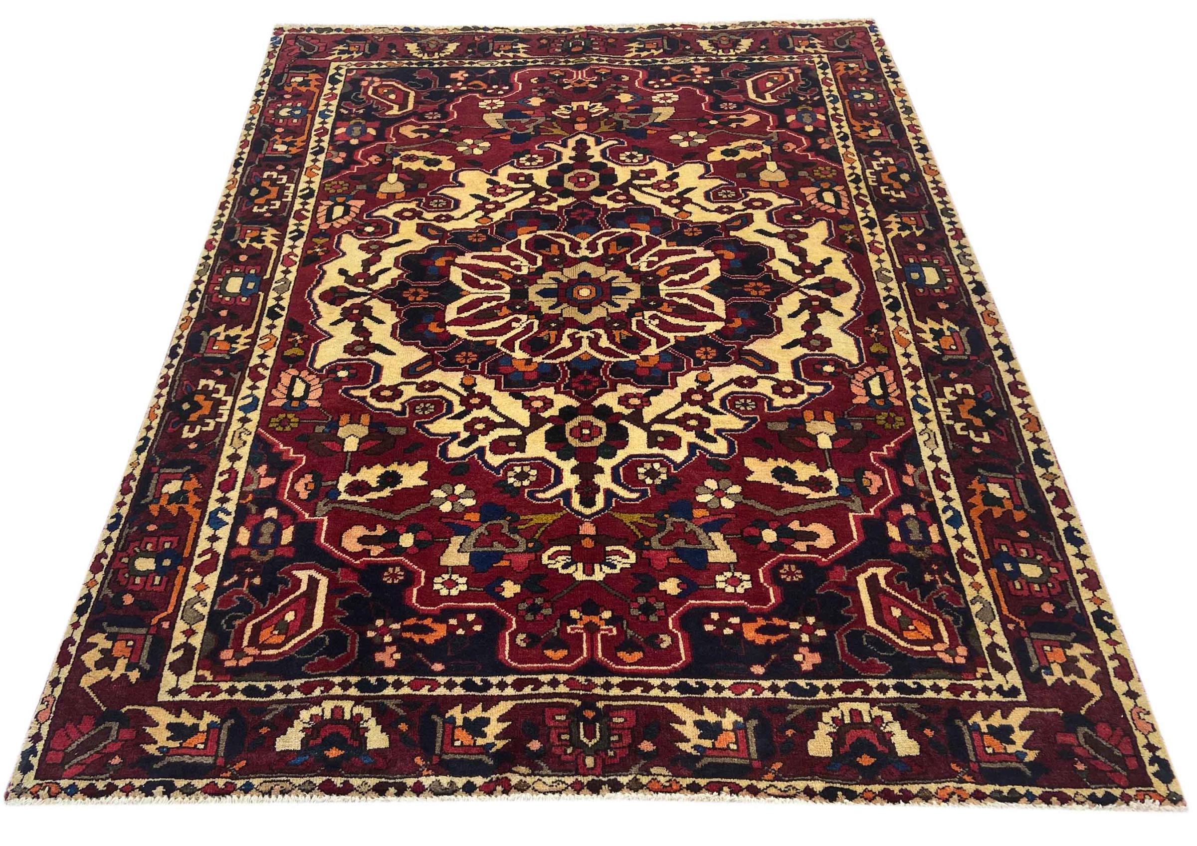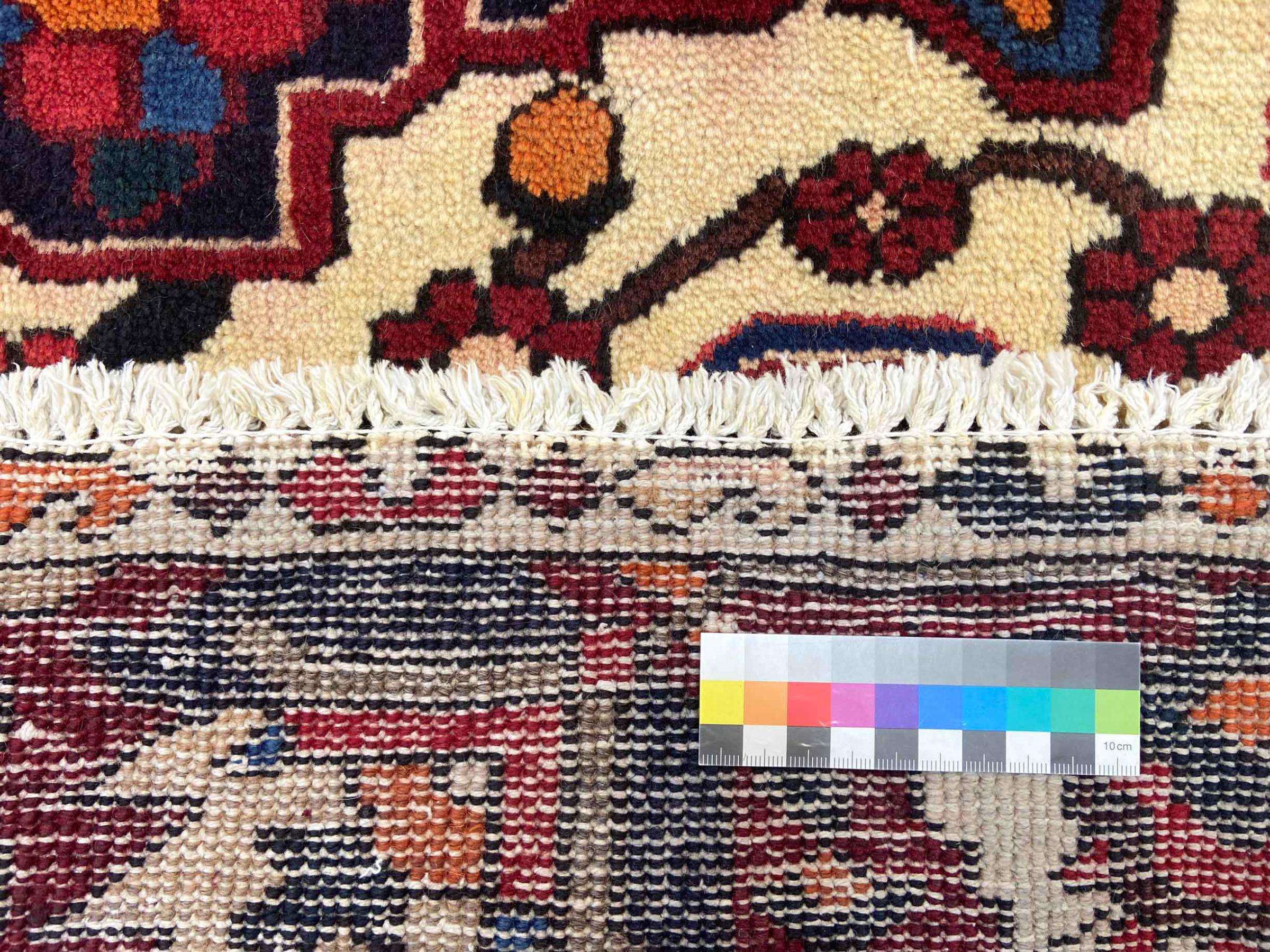 Denna persiska Bakhtiar var handknuten av nomader från Bakhtiari-stammen. Denna persiska matta spelar med färgerna på Orienten i vackra mönster. Utformningen av dess ornament är inspirerad av persiska trädgårdar. Den så kallade traditionella trädgårdsdesignen har blivit mycket populär i den västra världen genom åren. Dess höga knutdensitet i kombination med det starka garnet lovar långvarig glädje av persisk mattekonst.