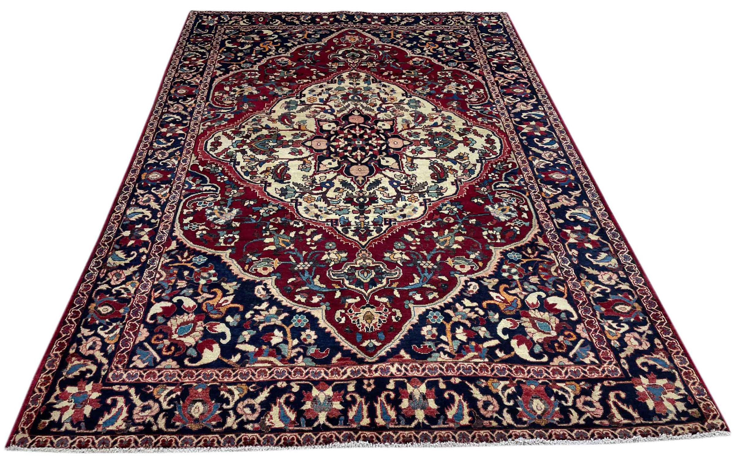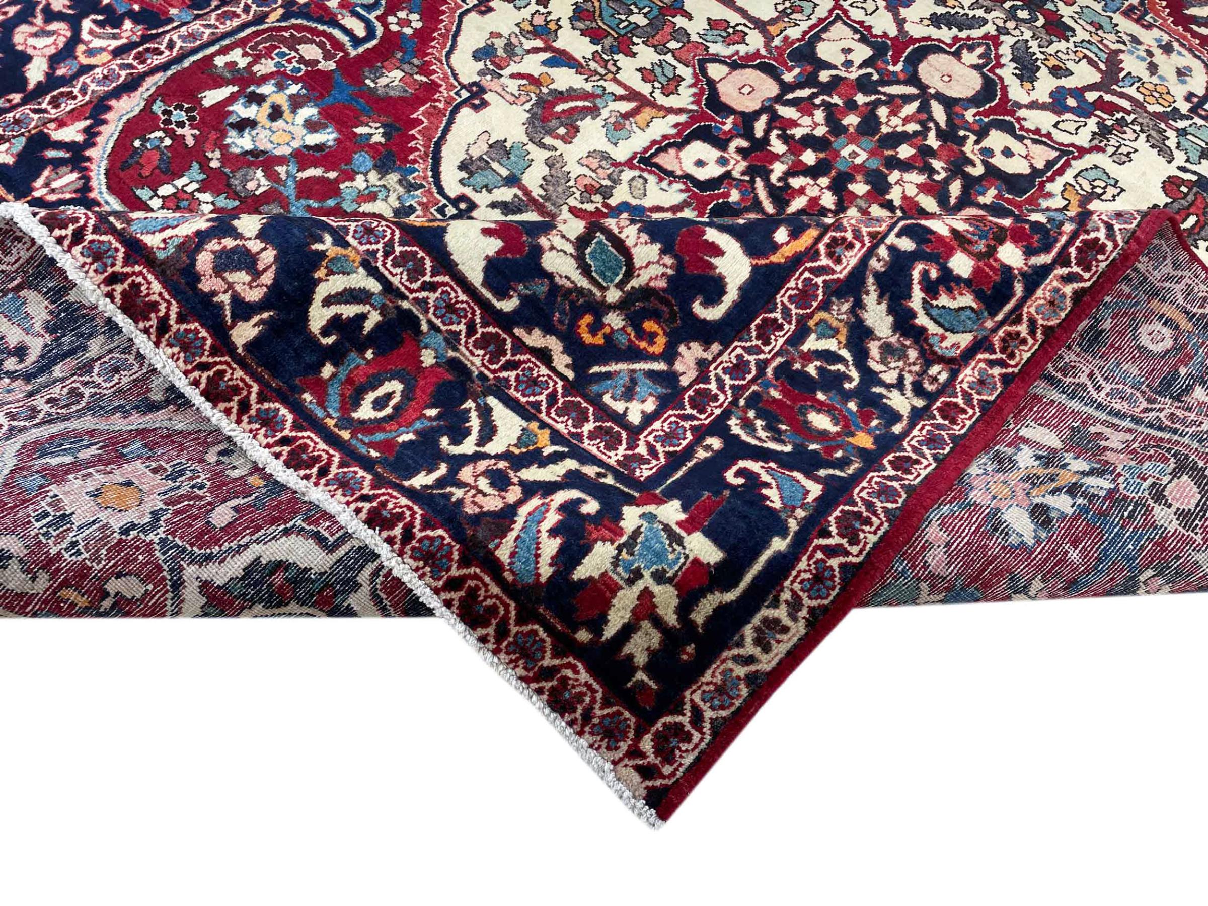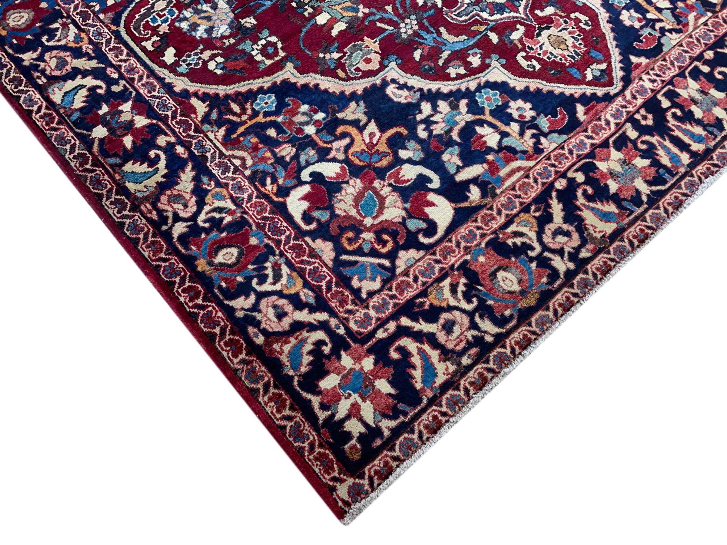 Denna persiska Bakhtiar var handknuten av nomader från Bakhtiari-stammen. Denna persiska matta spelar med färgerna på Orienten i vackra mönster. Utformningen av dess ornament är inspirerad av persiska trädgårdar. Den så kallade traditionella trädgårdsdesignen har blivit mycket populär i den västra världen genom åren. Dess höga knutdensitet i kombination med det starka garnet lovar långvarig glädje av persisk mattekonst.
