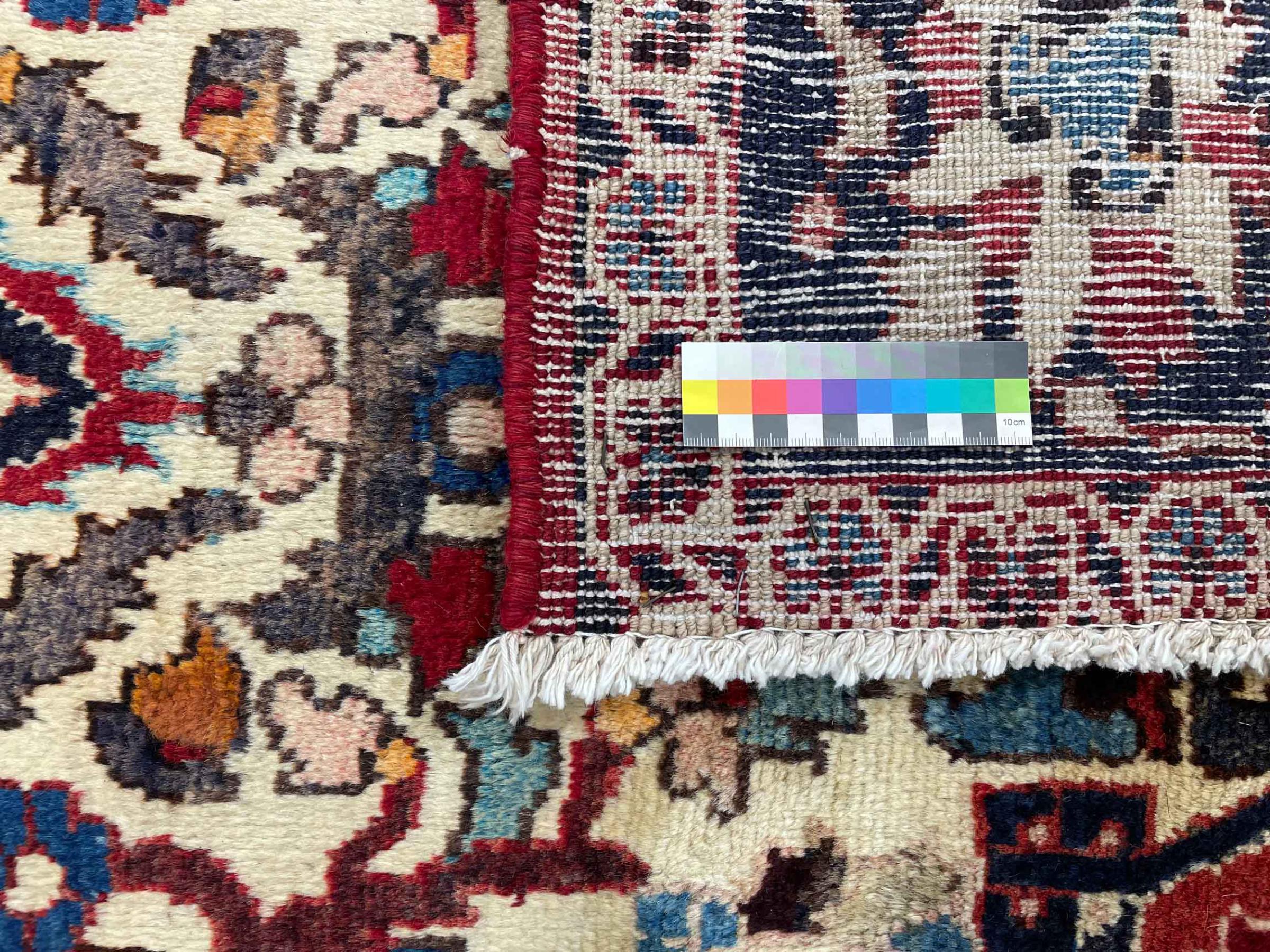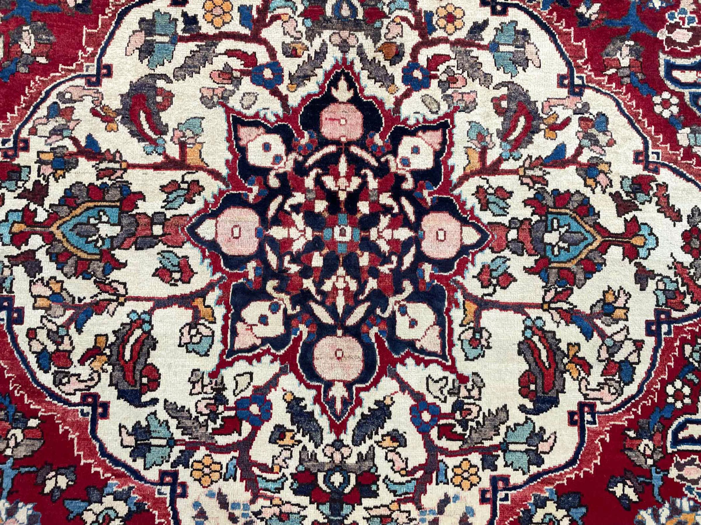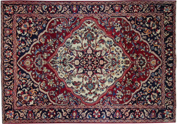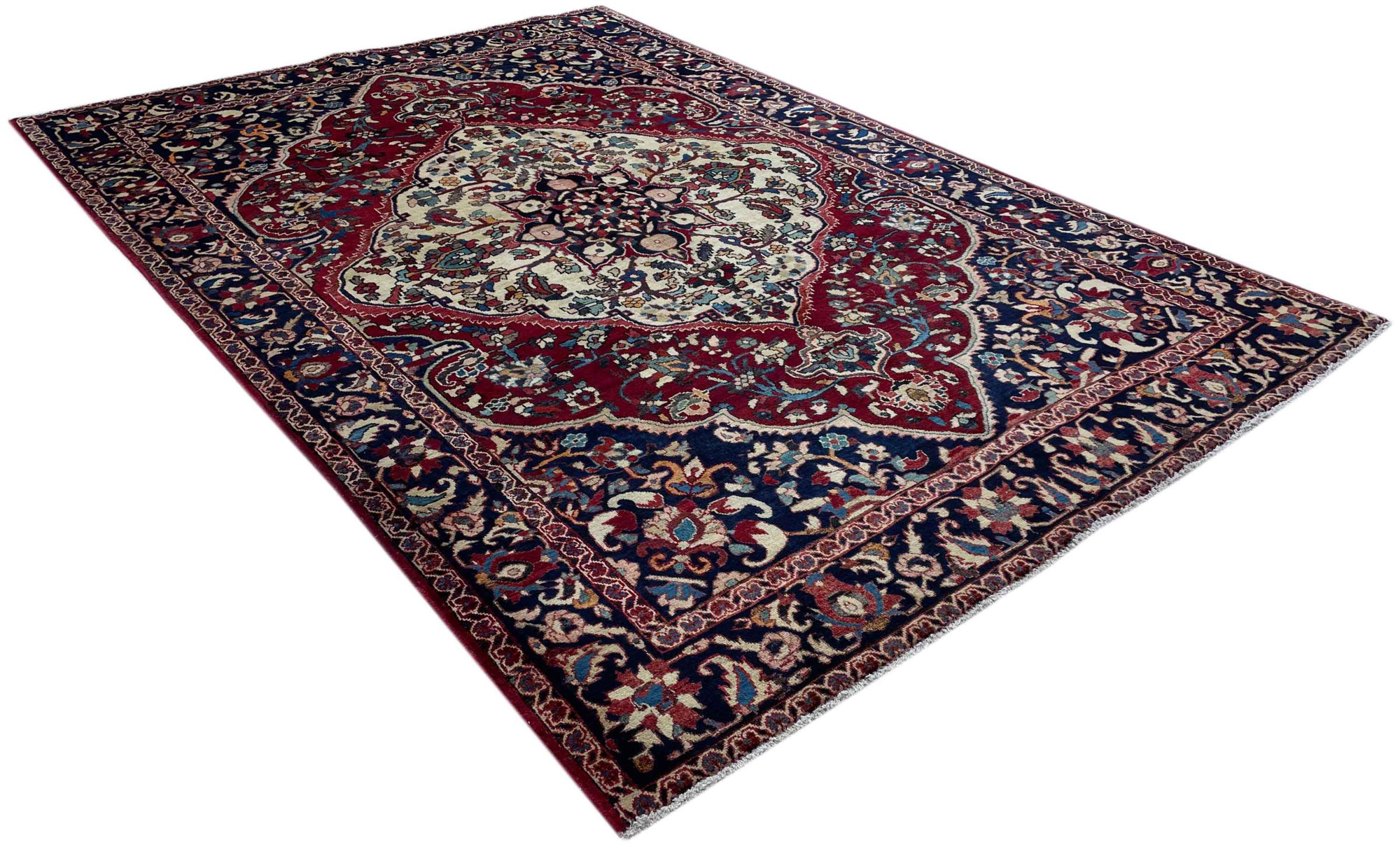 Denna persiska Bakhtiar var handknuten av nomader från Bakhtiari-stammen. Denna persiska matta spelar med färgerna på Orienten i vackra mönster. Utformningen av dess ornament är inspirerad av persiska trädgårdar. Den så kallade traditionella trädgårdsdesignen har blivit mycket populär i den västra världen genom åren. Dess höga knutdensitet i kombination med det starka garnet lovar långvarig glädje av persisk mattekonst.