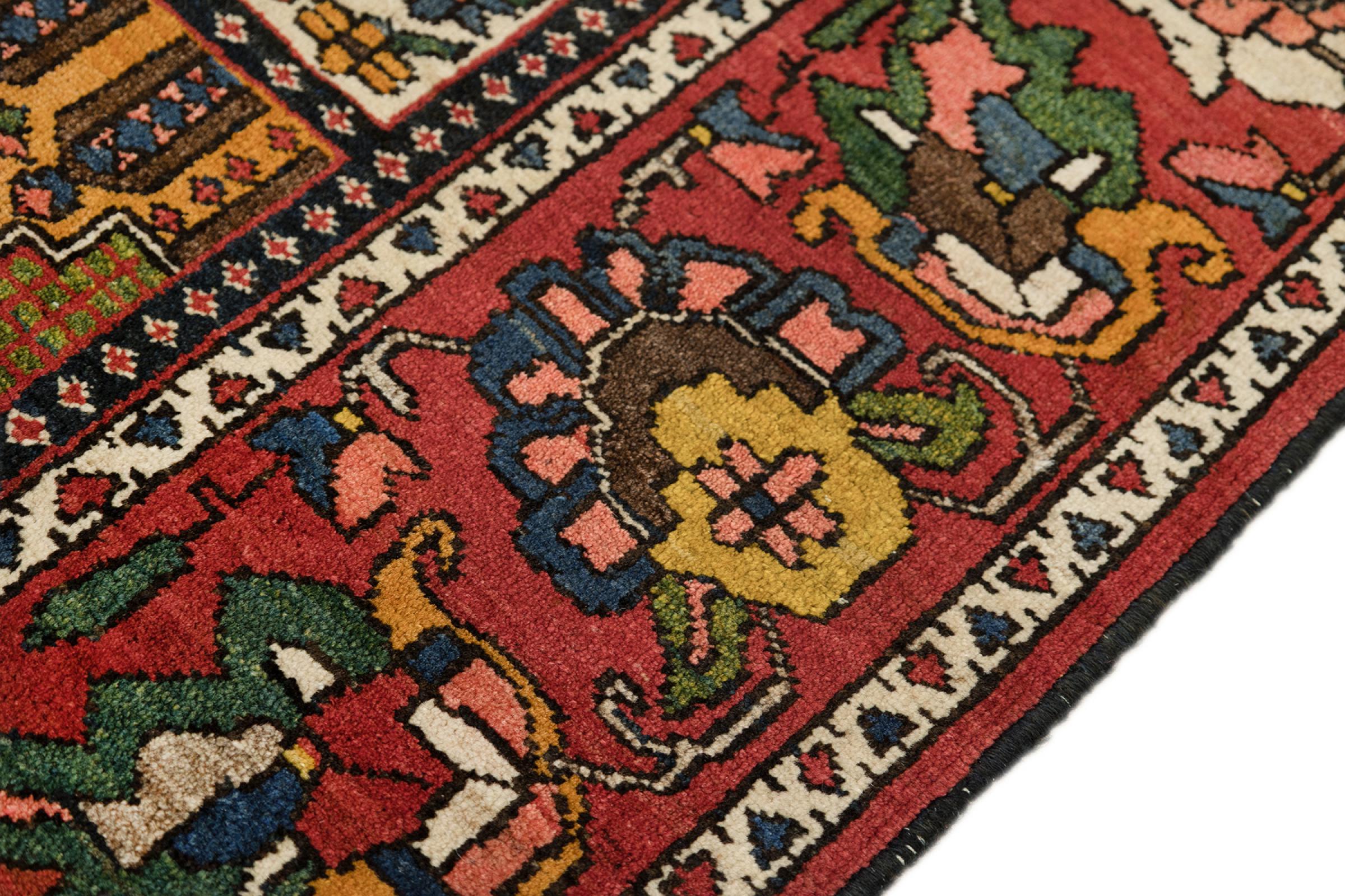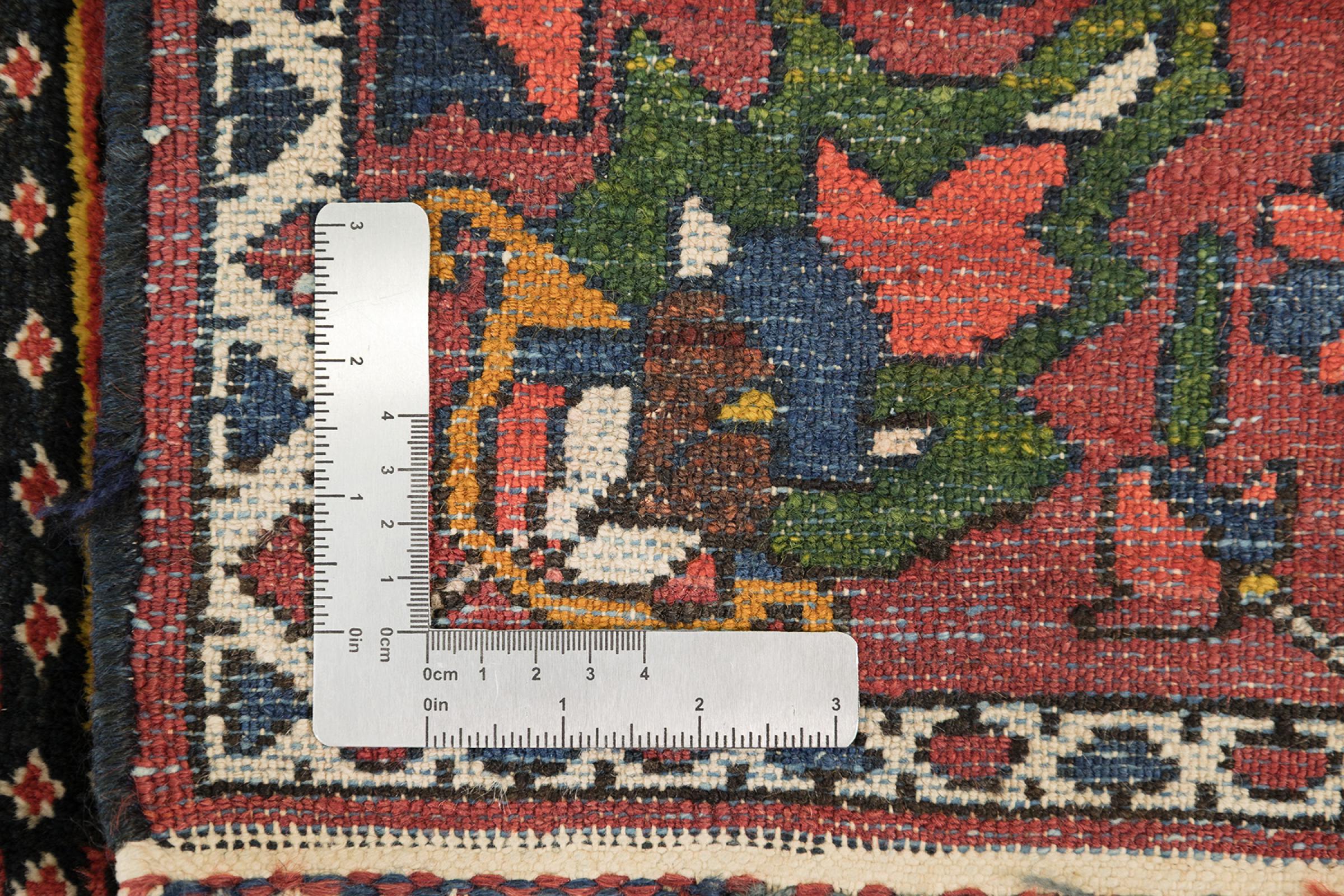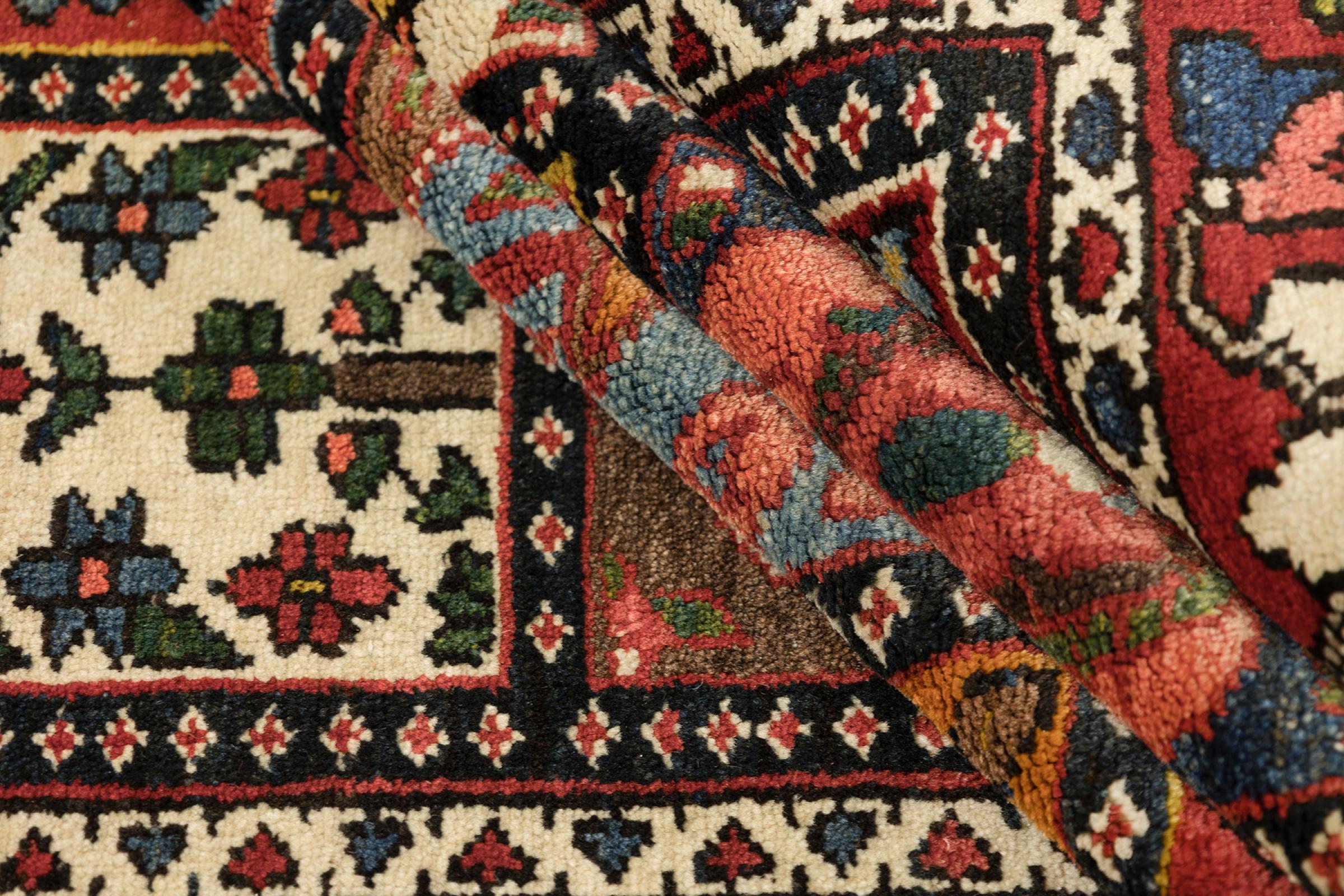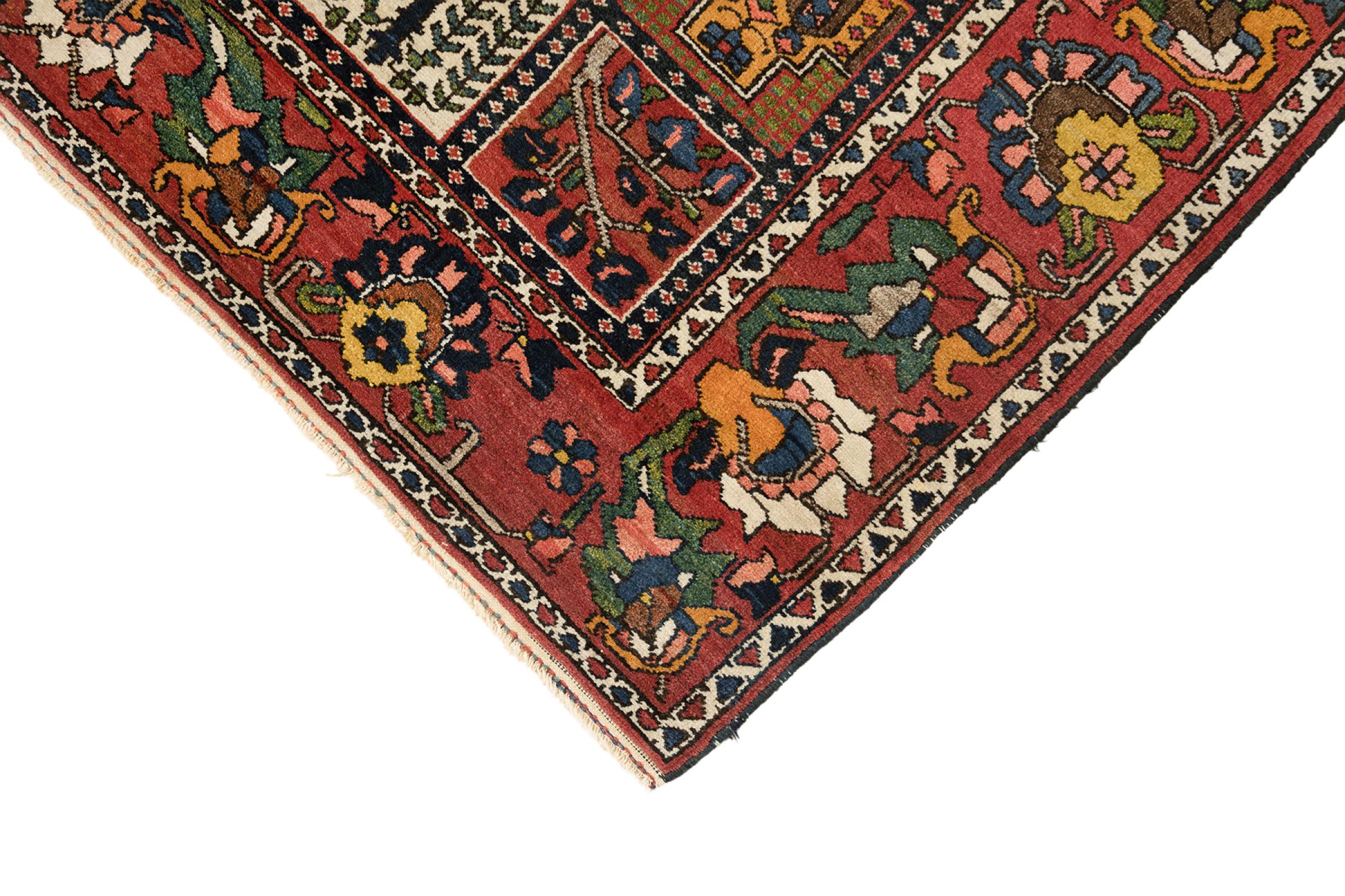 Denna persiska Bakhtiar var handknuten av nomader från Bakhtiari-stammen. Denna persiska matta spelar med färgerna på Orienten i vackra mönster. Utformningen av dess ornament är inspirerad av persiska trädgårdar. Den så kallade traditionella trädgårdsdesignen har blivit mycket populär i den västra världen genom åren. Dess höga knutdensitet i kombination med det starka garnet lovar långvarig glädje av persisk mattekonst.