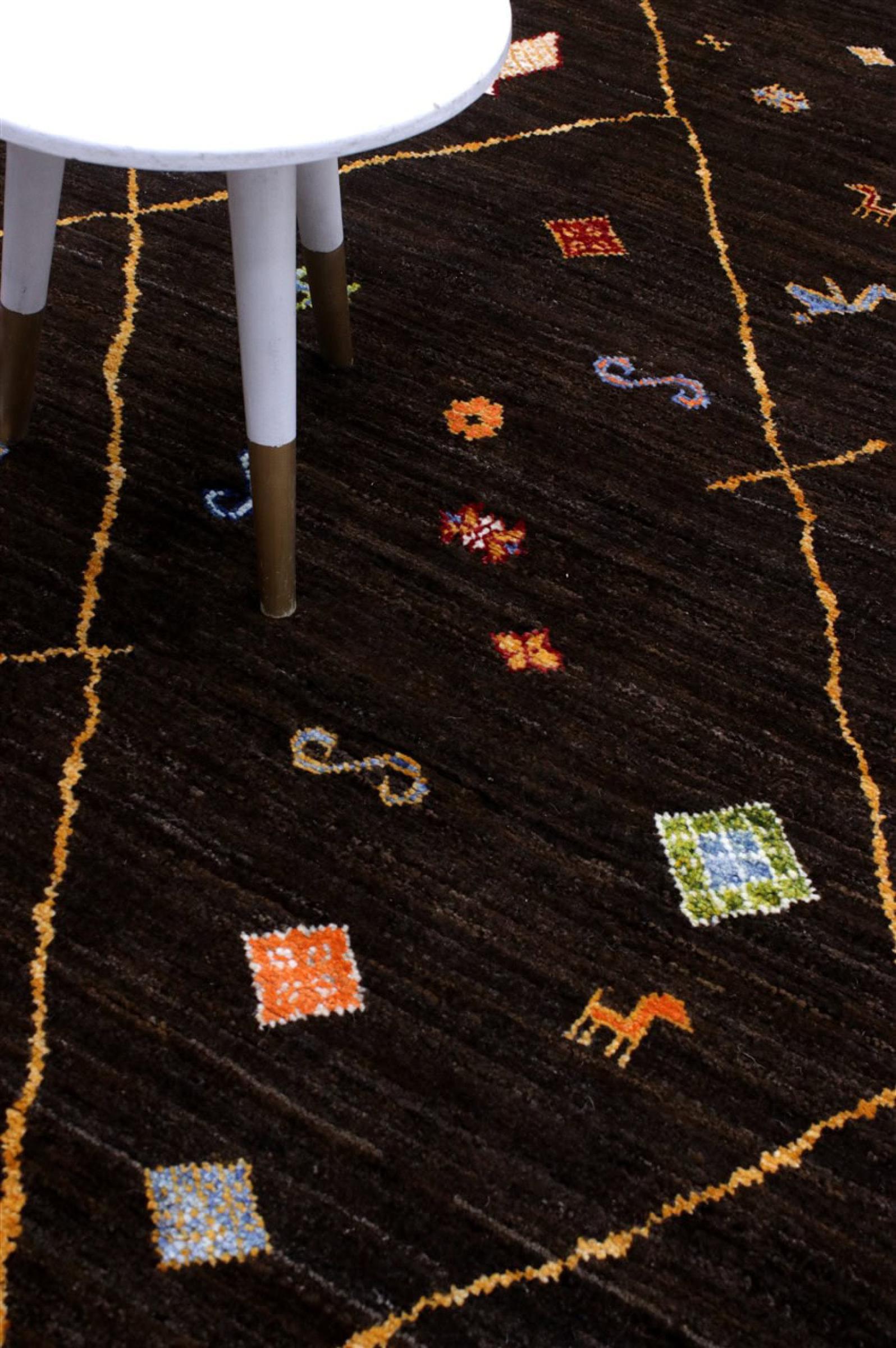 Denna Berber Ghashghai-matta kännetecknas av sin högkvalitativa ull och en tät och särskilt exakt väv. Den är därför exceptionellt hållbar och har en genomgående fast men samtidigt underbart mjuk lugg. Dess design inspirerar med färg och symboliska mönster varje dag.