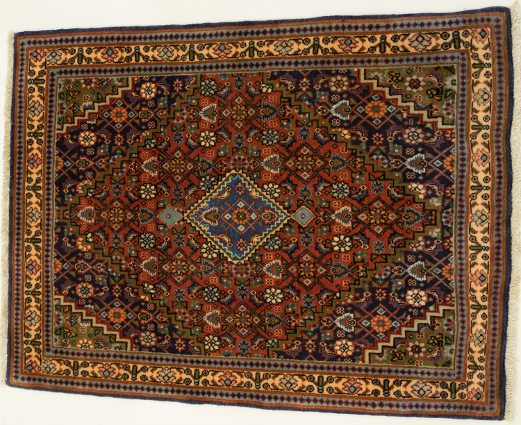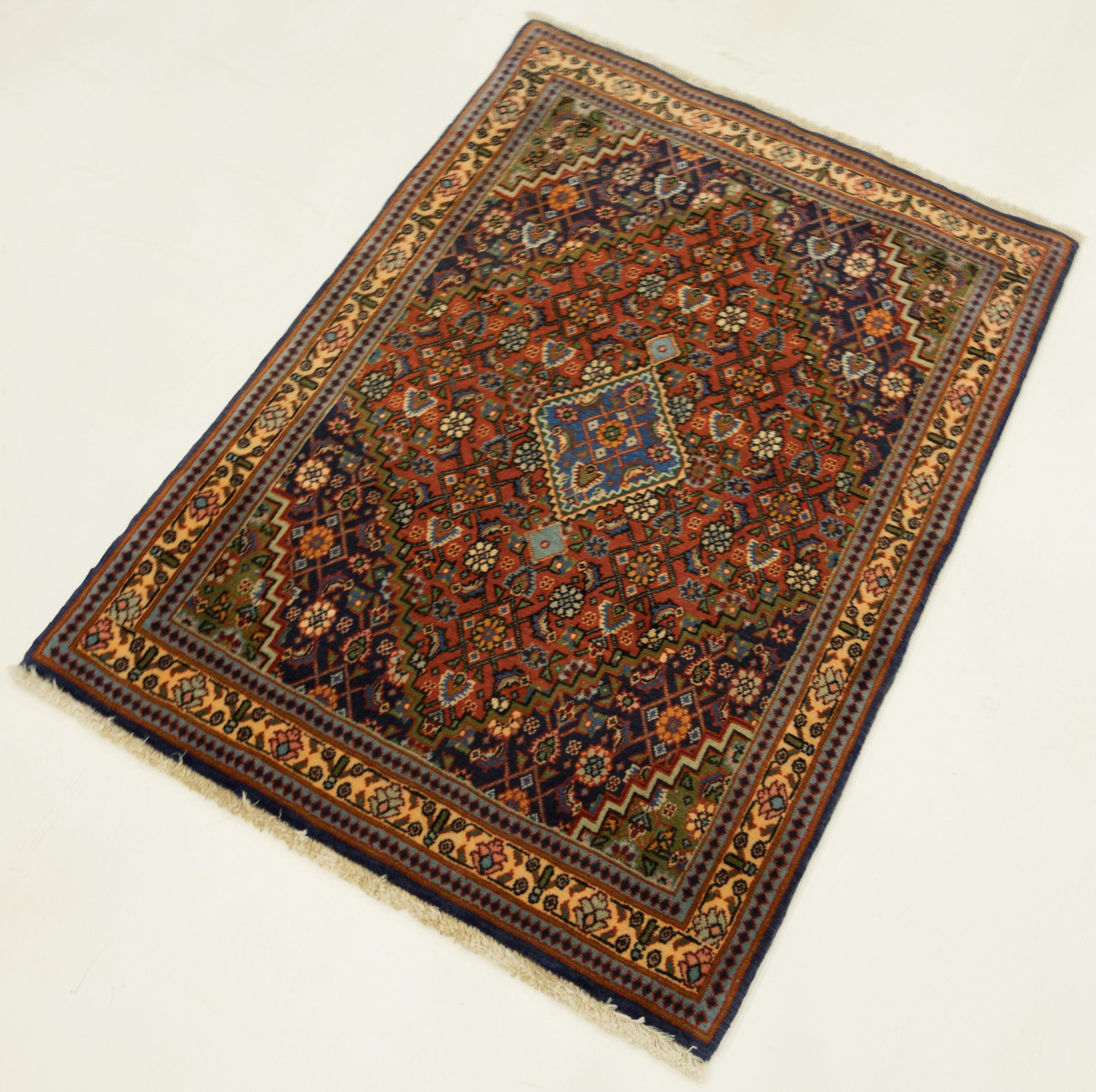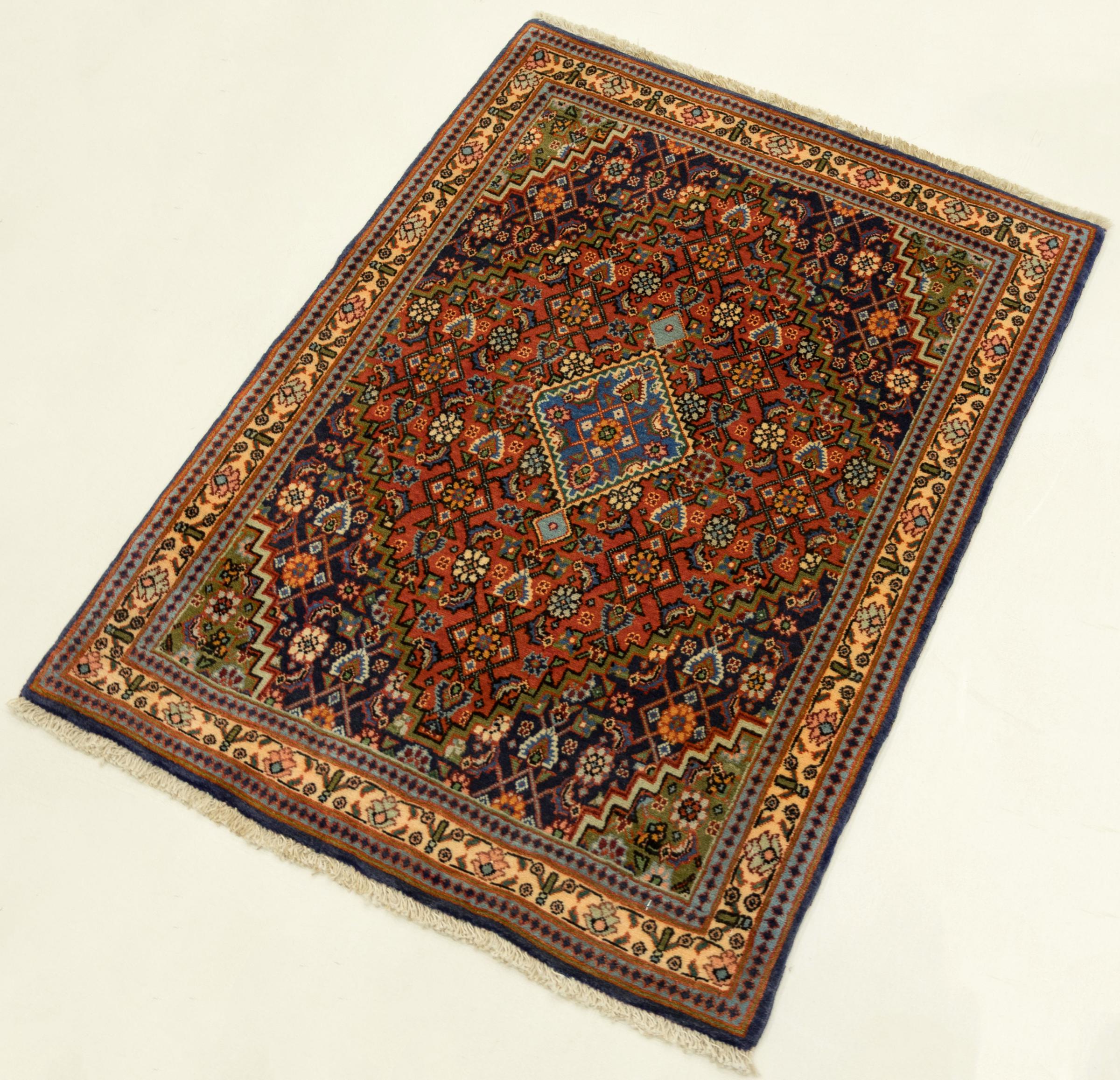 Mattans ID: 313338008516140 Storlek: 95x70 cm Tjocklek: ap. 15 mm Knuttäthet: 120 000 - 150 000 / m² Tillverkning: Knuten för hand Lugg: Handspunnen ull Varp: Bomull Ursprung: Persien / Iran Ålder: Ny Vikt: ap. 3 kg I lager: Unik - Endast 1 i lager