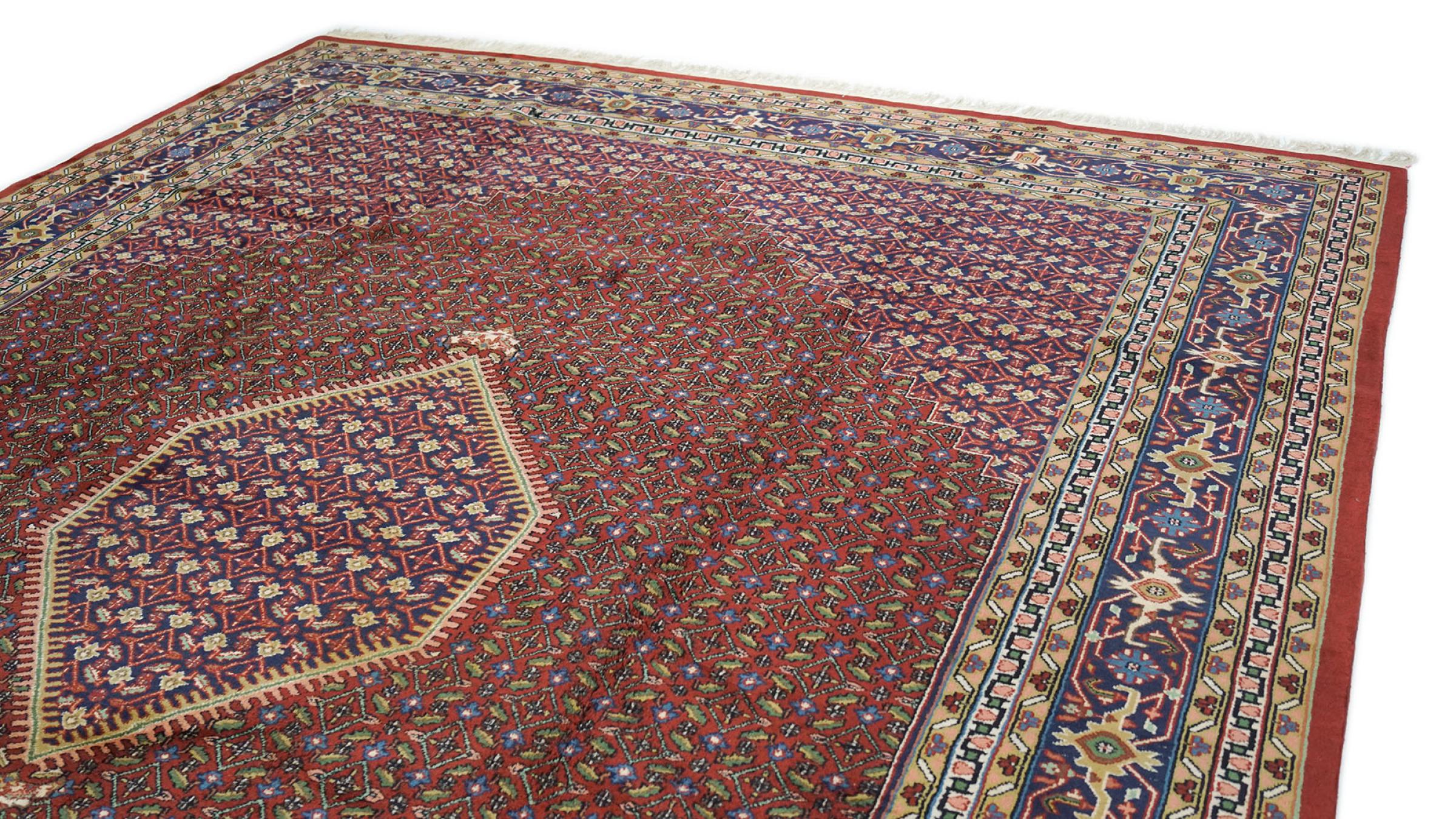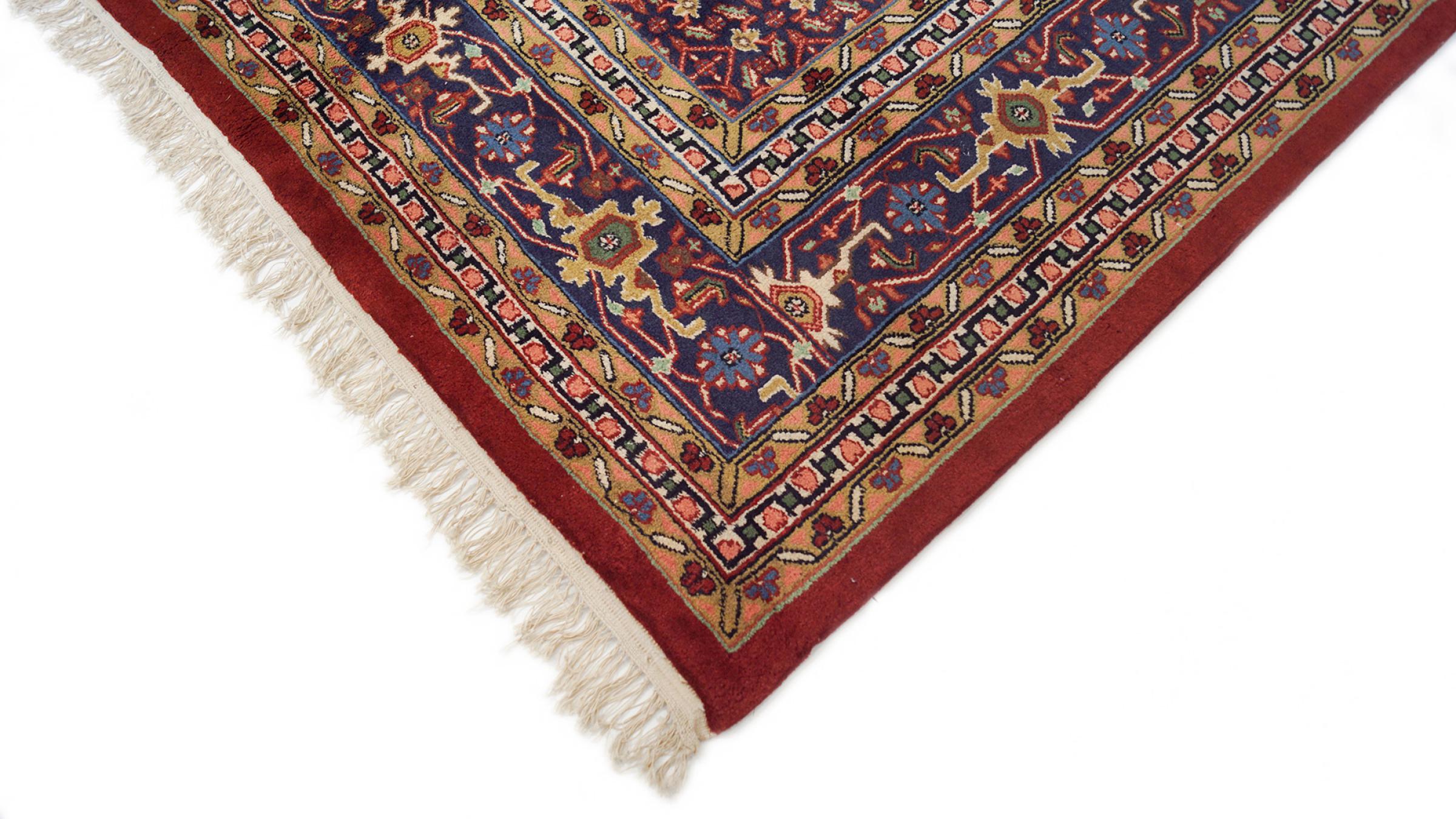 Mattans ID: 316341001455849 Storlek: 397x302 cm Tjocklek: ap. 15 mm Knuttäthet: 128 000 - 160 000 / m² Tillverkning: Knuten för hand Lugg: Handspunnen ull Varp: Bomull Skick / Bevarande: Perfekt Ursprung: Indien Ålder: Antik, äldre än 80 år Vikt: ap. 60 kg I lager: Unik - Endast 1 i lager