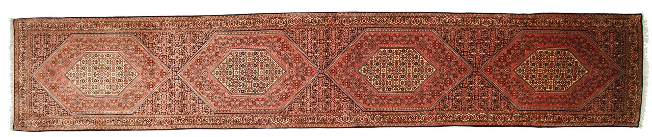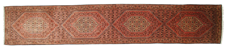 Mattans ID: 70760031377 Storlek: 485x87 cm Tjocklek: ap. 15 mm Knuttäthet: 450 000 - 500 000 / m² Tillverkning: Knuten för hand Lugg: Handspunnen ull Varp: Bomull Ursprung: Persien / Iran Ålder: Ny Vikt: ap. 21 kg I lager: Unik - Endast 1 i lager