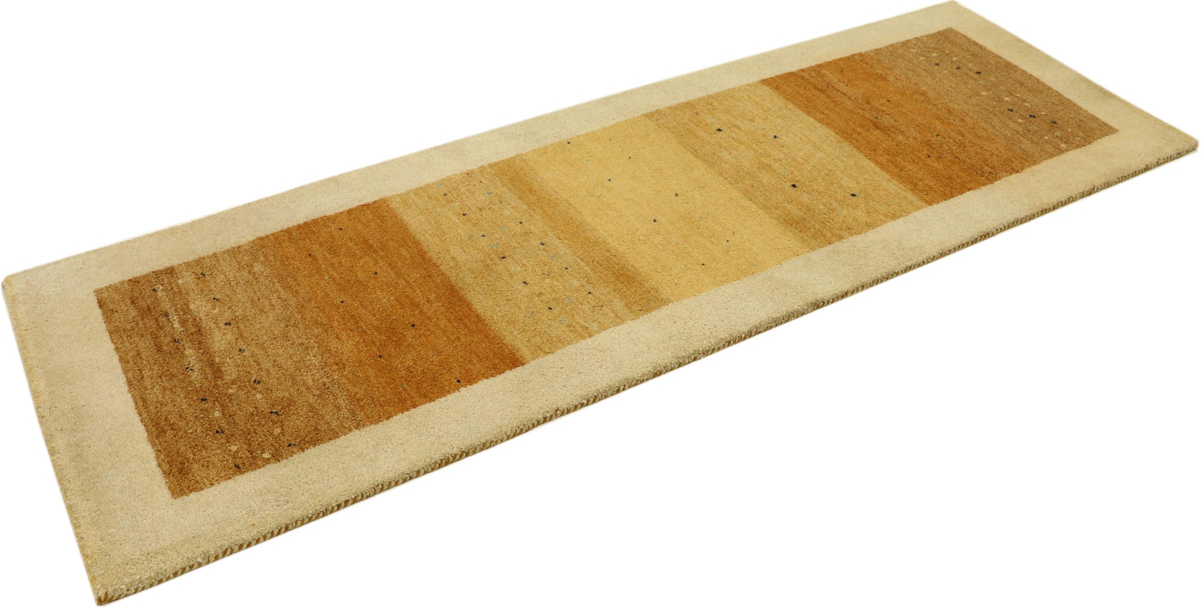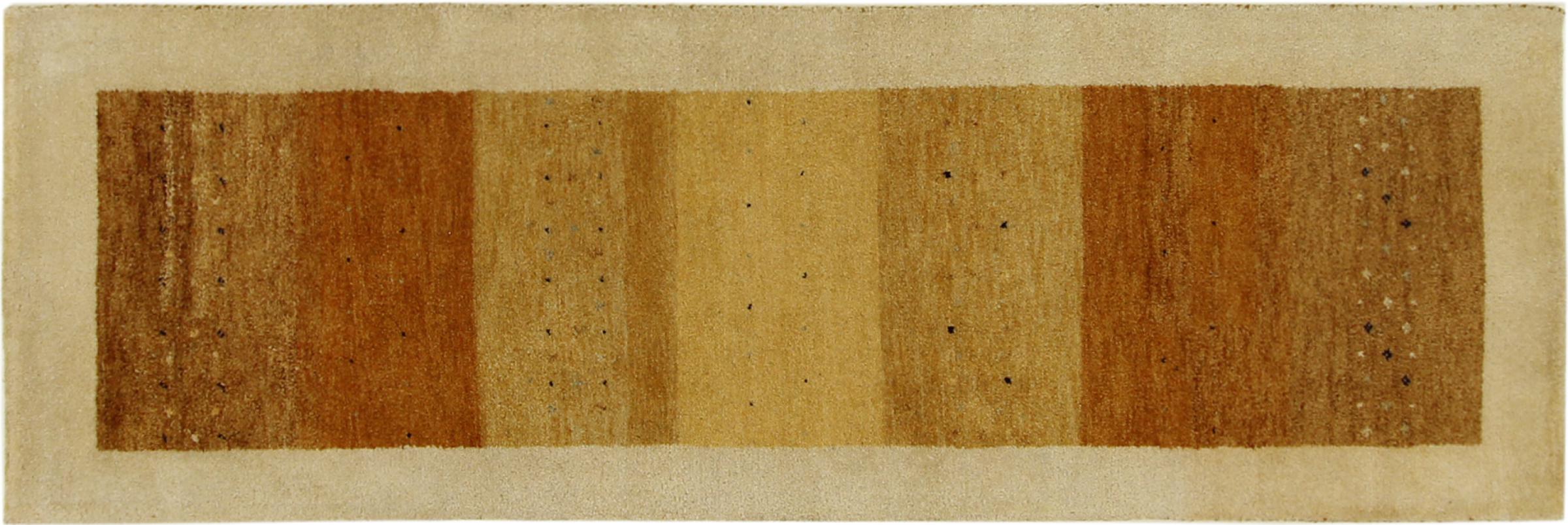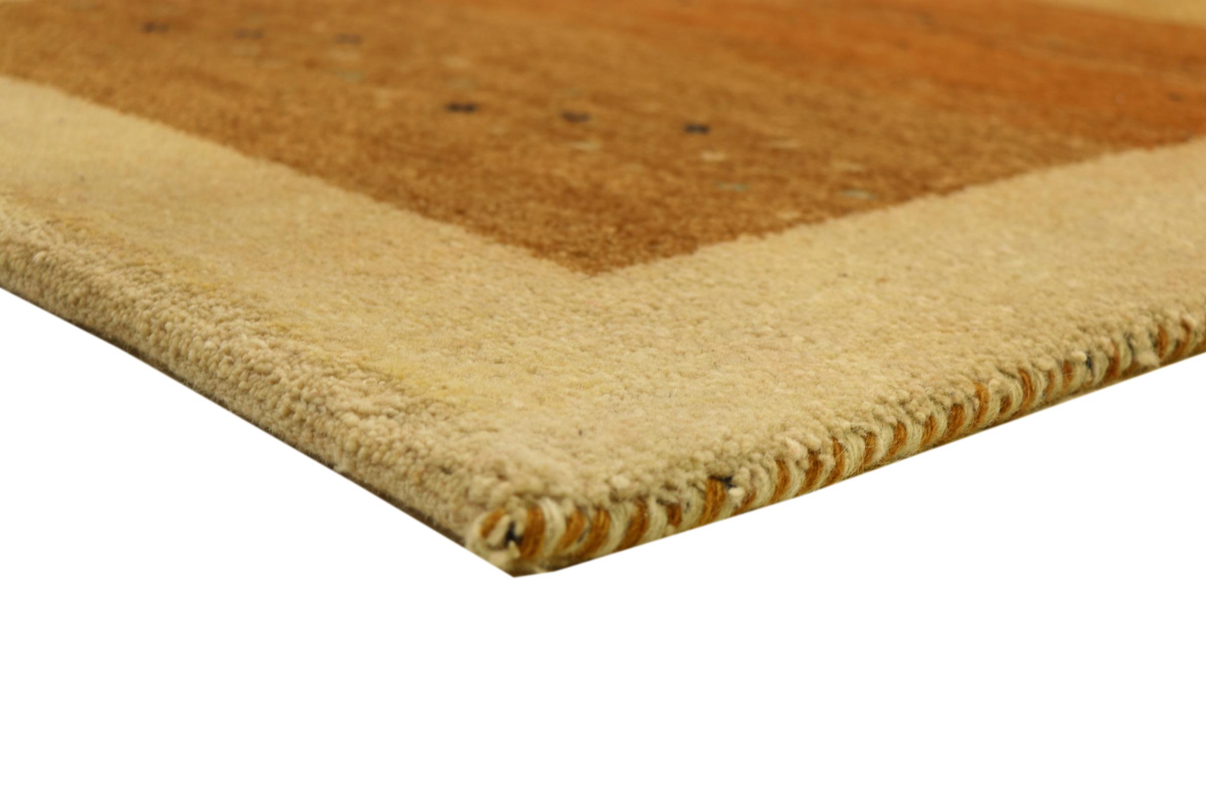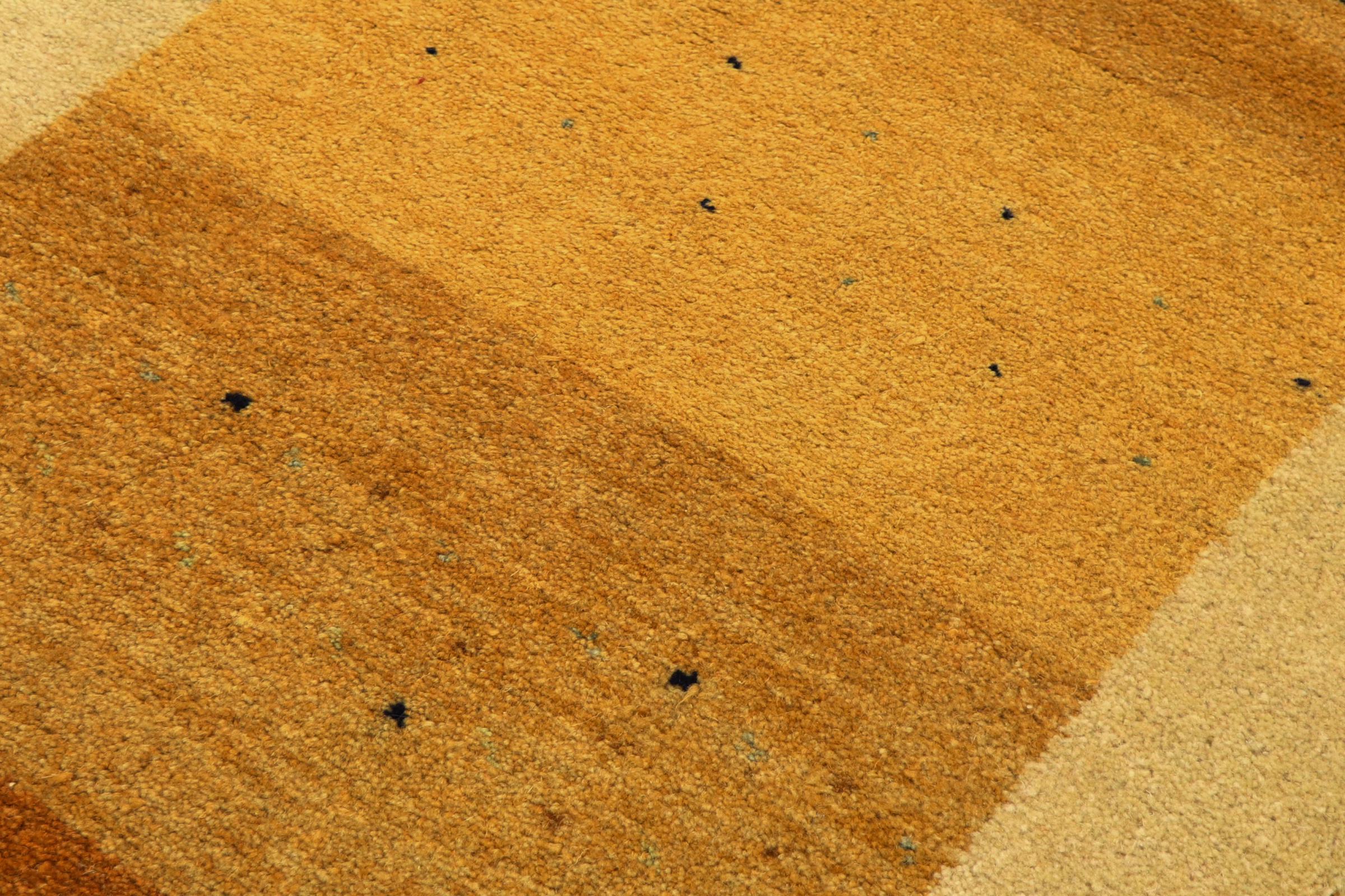 Denna vackra Gabbeh-matta var handknuten i Indien. Indiska Gabbeh-mattor är gjorda av mjuk fårull, är trevliga på fötterna och har värmeisolerande egenskaper. De flesta av deras mönster är enkla och tidlösa moderna. De inspirerades av nomadiska folk som låter mycket enkla motiv från omgivningen passera in i mattorna. Indiska Gabbeh-mattor matchar inte riktigt kvaliteten på en persisk Gabbeh, men de har ett mycket bra pris-prestanda-förhållande. Detta gör dem idealiska som en handknuten matta på entréplan.