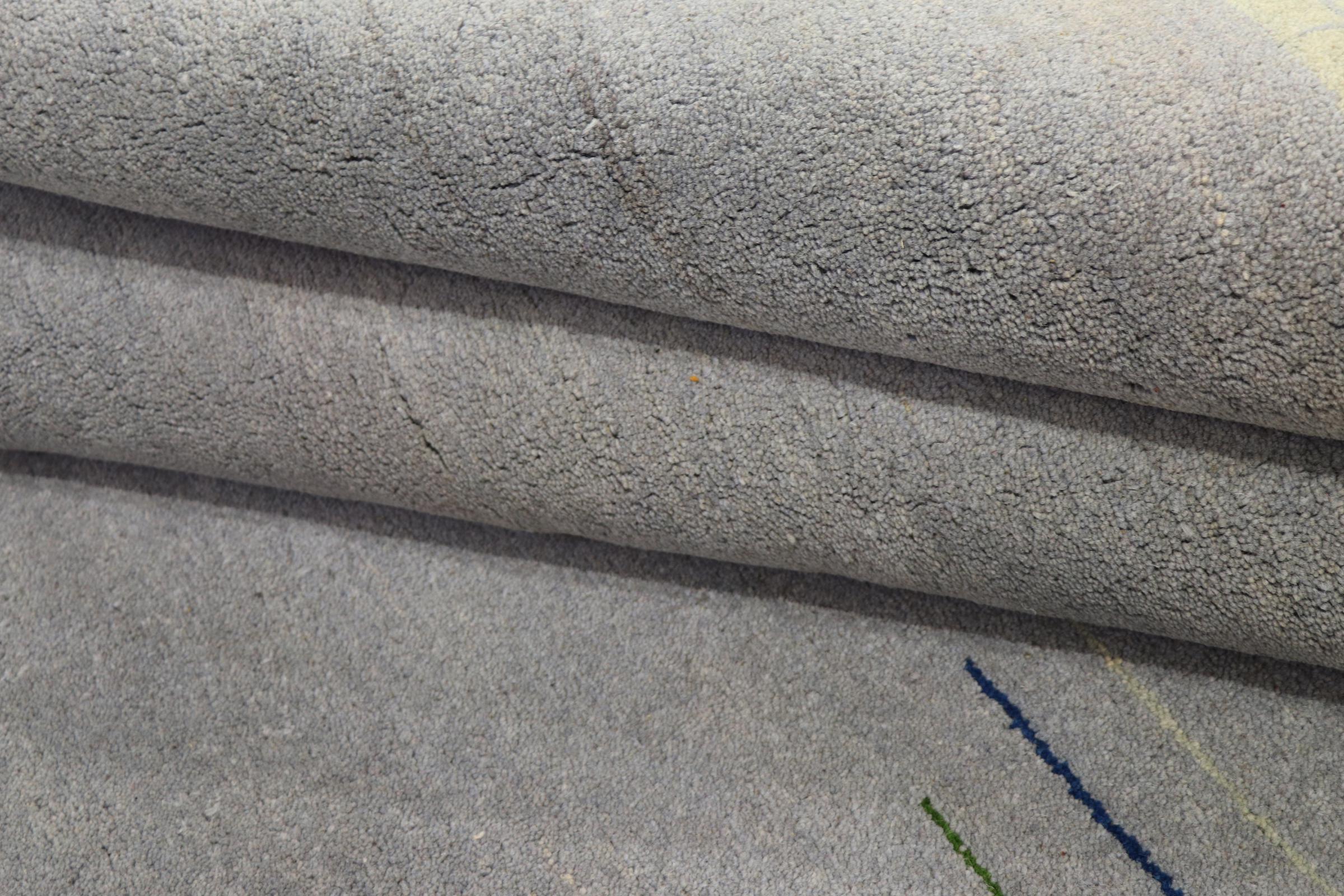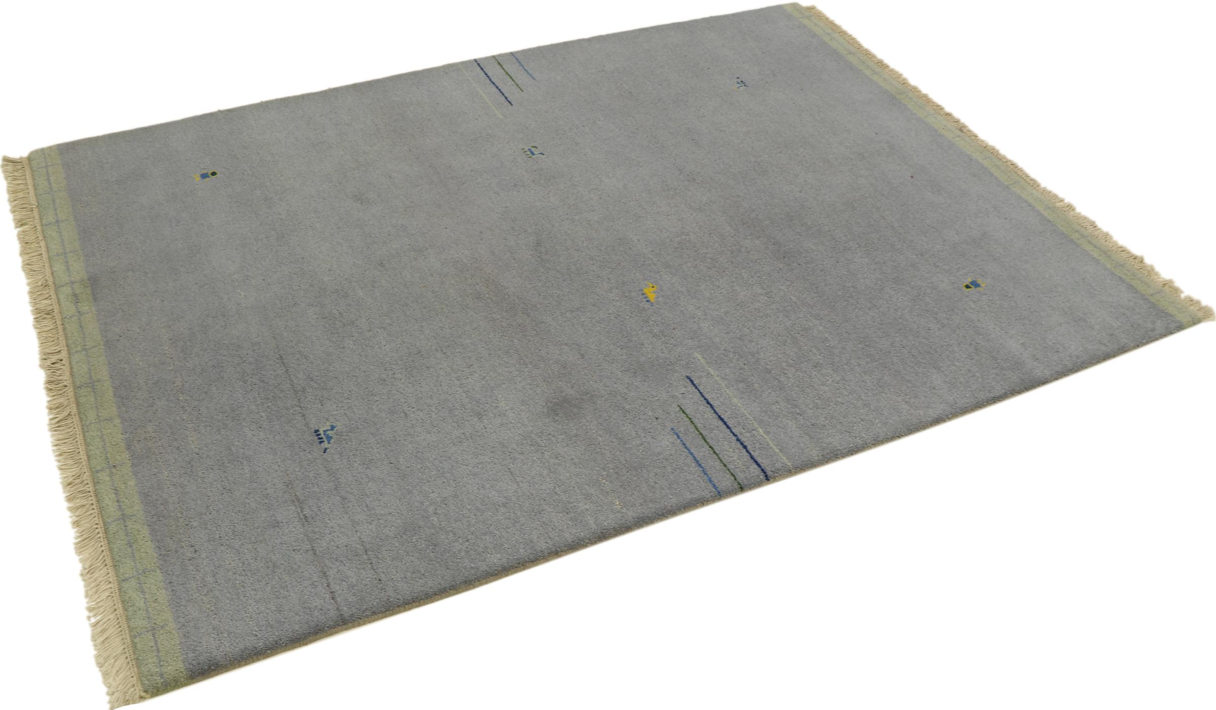 Denna vackra Gabbeh-matta var handknuten i Indien. Indiska Gabbeh-mattor är gjorda av mjuk fårull, är trevliga på fötterna och har värmeisolerande egenskaper. De flesta av deras mönster är enkla och tidlösa moderna. De inspirerades av nomadiska folk som låter mycket enkla motiv från omgivningen passera in i mattorna. Indiska Gabbeh-mattor matchar inte riktigt kvaliteten på en persisk Gabbeh, men de har ett mycket bra pris-prestanda-förhållande. Detta gör dem idealiska som en handknuten matta på entréplan.
