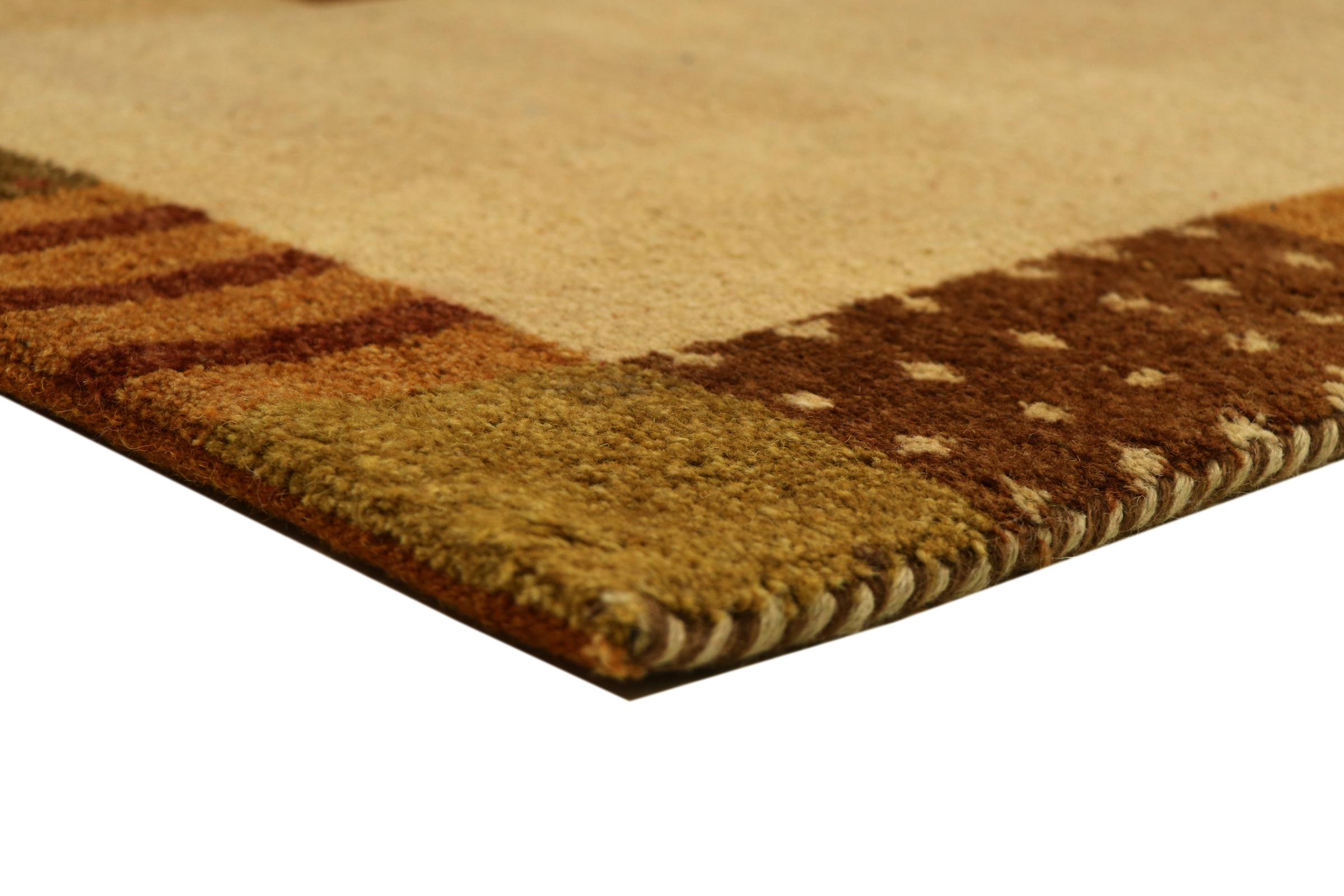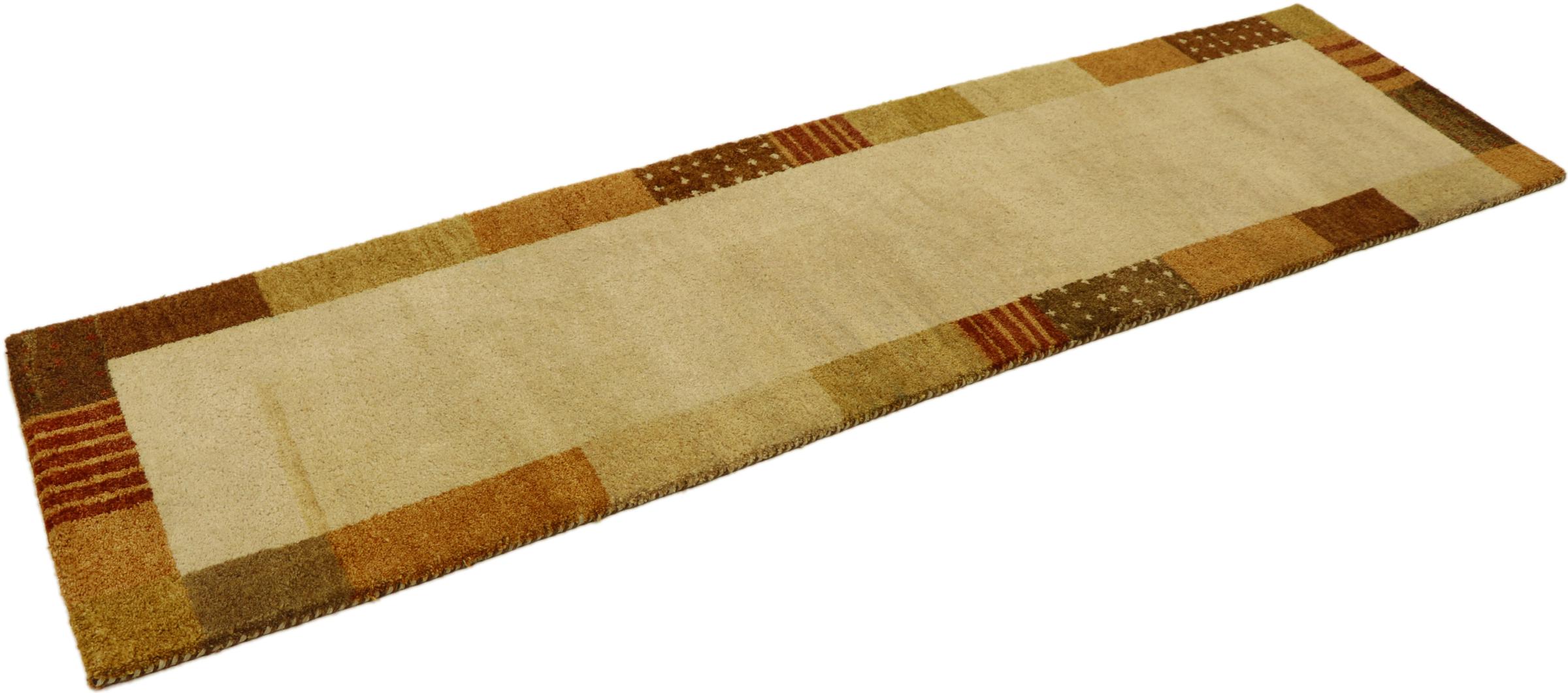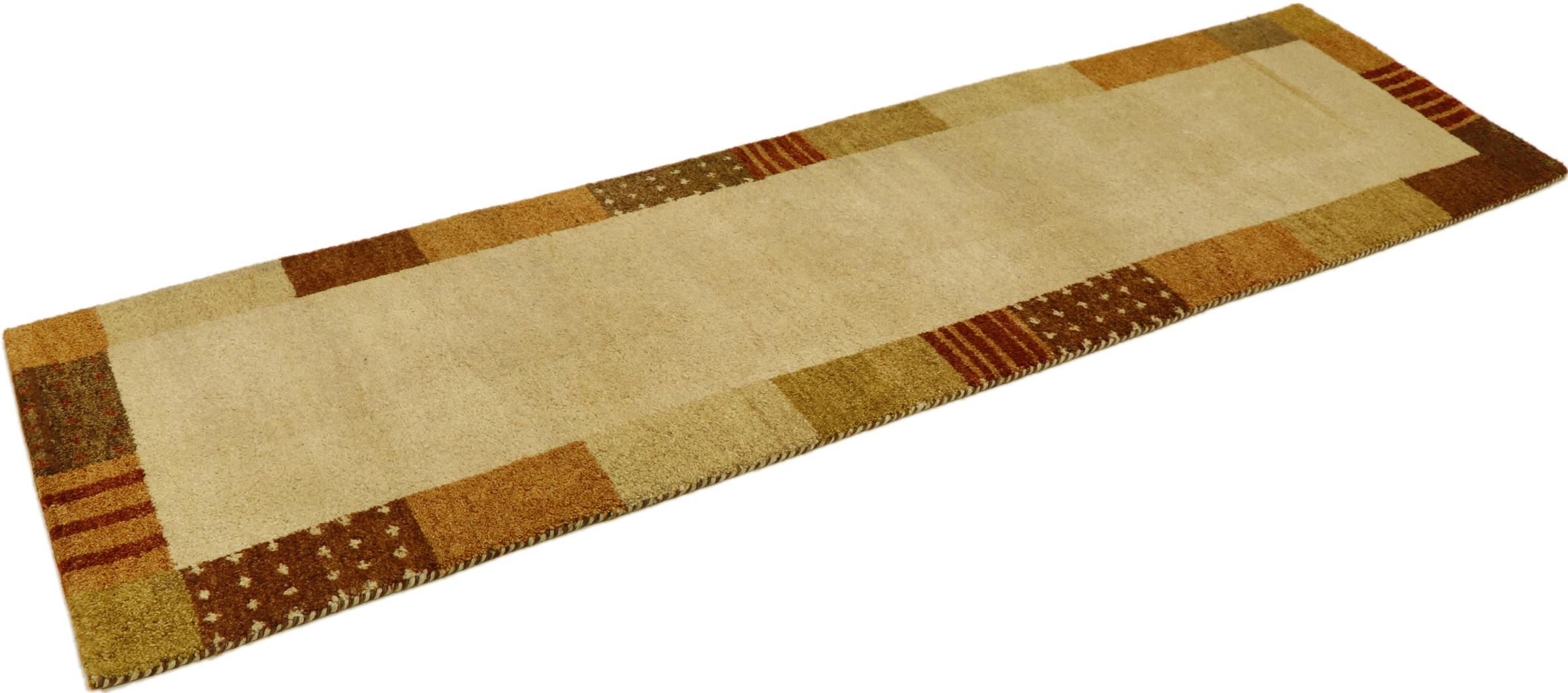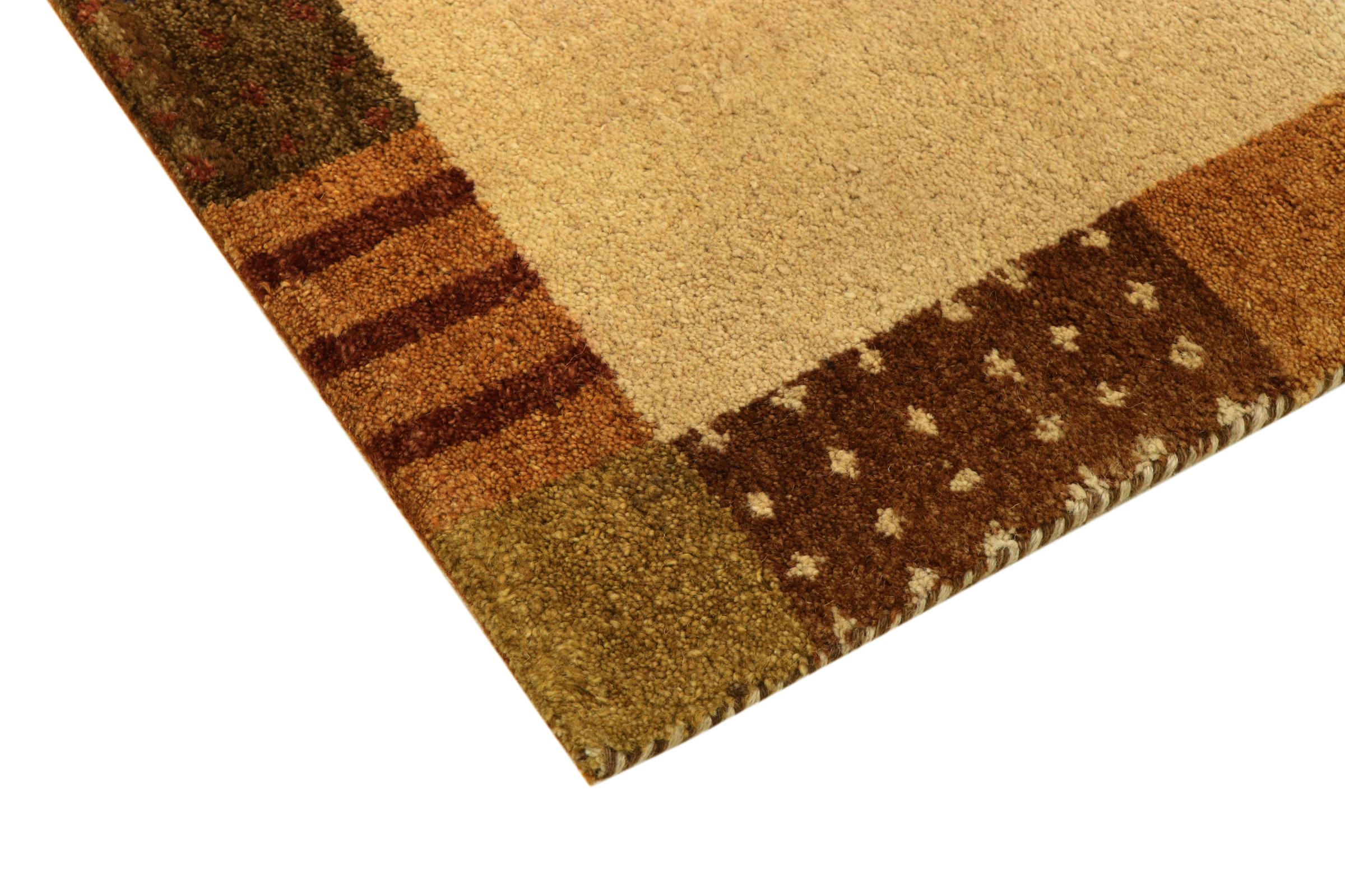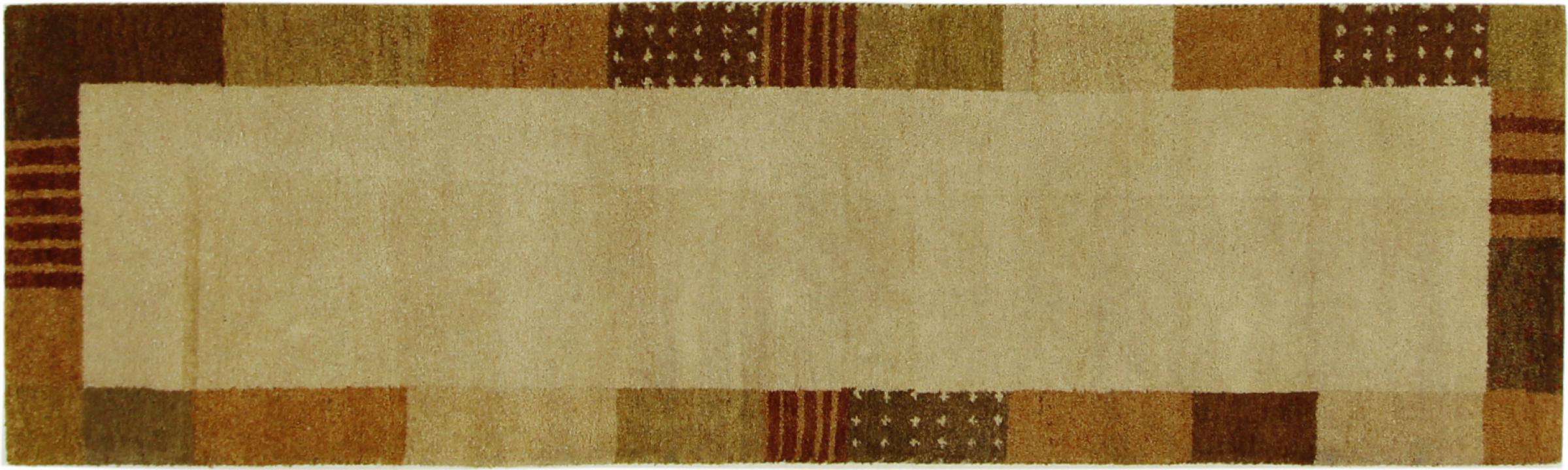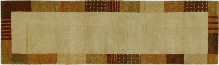 Denna vackra Gabbeh-matta var handknuten i Indien. Indiska Gabbeh-mattor är gjorda av mjuk fårull, är trevliga på fötterna och har värmeisolerande egenskaper. De flesta av deras mönster är enkla och tidlösa moderna. De inspirerades av nomadiska folk som låter mycket enkla motiv från omgivningen passera in i mattorna. Indiska Gabbeh-mattor matchar inte riktigt kvaliteten på en persisk Gabbeh, men de har ett mycket bra pris-prestanda-förhållande. Detta gör dem idealiska som en handknuten matta på entréplan.