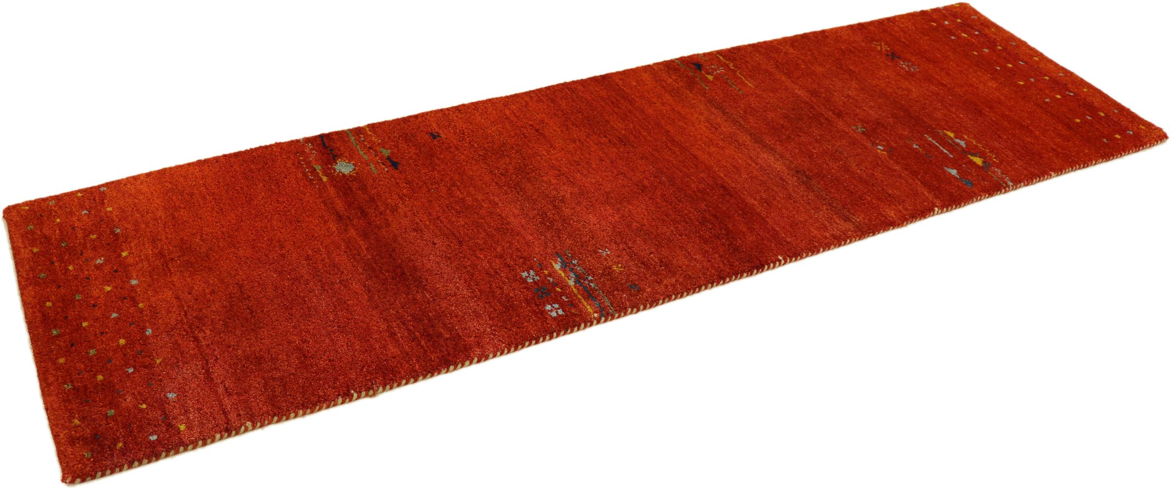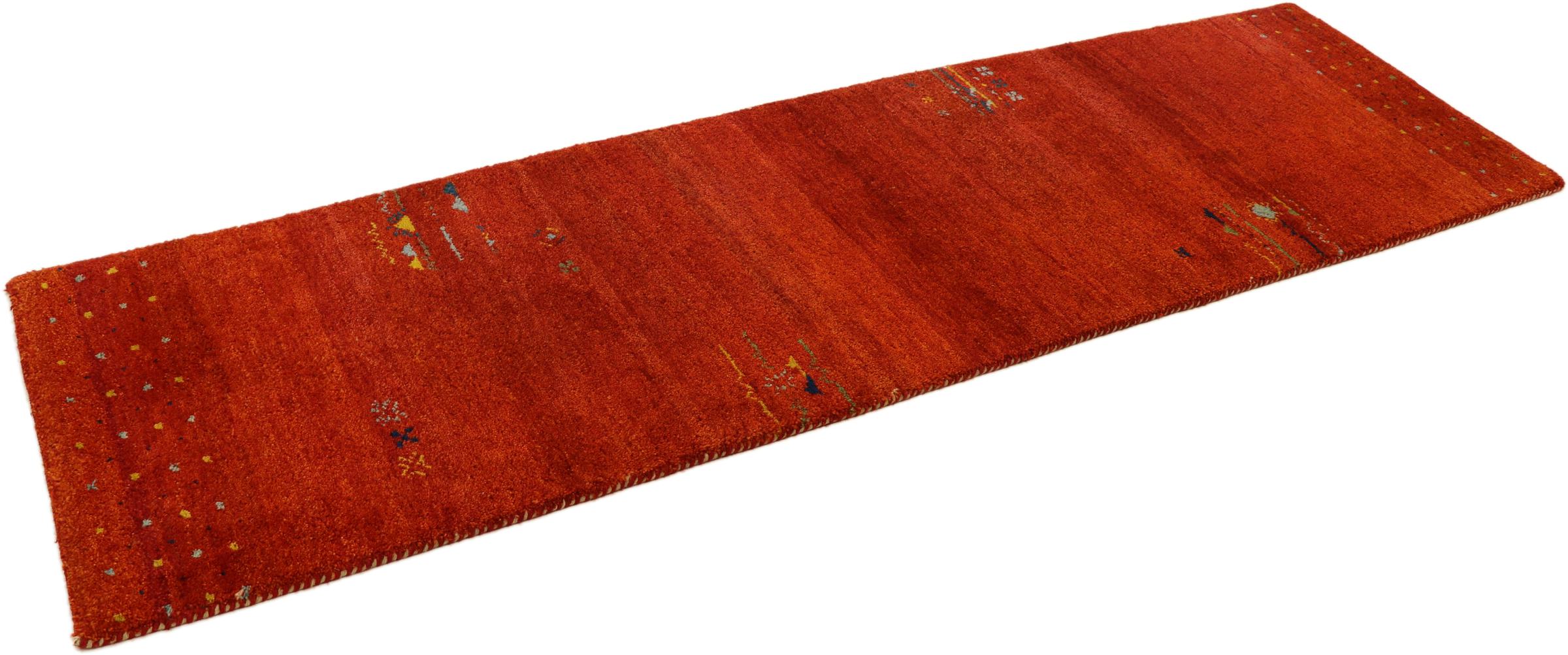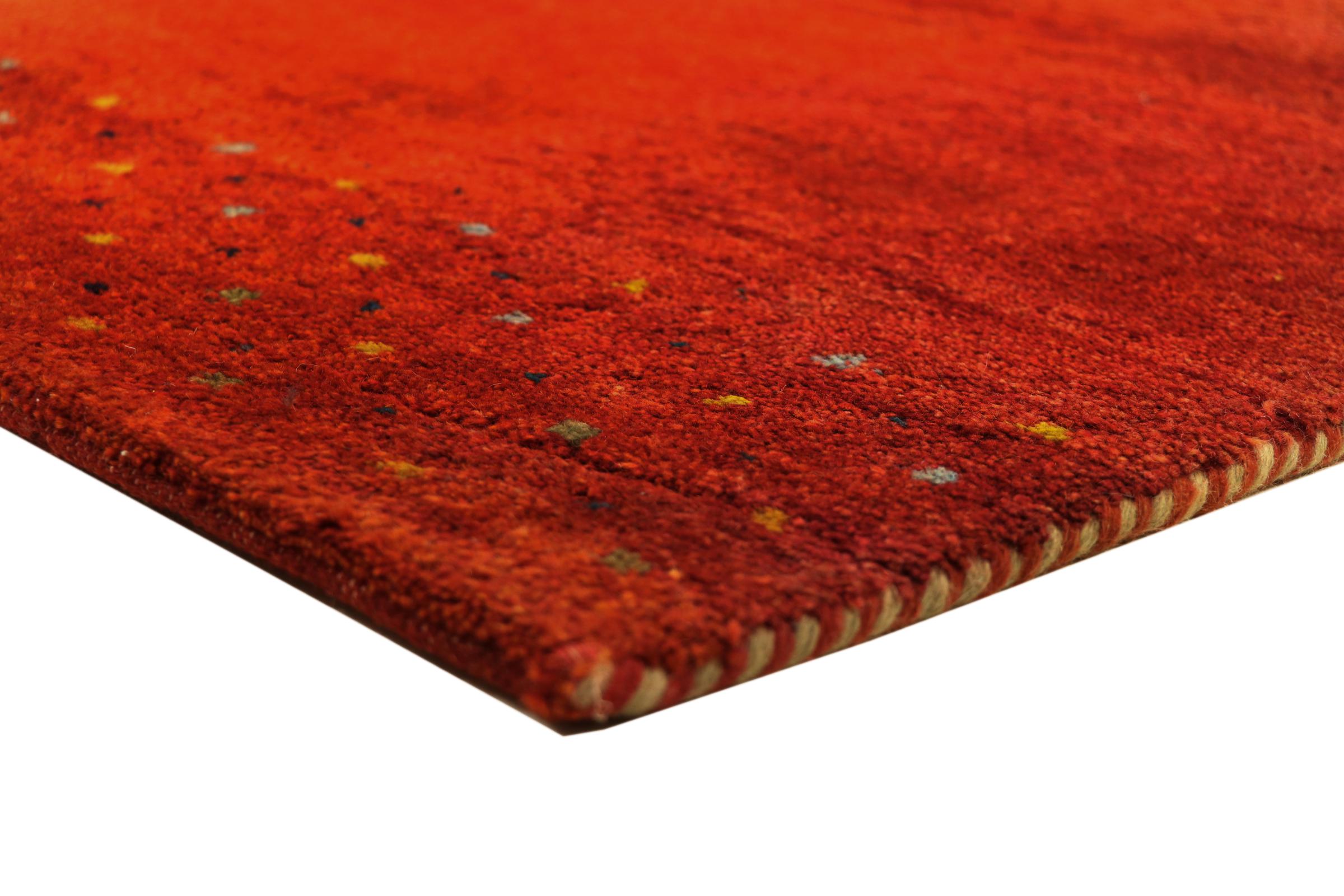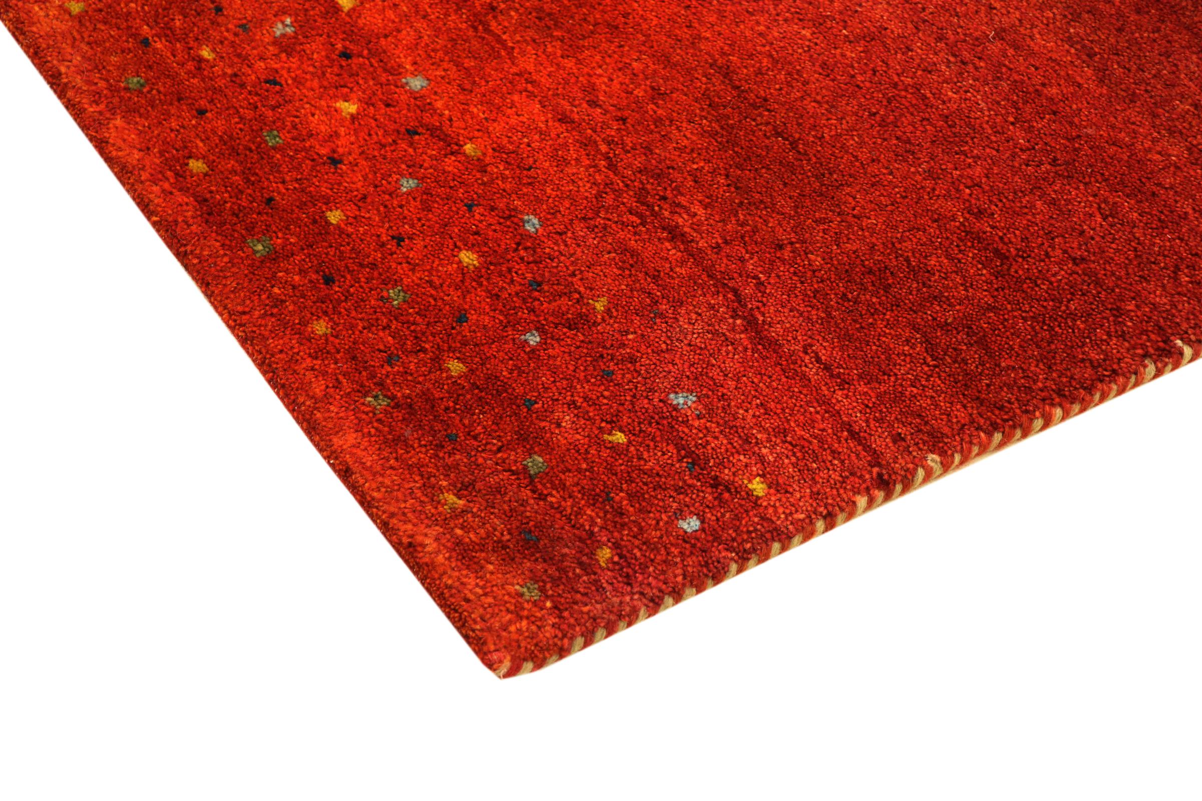 Denna vackra Gabbeh-matta var handknuten i Indien. Indiska Gabbeh-mattor är gjorda av mjuk fårull, är trevliga på fötterna och har värmeisolerande egenskaper. De flesta av deras mönster är enkla och tidlösa moderna. De inspirerades av nomadiska folk som låter mycket enkla motiv från omgivningen passera in i mattorna. Indiska Gabbeh-mattor matchar inte riktigt kvaliteten på en persisk Gabbeh, men de har ett mycket bra pris-prestanda-förhållande. Detta gör dem idealiska som en handknuten matta på entréplan.