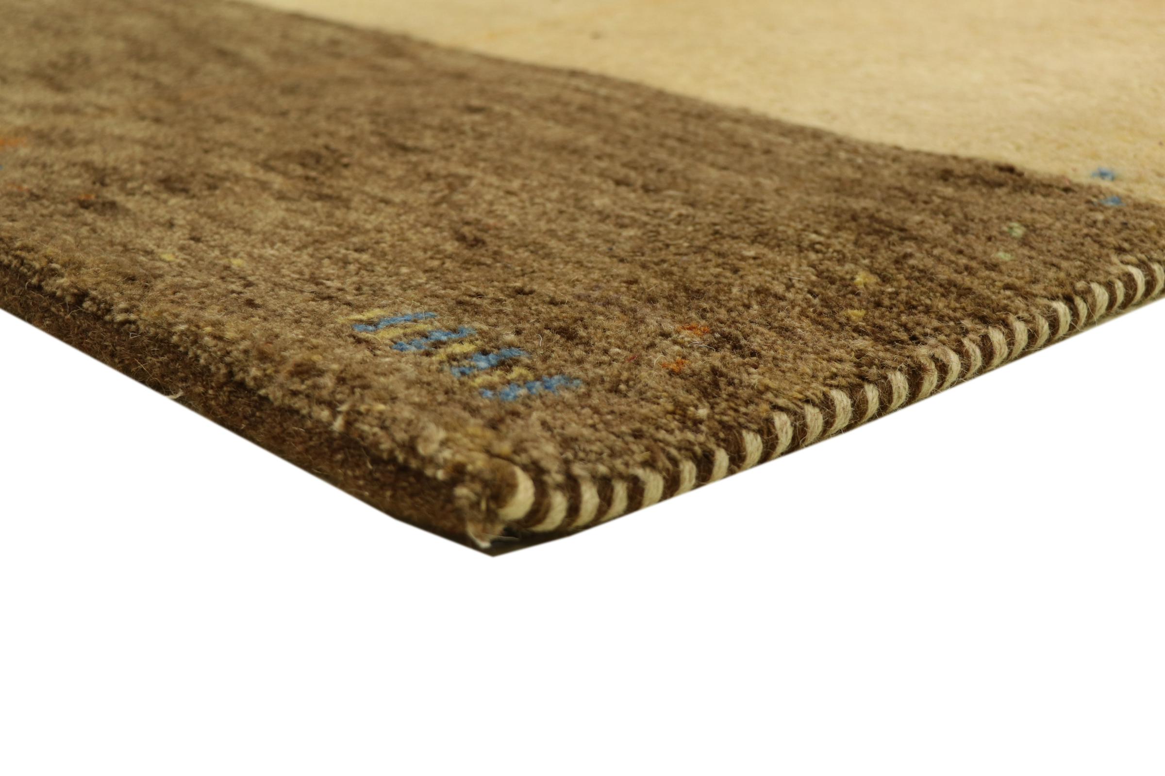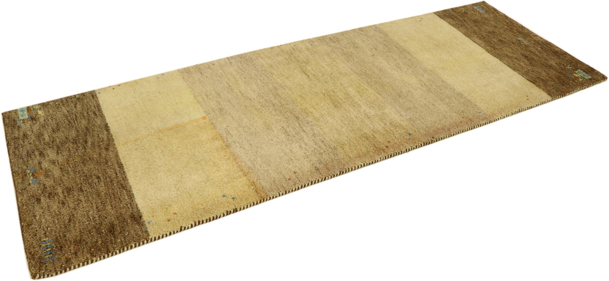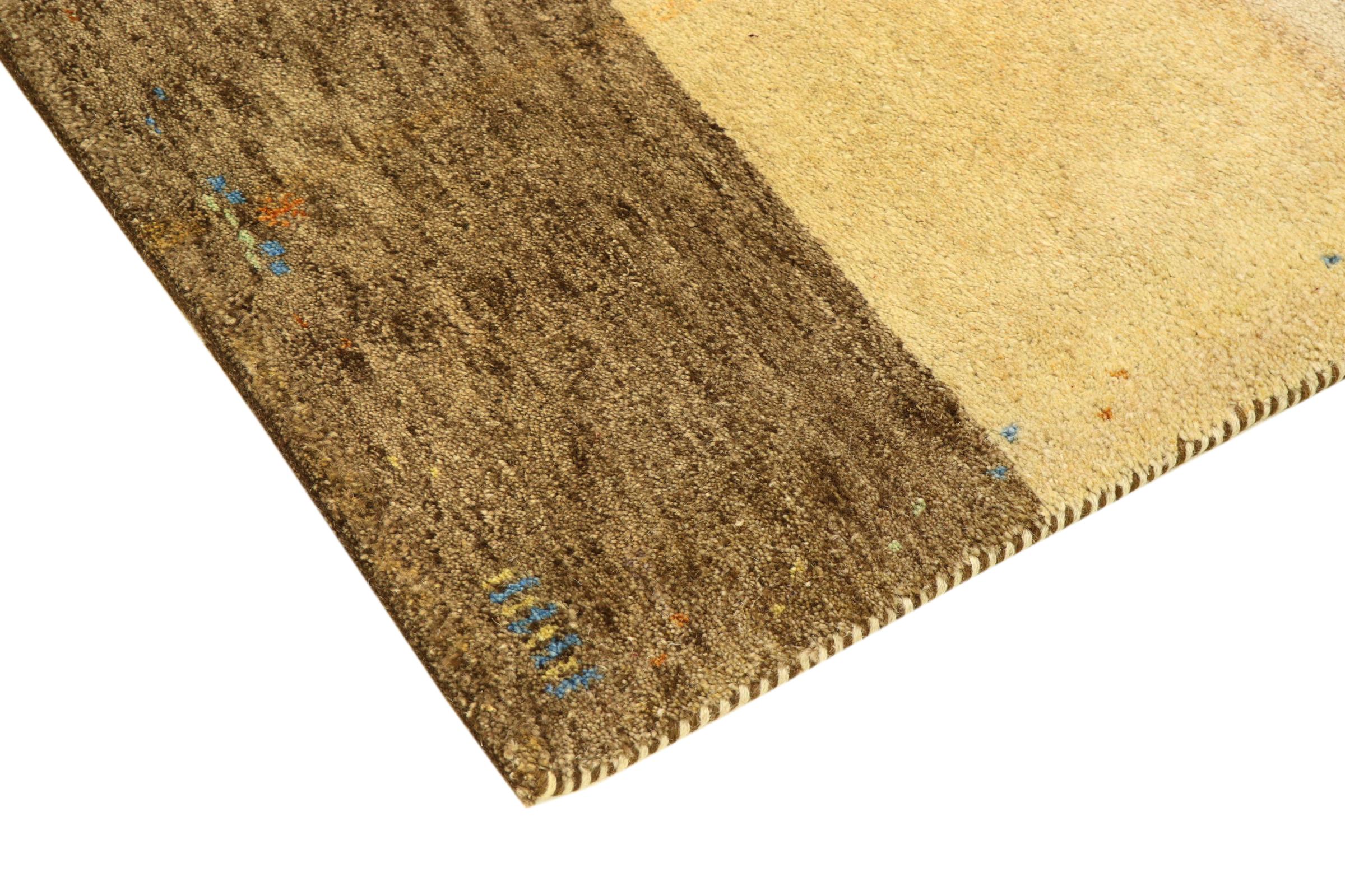 Denna vackra Gabbeh-matta var handknuten i Indien. Indiska Gabbeh-mattor är gjorda av mjuk fårull, är trevliga på fötterna och har värmeisolerande egenskaper. De flesta av deras mönster är enkla och tidlösa moderna. De inspirerades av nomadiska folk som låter mycket enkla motiv från omgivningen passera in i mattorna. Indiska Gabbeh-mattor matchar inte riktigt kvaliteten på en persisk Gabbeh, men de har ett mycket bra pris-prestanda-förhållande. Detta gör dem idealiska som en handknuten matta på entréplan.