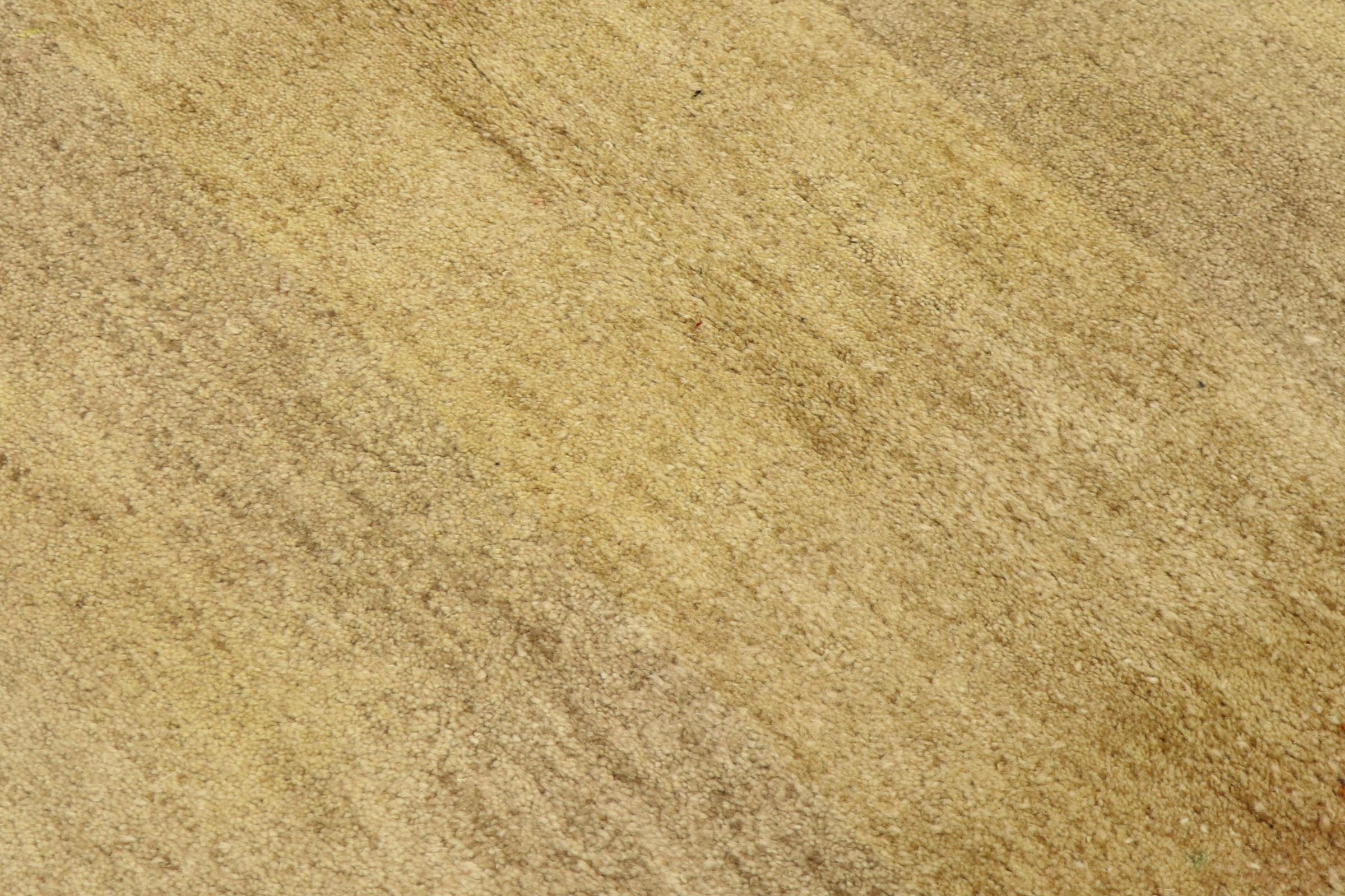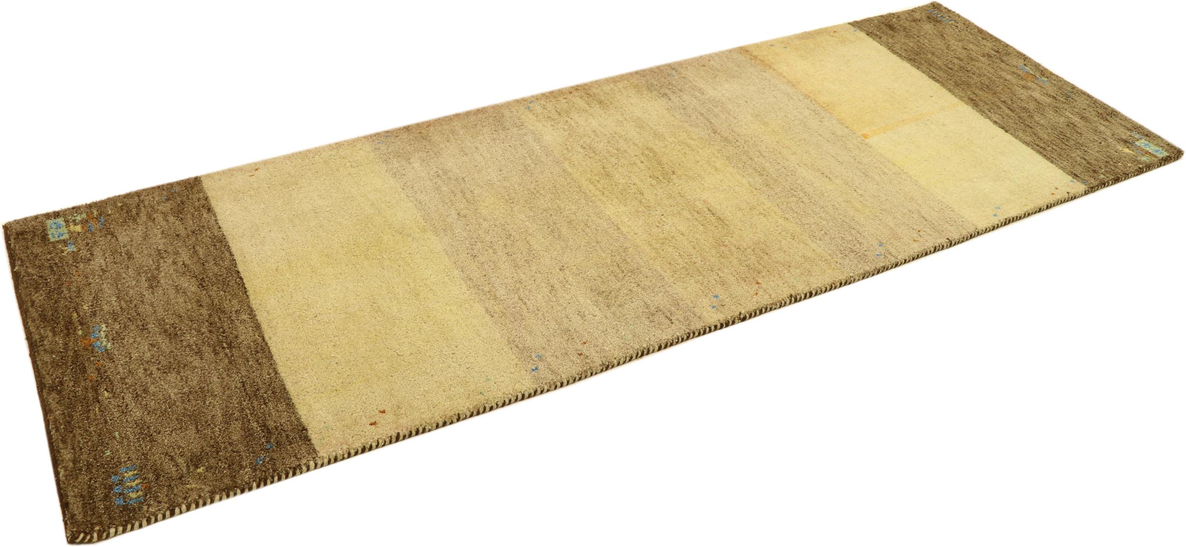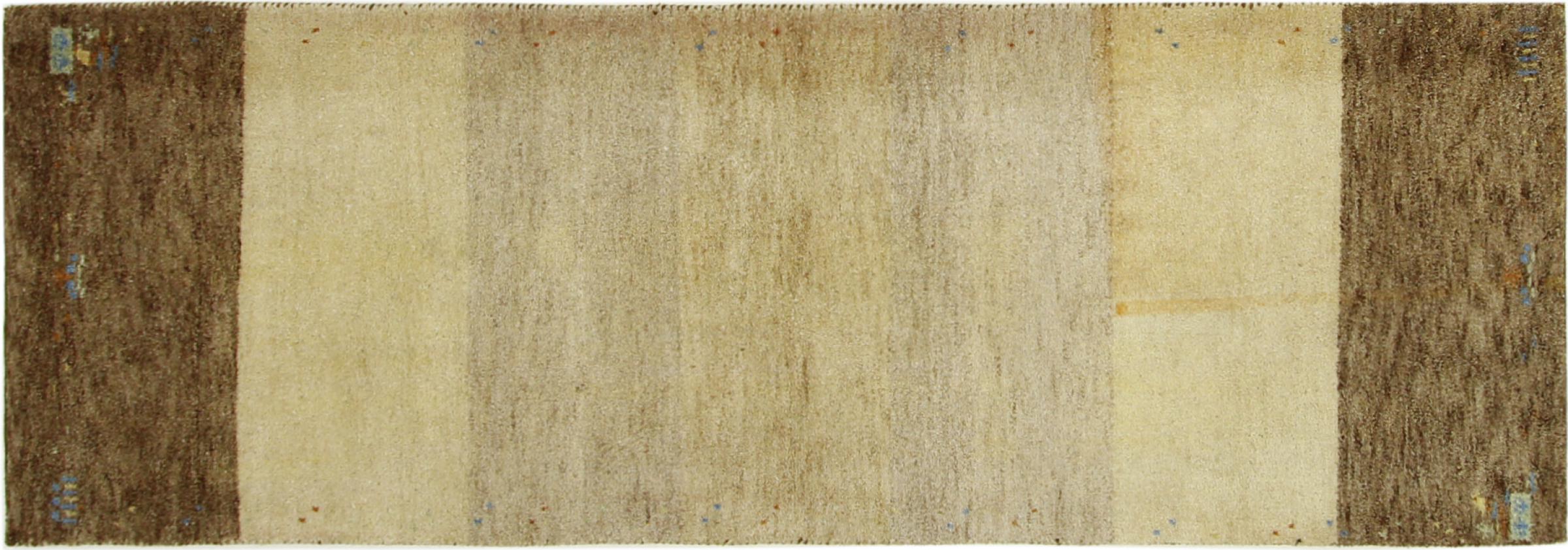 Denna vackra Gabbeh-matta var handknuten i Indien. Indiska Gabbeh-mattor är gjorda av mjuk fårull, är trevliga på fötterna och har värmeisolerande egenskaper. De flesta av deras mönster är enkla och tidlösa moderna. De inspirerades av nomadiska folk som låter mycket enkla motiv från omgivningen passera in i mattorna. Indiska Gabbeh-mattor matchar inte riktigt kvaliteten på en persisk Gabbeh, men de har ett mycket bra pris-prestanda-förhållande. Detta gör dem idealiska som en handknuten matta på entréplan.