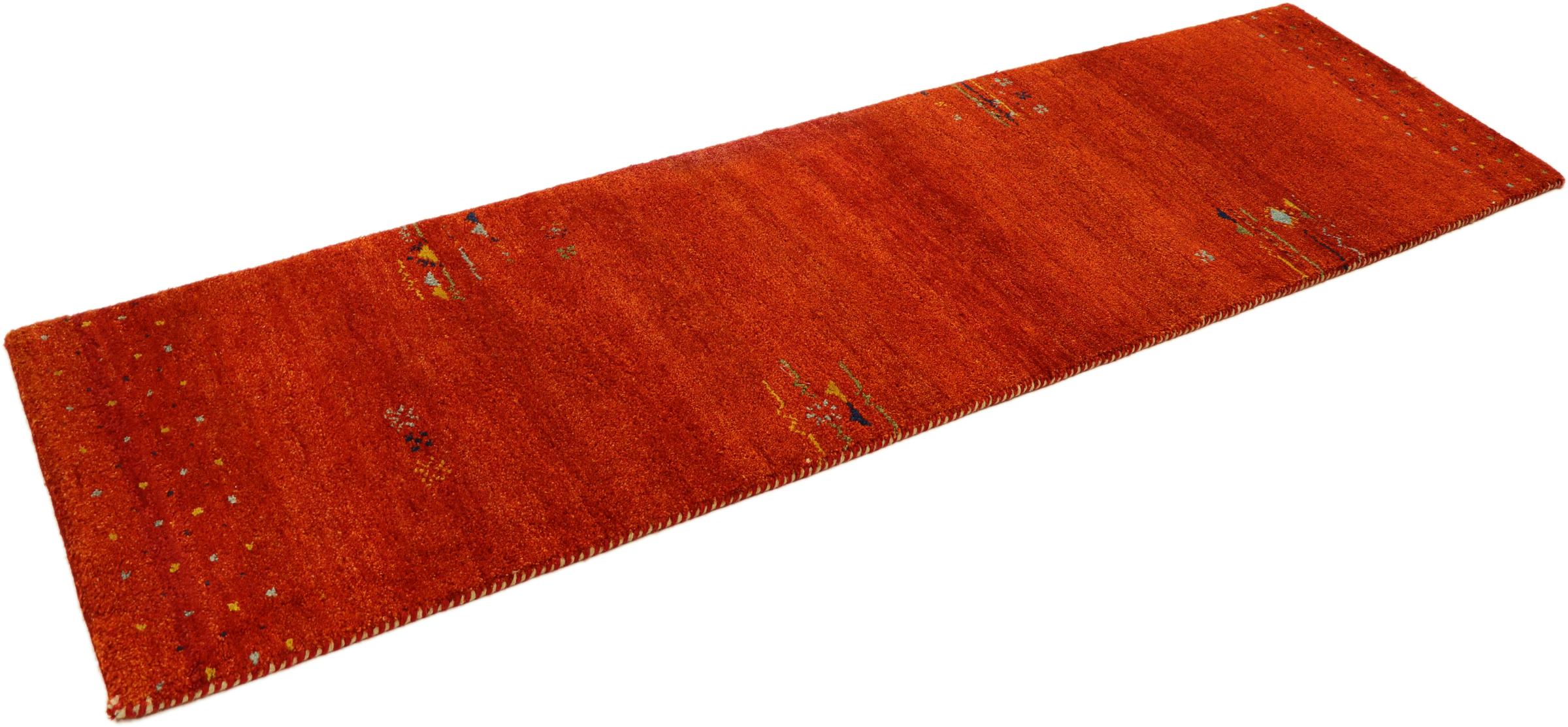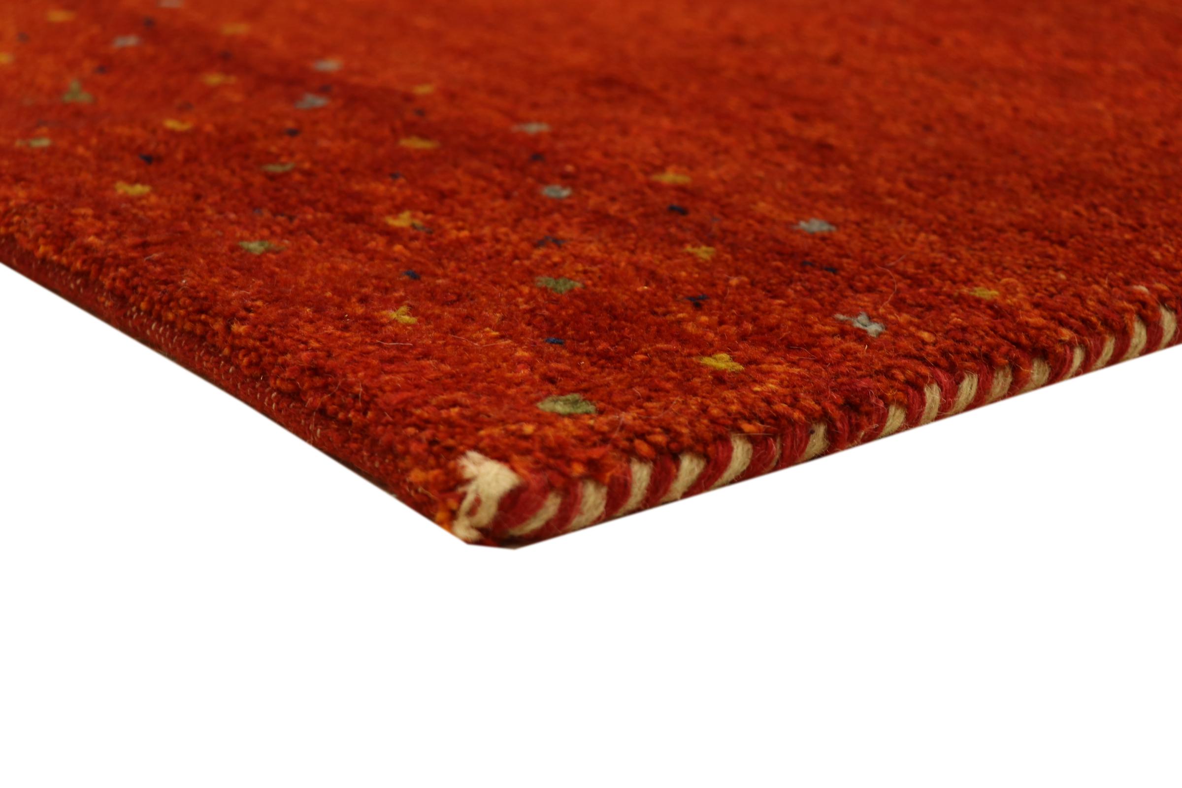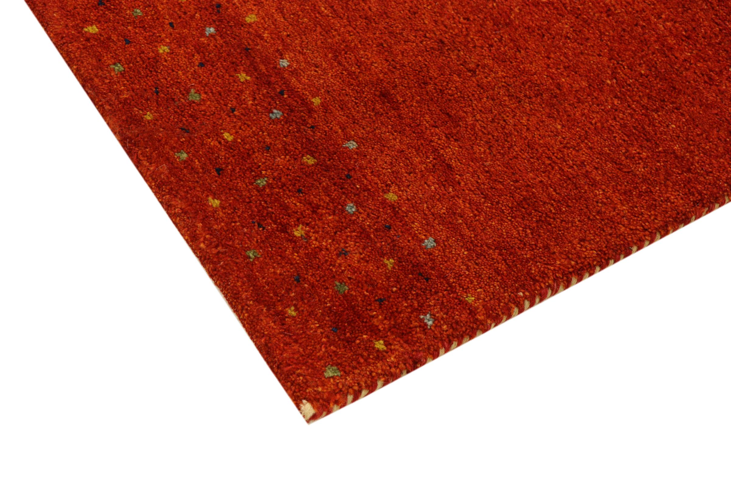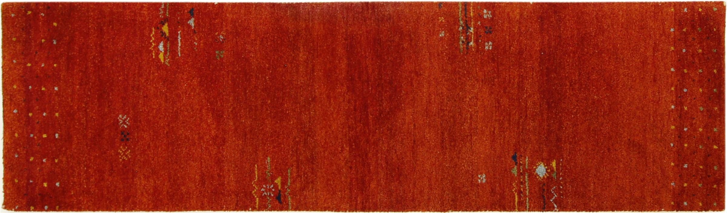 Denna vackra Gabbeh-matta var handknuten i Indien. Indiska Gabbeh-mattor är gjorda av mjuk fårull, är trevliga på fötterna och har värmeisolerande egenskaper. De flesta av deras mönster är enkla och tidlösa moderna. De inspirerades av nomadiska folk som låter mycket enkla motiv från omgivningen passera in i mattorna. Indiska Gabbeh-mattor matchar inte riktigt kvaliteten på en persisk Gabbeh, men de har ett mycket bra pris-prestanda-förhållande. Detta gör dem idealiska som en handknuten matta på entréplan.