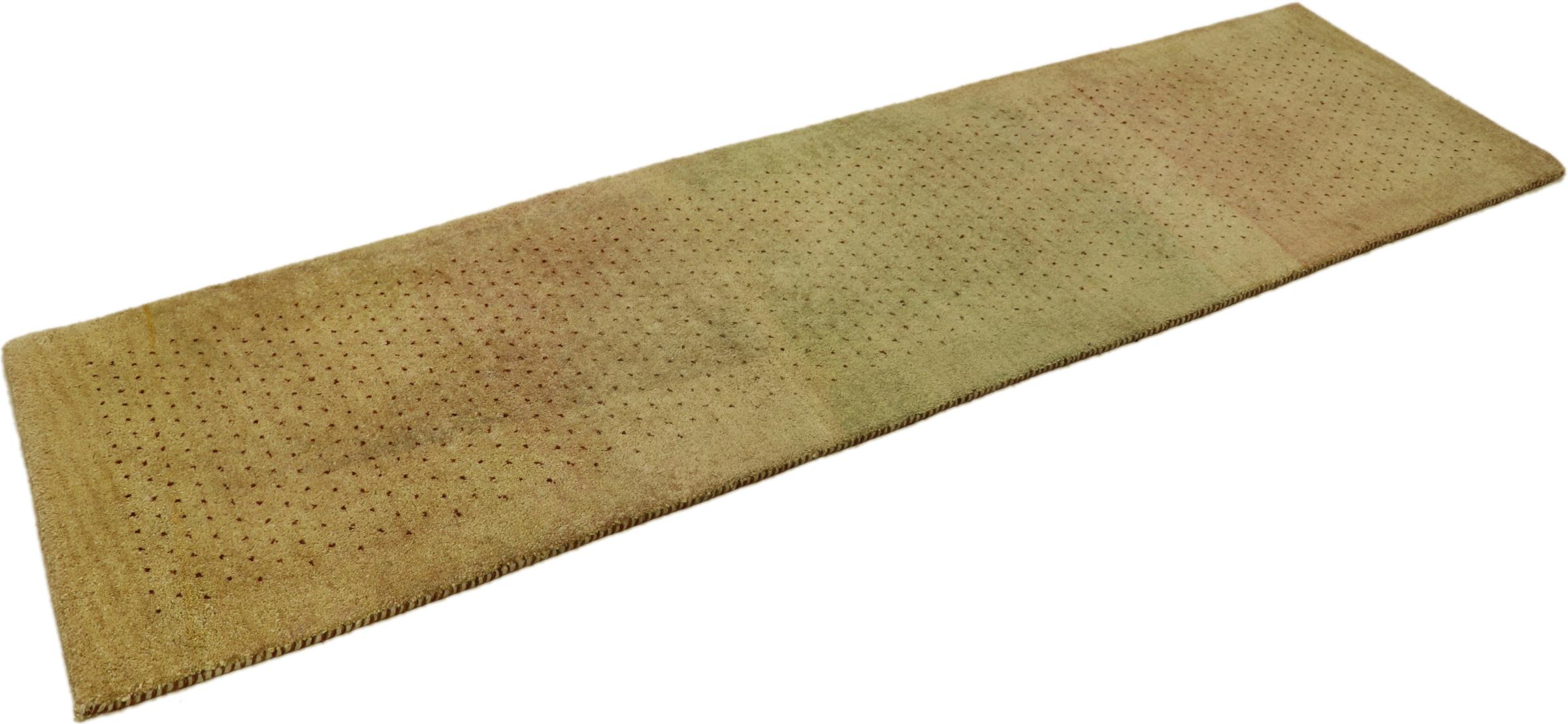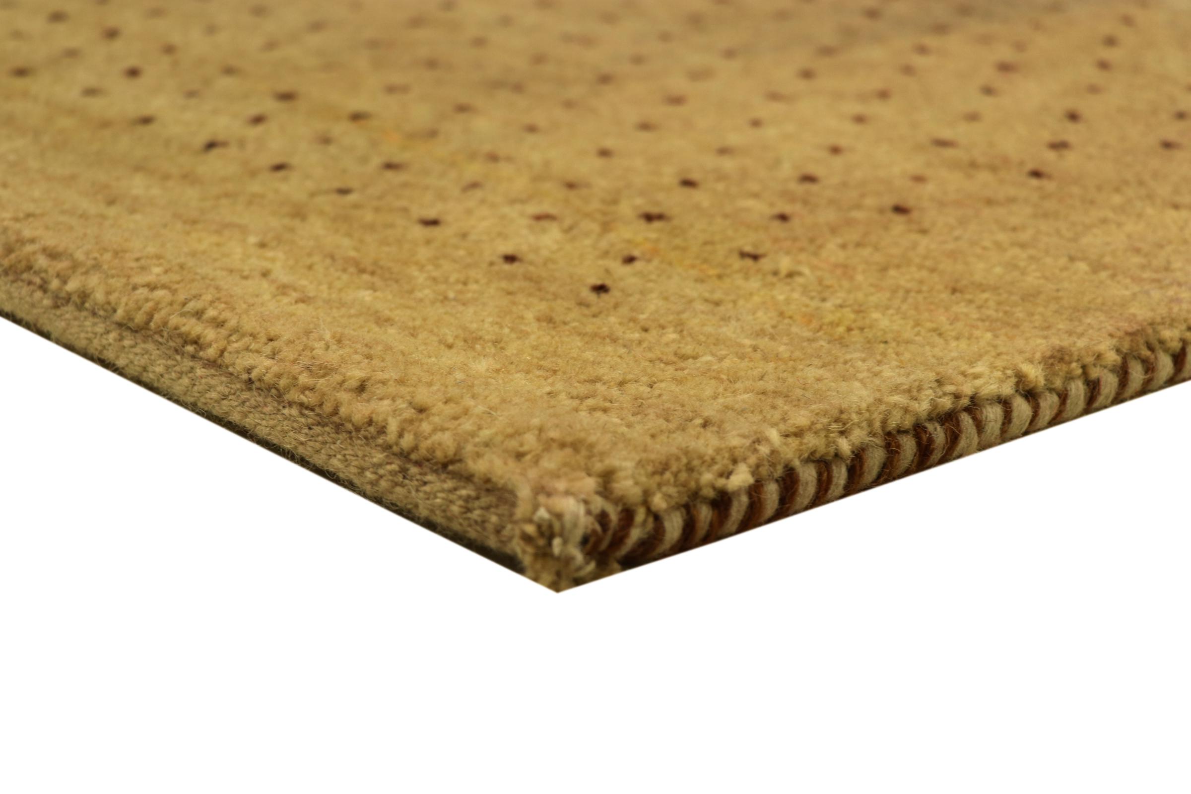 Denna vackra Gabbeh-matta var handknuten i Indien. Indiska Gabbeh-mattor är gjorda av mjuk fårull, är trevliga på fötterna och har värmeisolerande egenskaper. De flesta av deras mönster är enkla och tidlösa moderna. De inspirerades av nomadiska folk som låter mycket enkla motiv från omgivningen passera in i mattorna. Indiska Gabbeh-mattor matchar inte riktigt kvaliteten på en persisk Gabbeh, men de har ett mycket bra pris-prestanda-förhållande. Detta gör dem idealiska som en handknuten matta på entréplan.