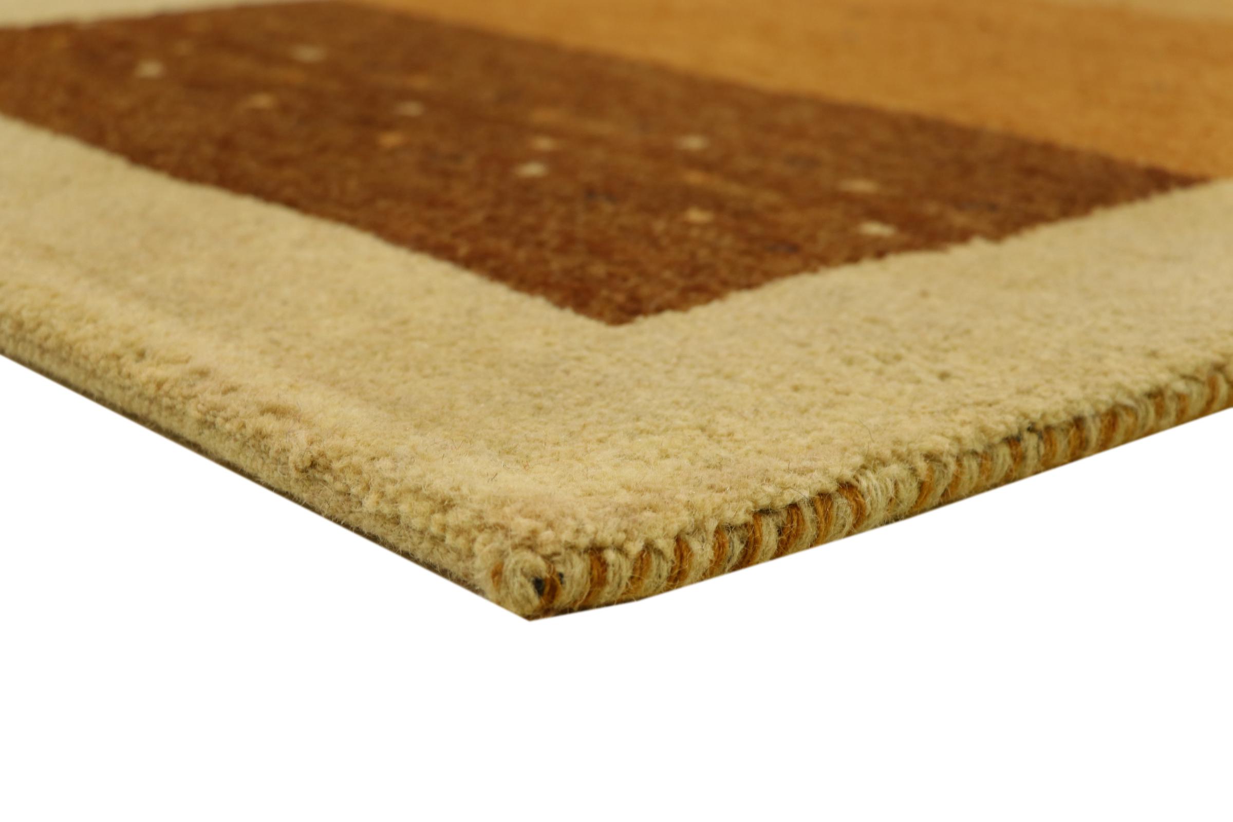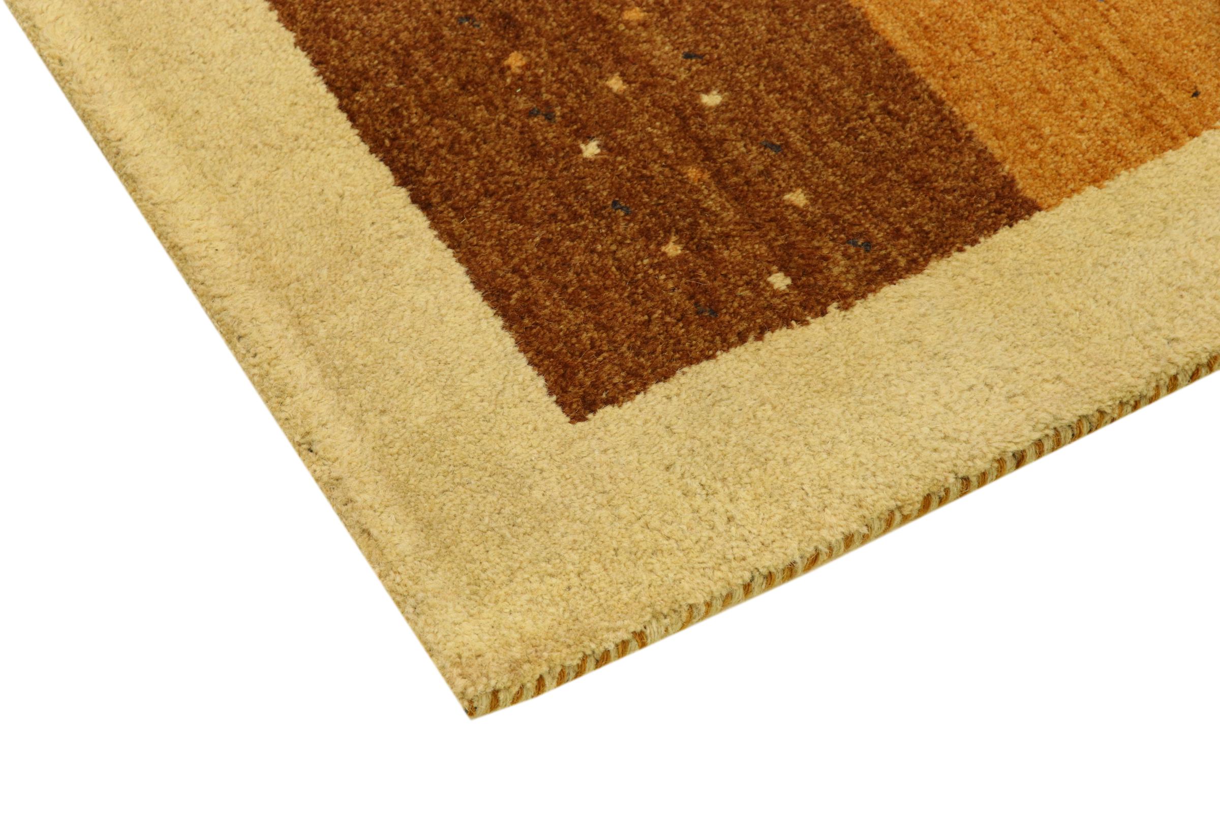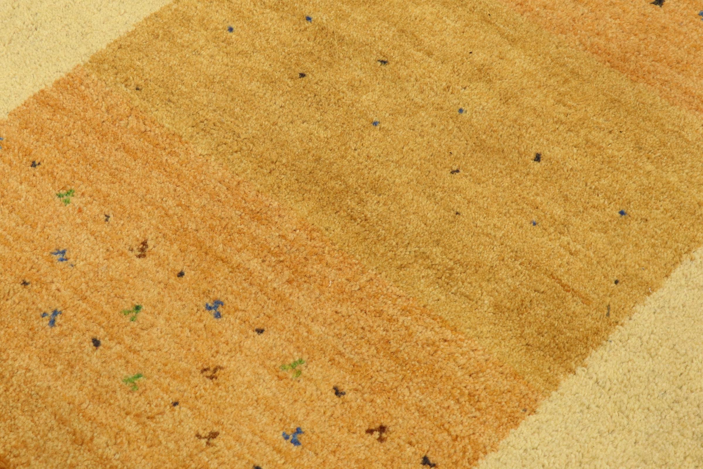 Denna vackra Gabbeh-matta var handknuten i Indien. Indiska Gabbeh-mattor är gjorda av mjuk fårull, är trevliga på fötterna och har värmeisolerande egenskaper. De flesta av deras mönster är enkla och tidlösa moderna. De inspirerades av nomadiska folk som låter mycket enkla motiv från omgivningen passera in i mattorna. Indiska Gabbeh-mattor matchar inte riktigt kvaliteten på en persisk Gabbeh, men de har ett mycket bra pris-prestanda-förhållande. Detta gör dem idealiska som en handknuten matta på entréplan.