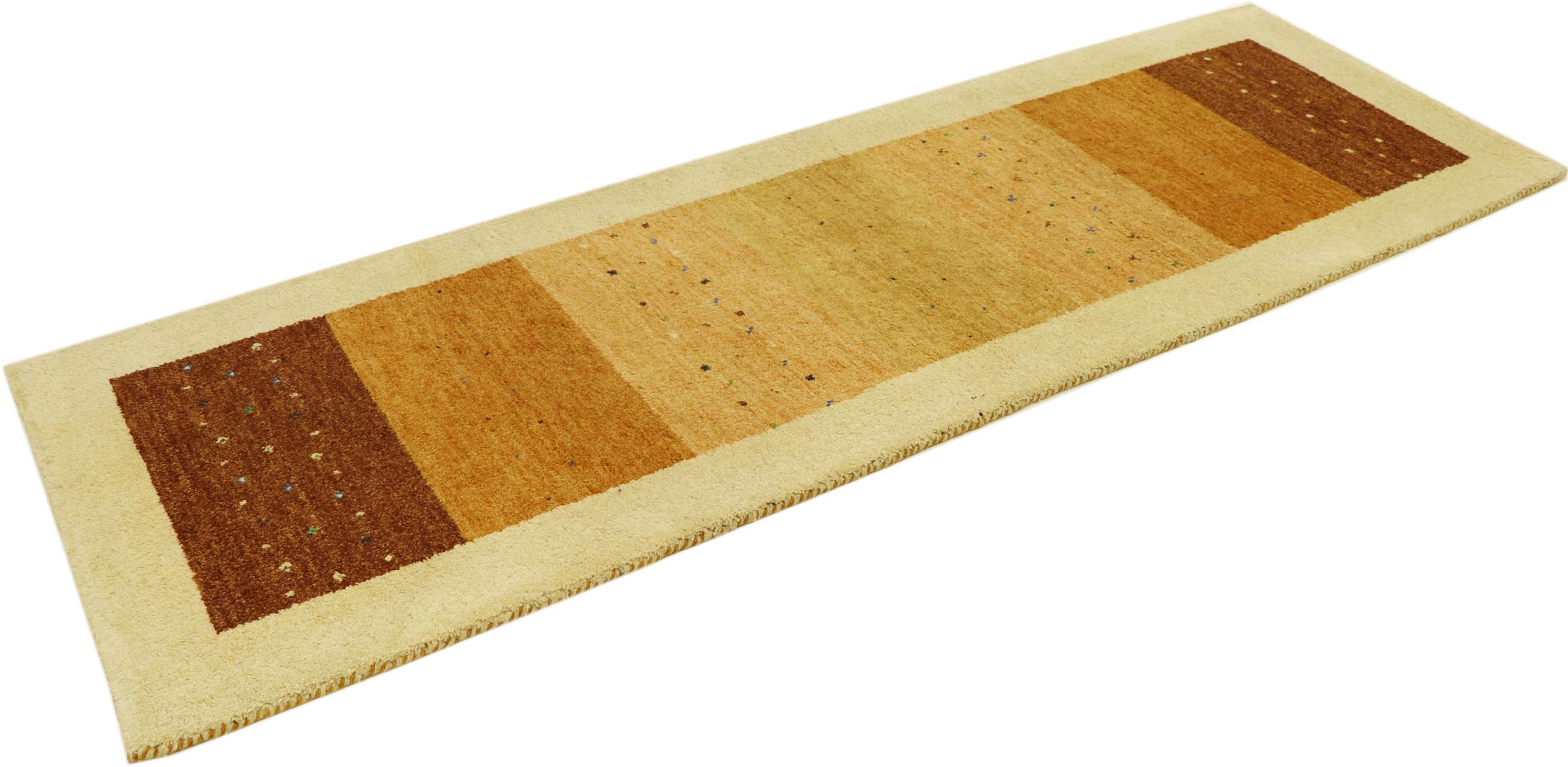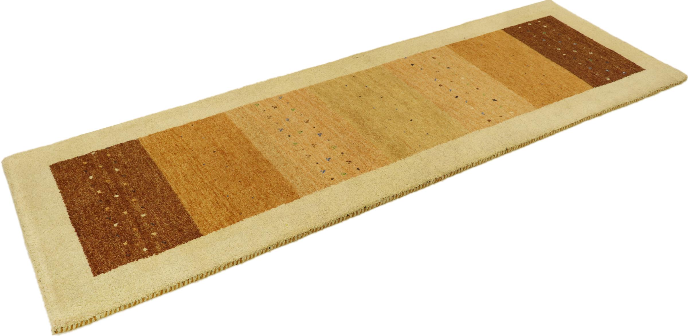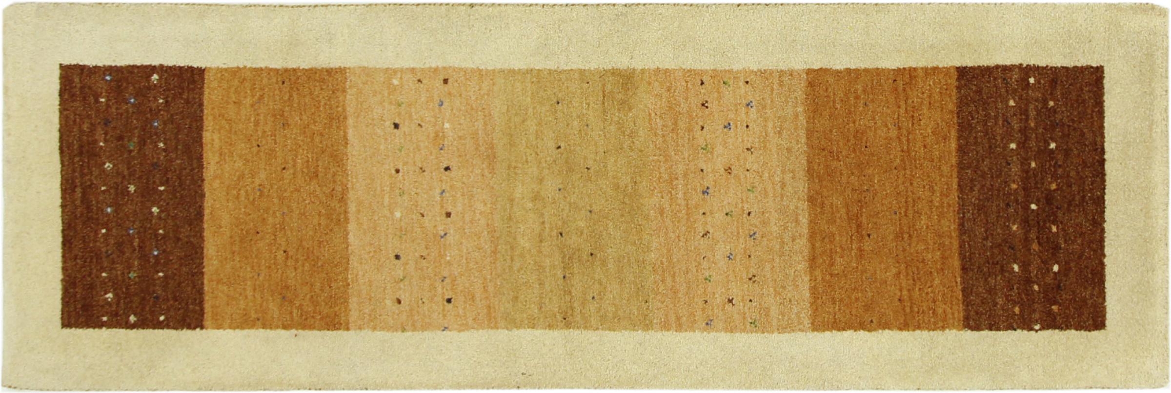 Denna vackra Gabbeh-matta var handknuten i Indien. Indiska Gabbeh-mattor är gjorda av mjuk fårull, är trevliga på fötterna och har värmeisolerande egenskaper. De flesta av deras mönster är enkla och tidlösa moderna. De inspirerades av nomadiska folk som låter mycket enkla motiv från omgivningen passera in i mattorna. Indiska Gabbeh-mattor matchar inte riktigt kvaliteten på en persisk Gabbeh, men de har ett mycket bra pris-prestanda-förhållande. Detta gör dem idealiska som en handknuten matta på entréplan.