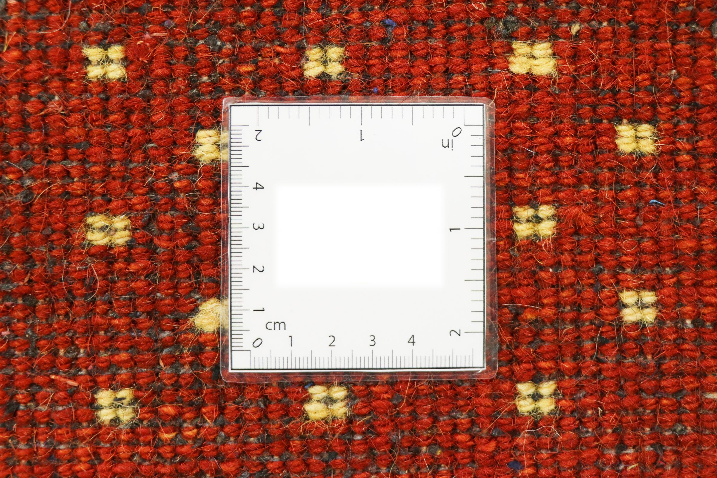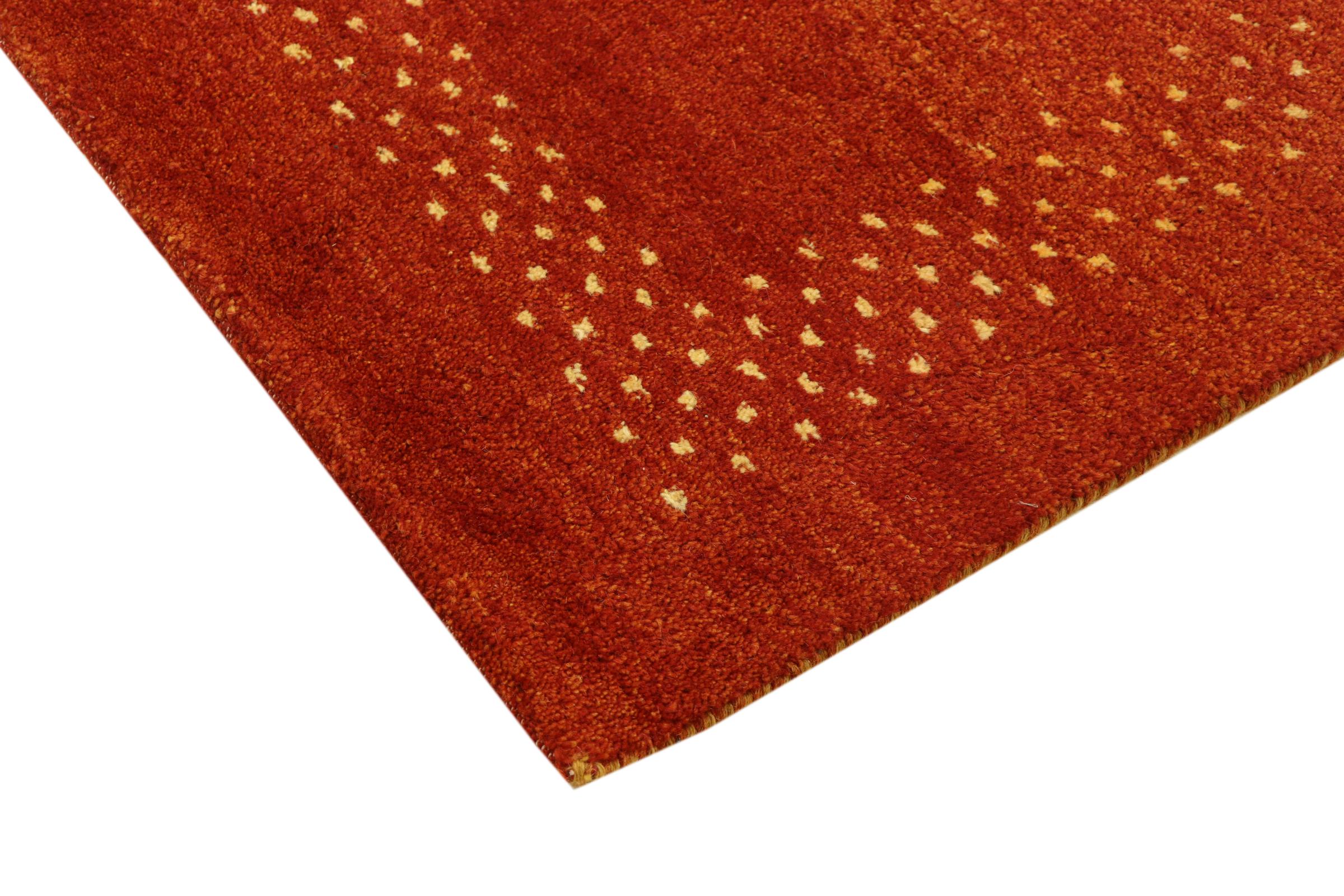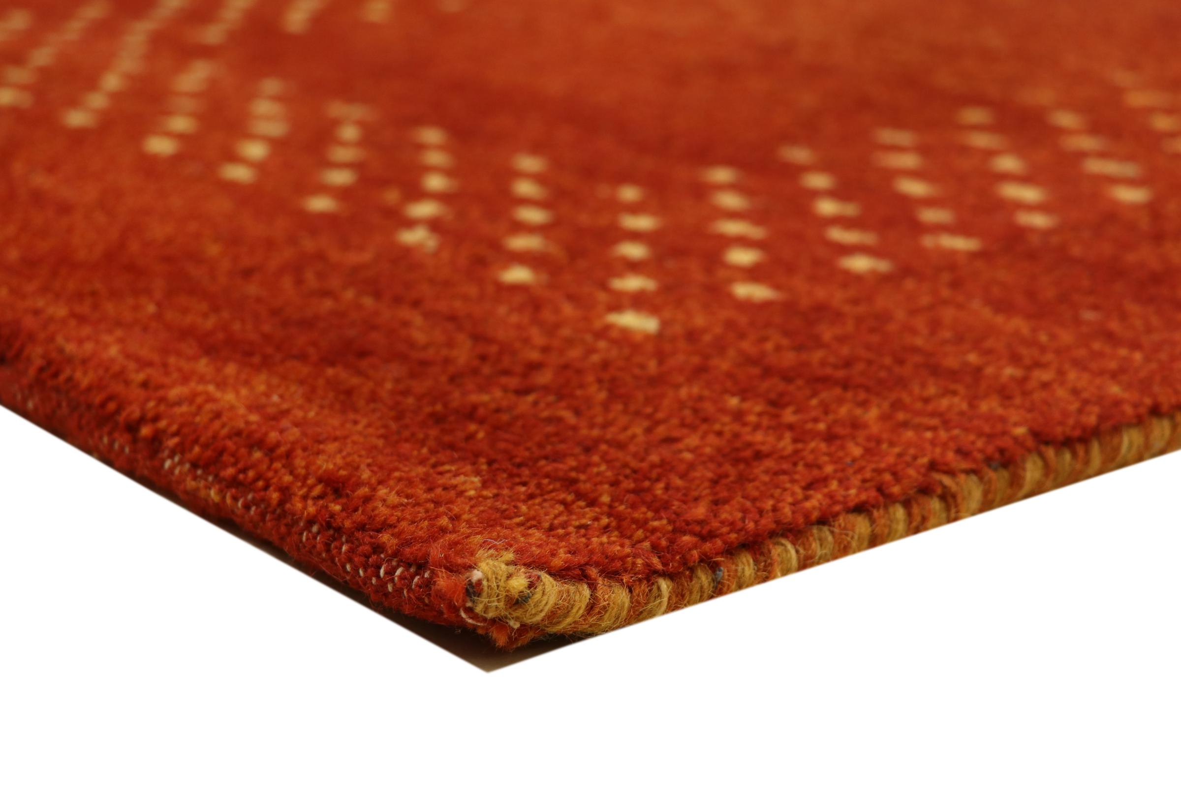 Denna vackra Gabbeh-matta var handknuten i Indien. Indiska Gabbeh-mattor är gjorda av mjuk fårull, är trevliga på fötterna och har värmeisolerande egenskaper. De flesta av deras mönster är enkla och tidlösa moderna. De inspirerades av nomadiska folk som låter mycket enkla motiv från omgivningen passera in i mattorna. Indiska Gabbeh-mattor matchar inte riktigt kvaliteten på en persisk Gabbeh, men de har ett mycket bra pris-prestanda-förhållande. Detta gör dem idealiska som en handknuten matta på entréplan.