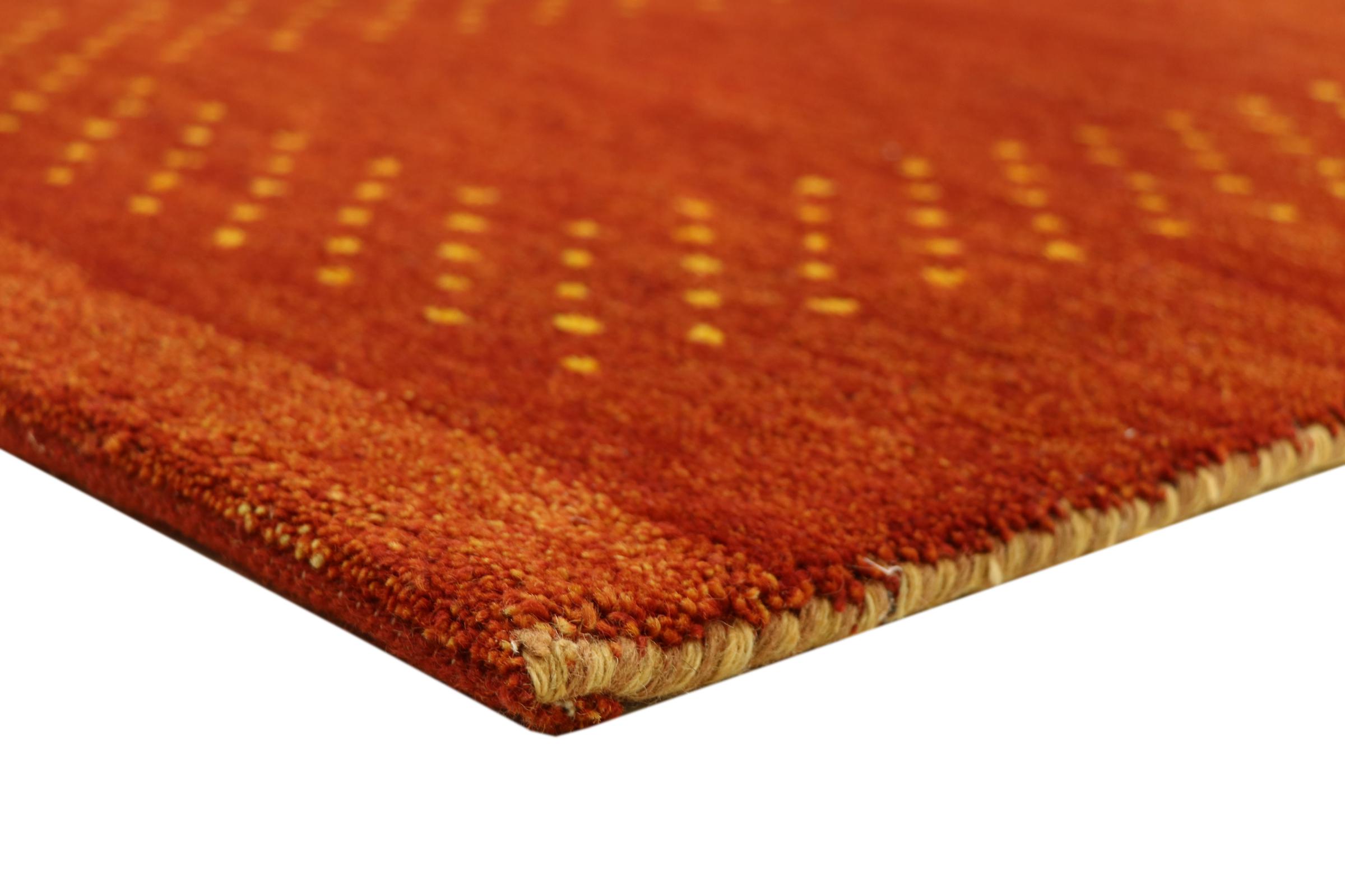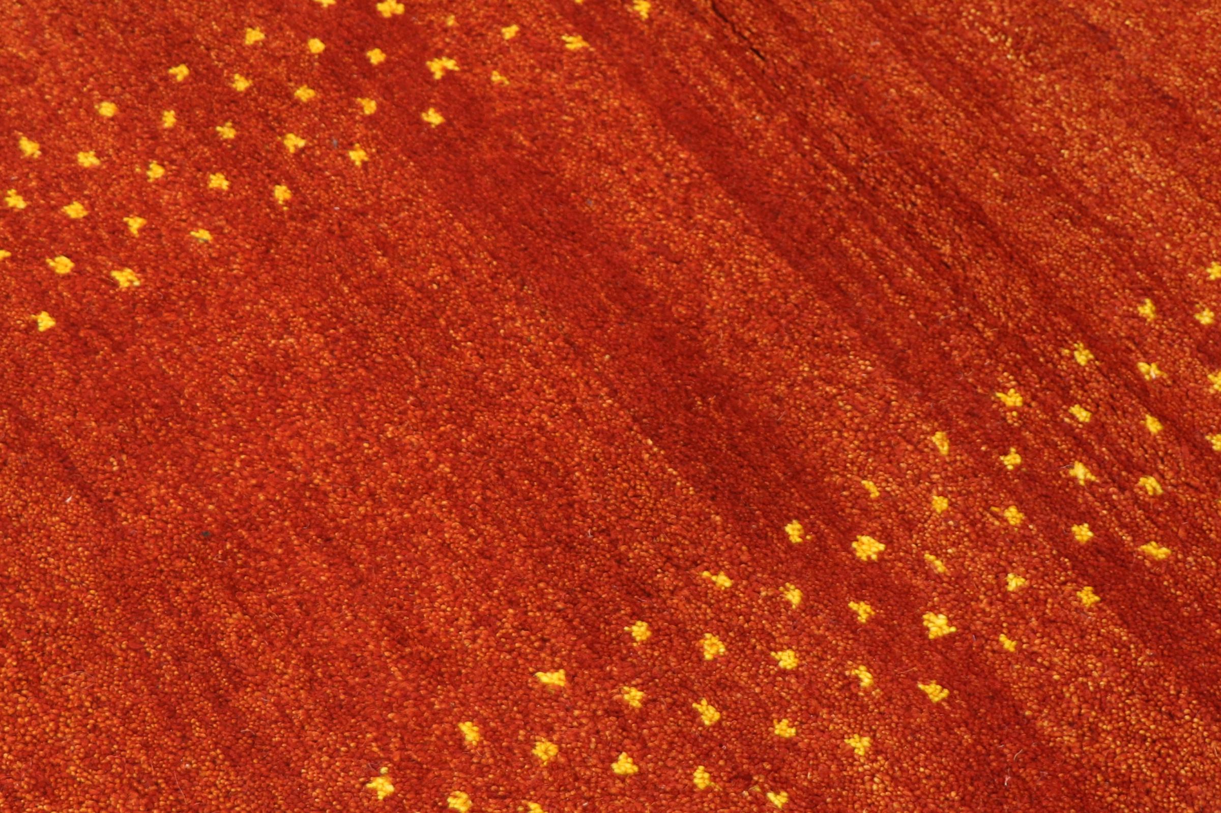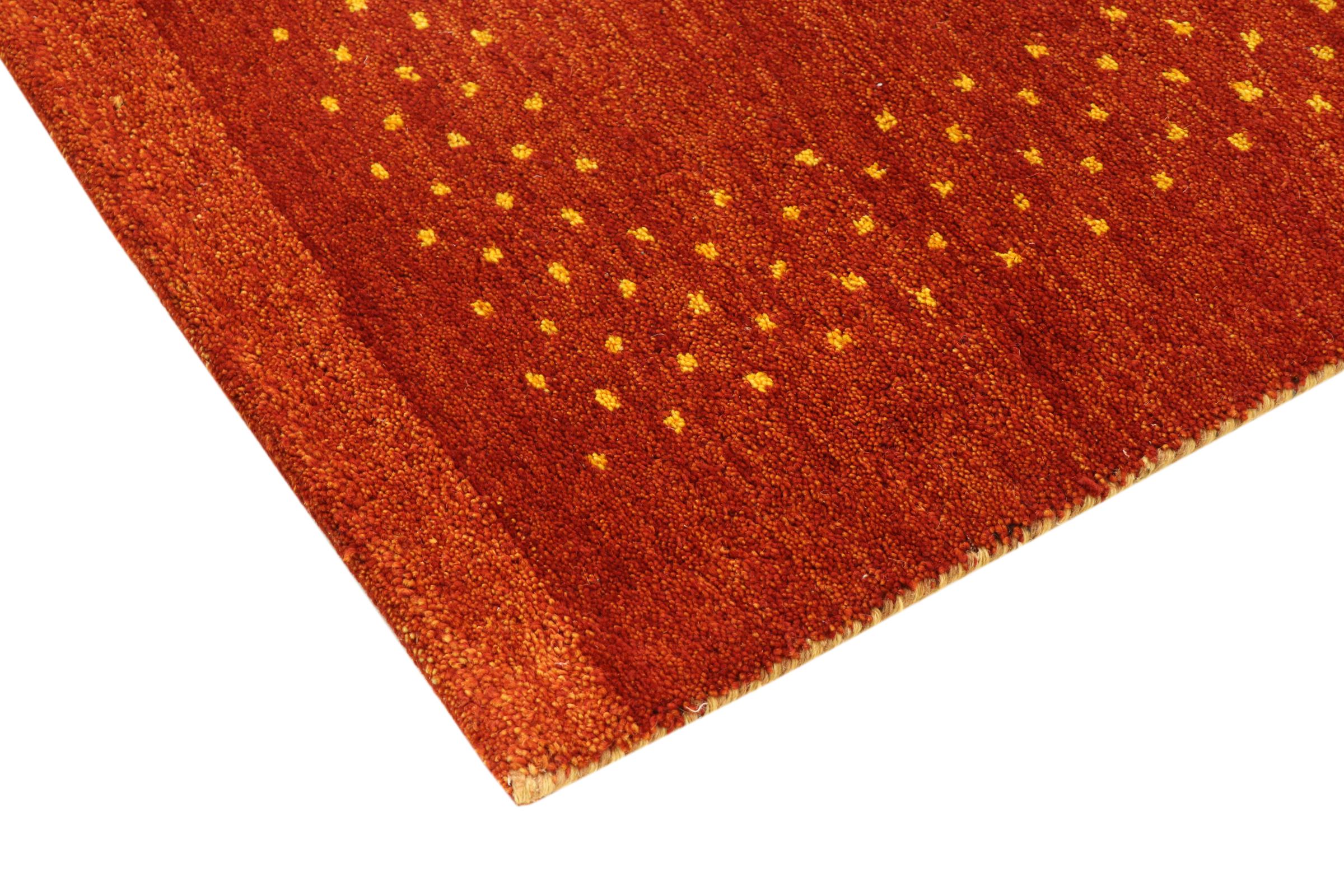 Denna vackra Gabbeh-matta var handknuten i Indien. Indiska Gabbeh-mattor är gjorda av mjuk fårull, är trevliga på fötterna och har värmeisolerande egenskaper. De flesta av deras mönster är enkla och tidlösa moderna. De inspirerades av nomadiska folk som låter mycket enkla motiv från omgivningen passera in i mattorna. Indiska Gabbeh-mattor matchar inte riktigt kvaliteten på en persisk Gabbeh, men de har ett mycket bra pris-prestanda-förhållande. Detta gör dem idealiska som en handknuten matta på entréplan.