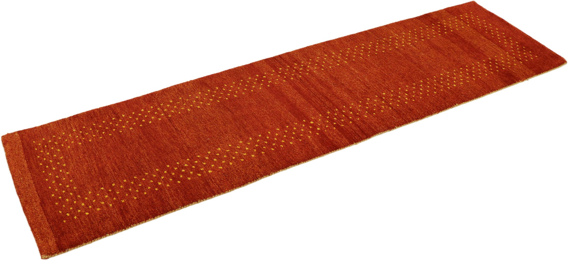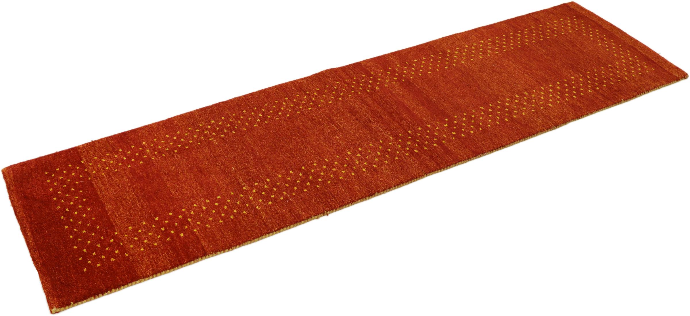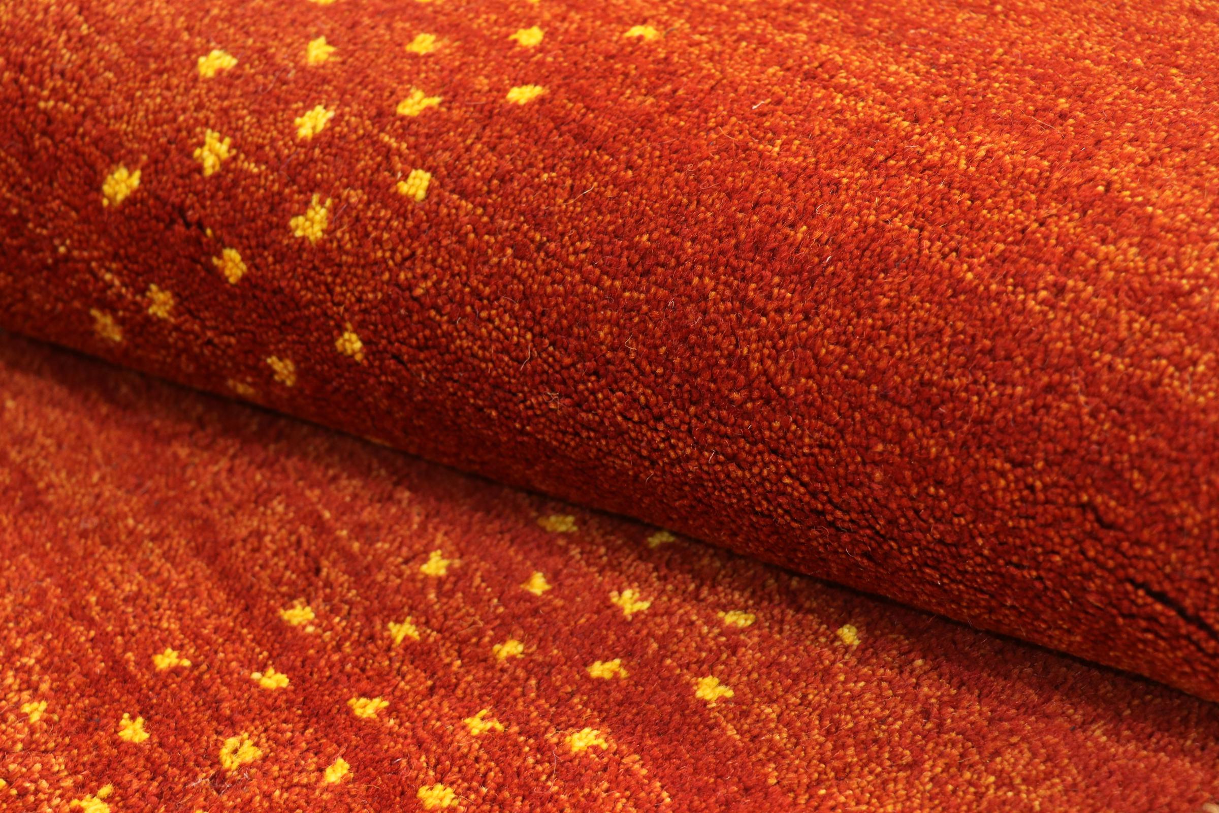 Denna vackra Gabbeh-matta var handknuten i Indien. Indiska Gabbeh-mattor är gjorda av mjuk fårull, är trevliga på fötterna och har värmeisolerande egenskaper. De flesta av deras mönster är enkla och tidlösa moderna. De inspirerades av nomadiska folk som låter mycket enkla motiv från omgivningen passera in i mattorna. Indiska Gabbeh-mattor matchar inte riktigt kvaliteten på en persisk Gabbeh, men de har ett mycket bra pris-prestanda-förhållande. Detta gör dem idealiska som en handknuten matta på entréplan.
