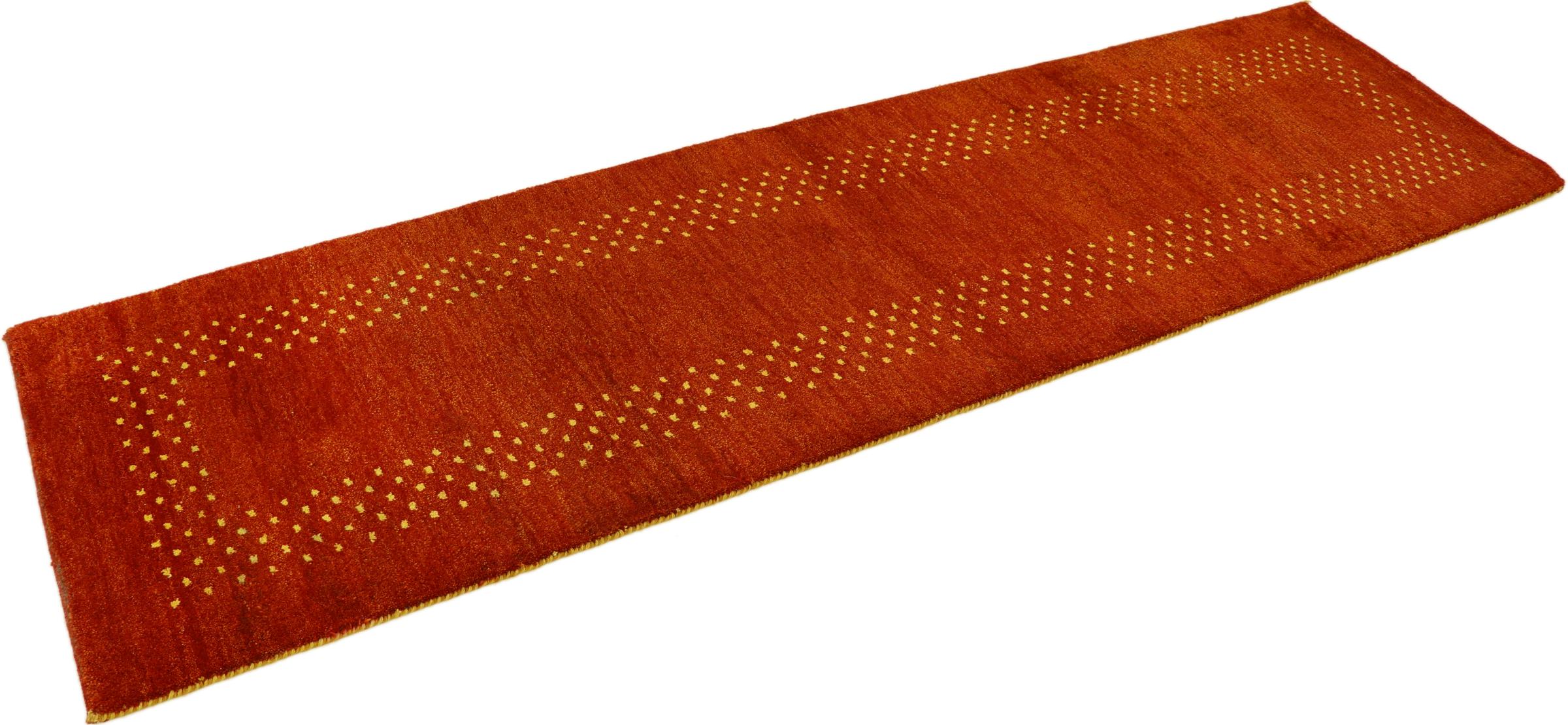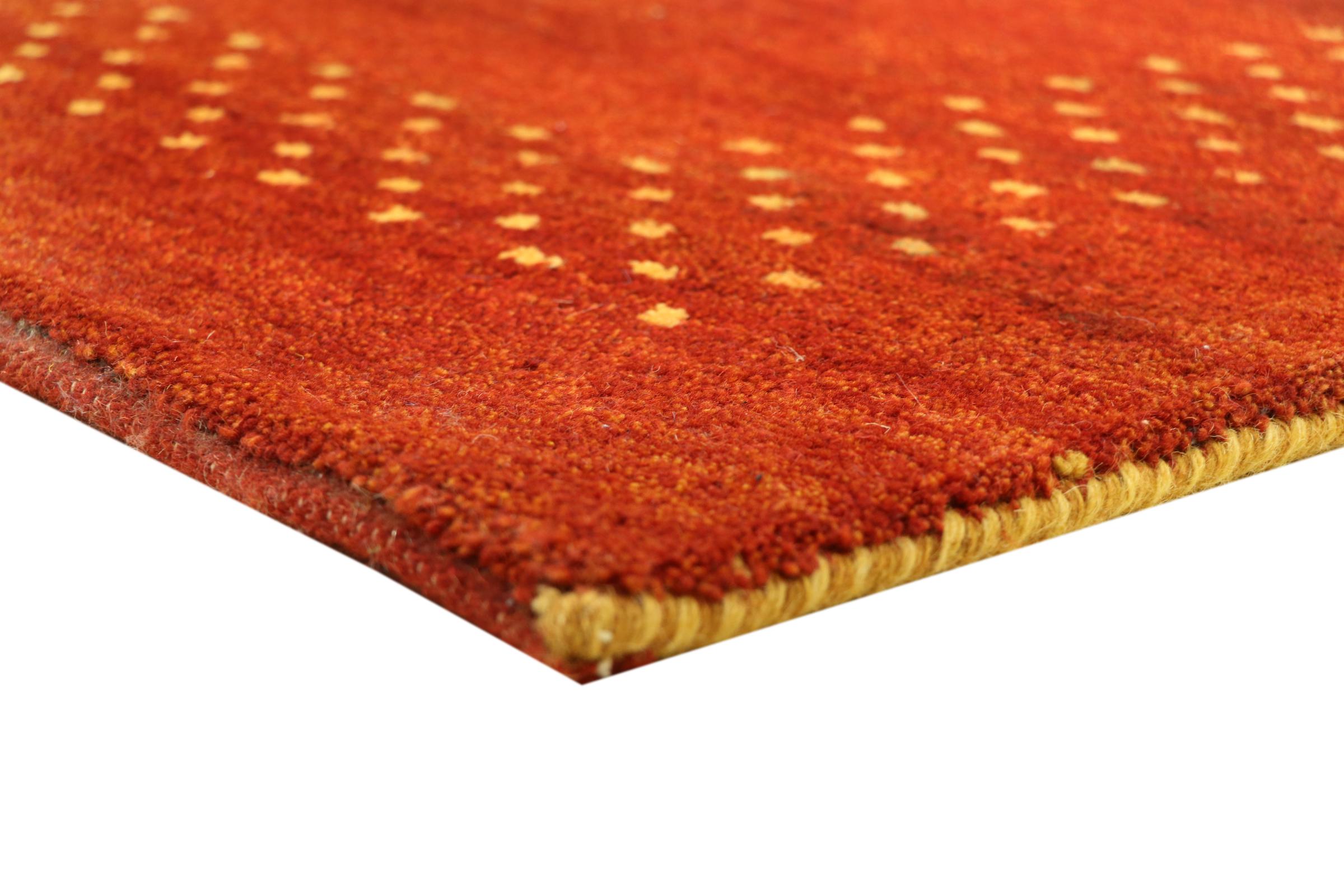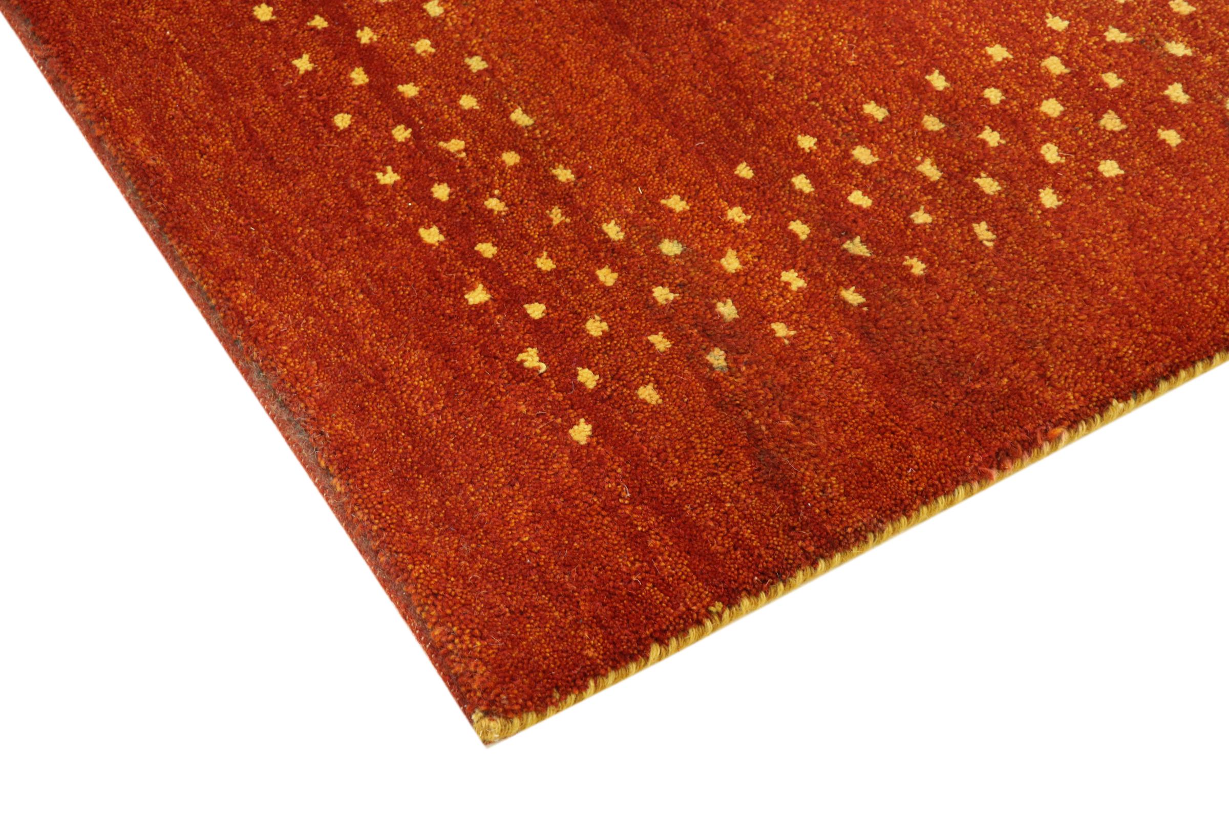 Denna vackra Gabbeh-matta var handknuten i Indien. Indiska Gabbeh-mattor är gjorda av mjuk fårull, är trevliga på fötterna och har värmeisolerande egenskaper. De flesta av deras mönster är enkla och tidlösa moderna. De inspirerades av nomadiska folk som låter mycket enkla motiv från omgivningen passera in i mattorna. Indiska Gabbeh-mattor matchar inte riktigt kvaliteten på en persisk Gabbeh, men de har ett mycket bra pris-prestanda-förhållande. Detta gör dem idealiska som en handknuten matta på entréplan.
