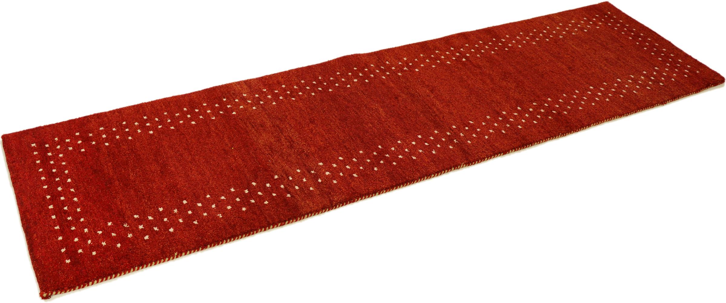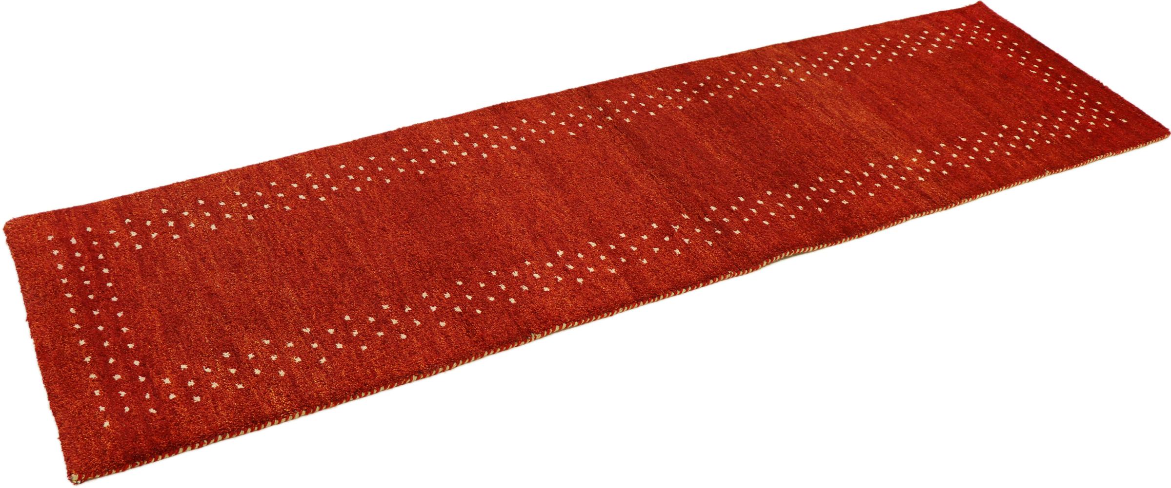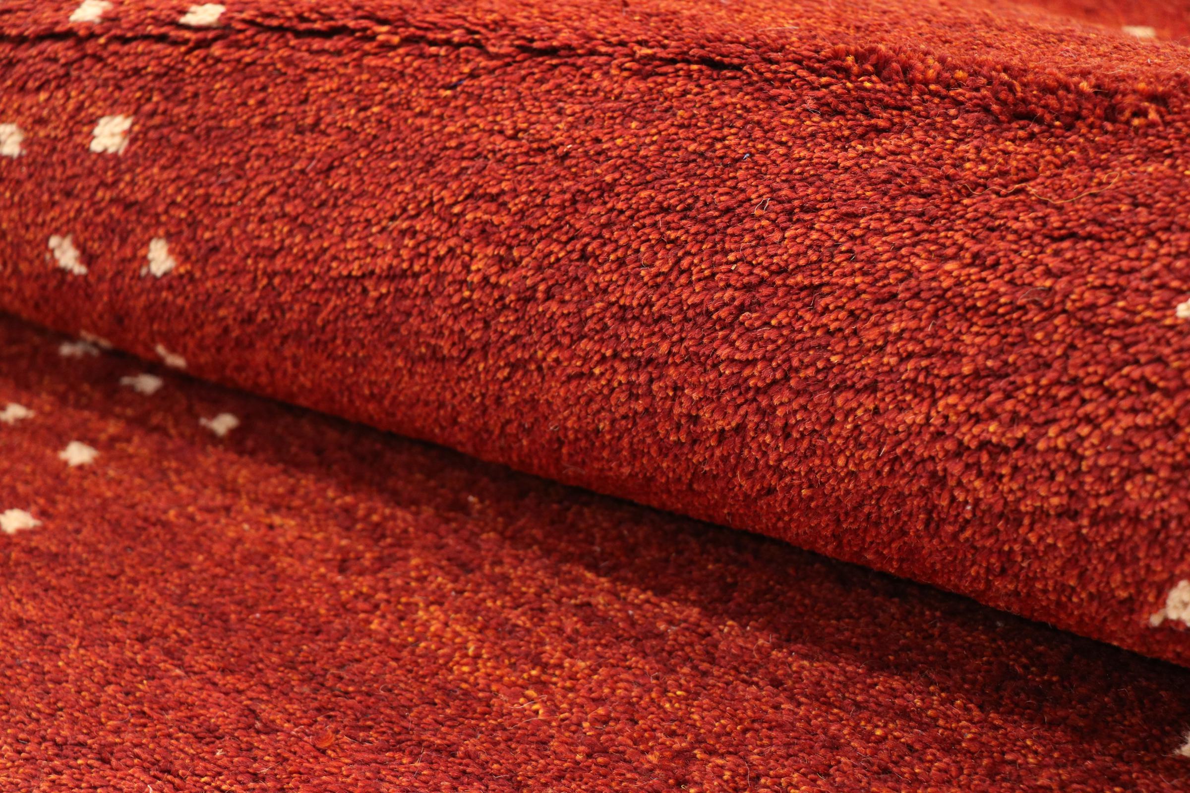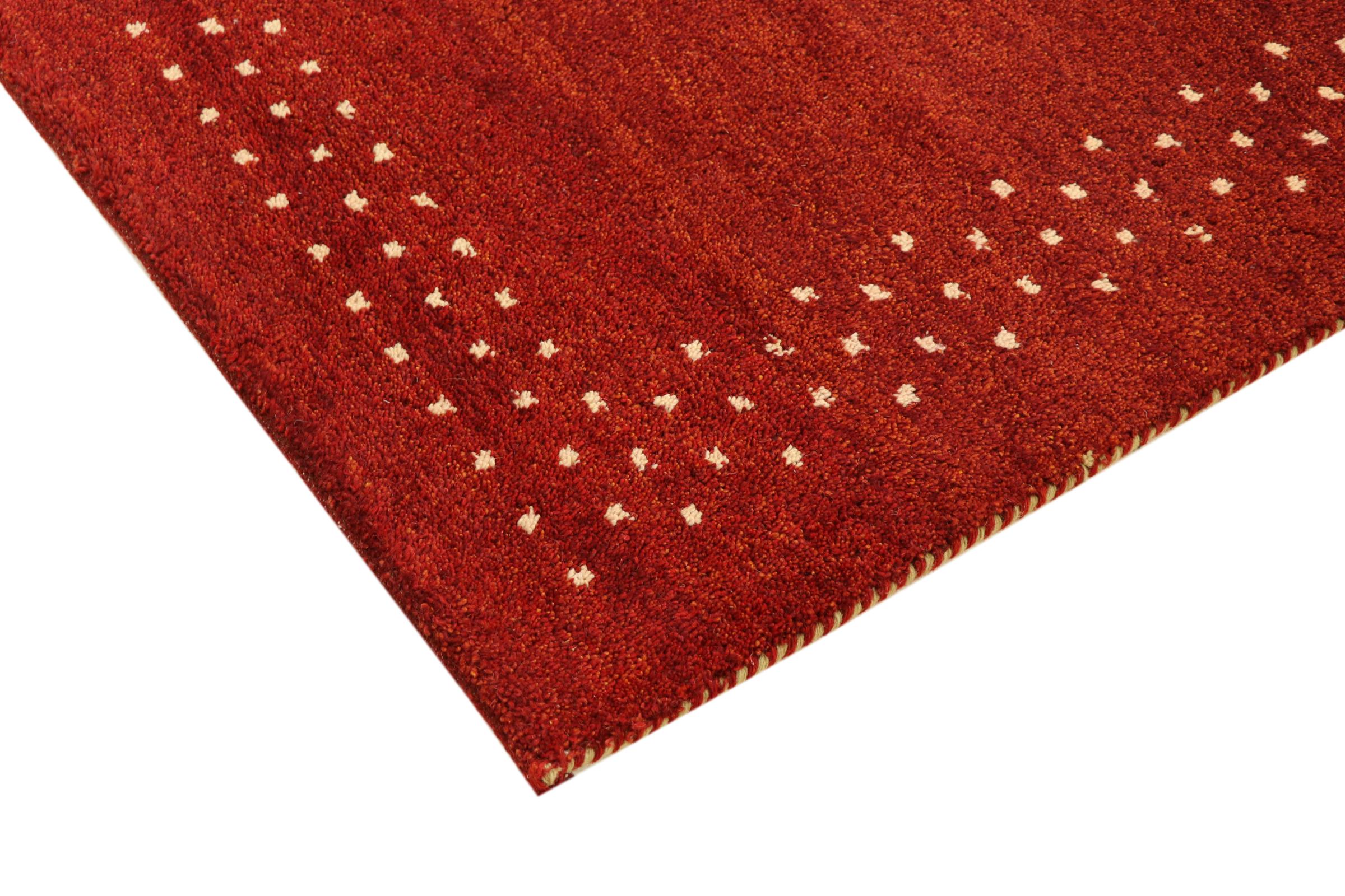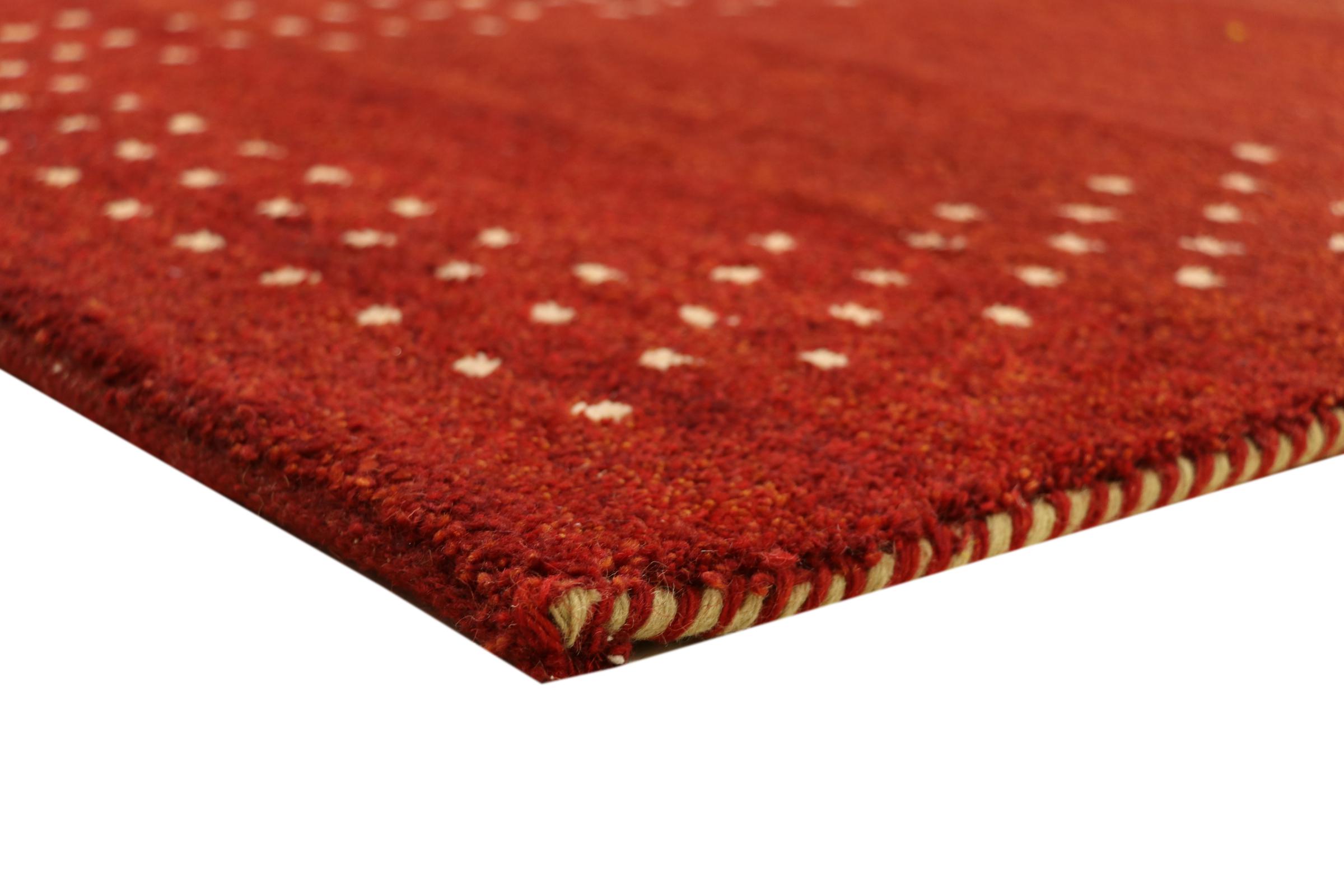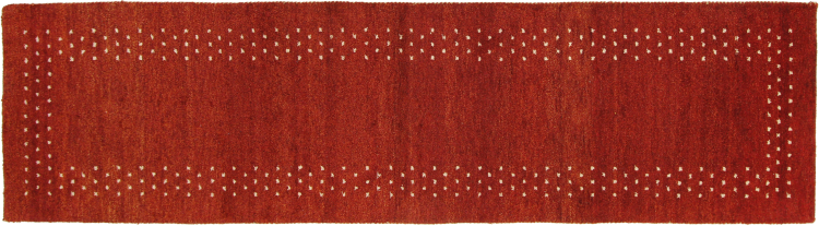 Denna vackra Gabbeh-matta var handknuten i Indien. Indiska Gabbeh-mattor är gjorda av mjuk fårull, är trevliga på fötterna och har värmeisolerande egenskaper. De flesta av deras mönster är enkla och tidlösa moderna. De inspirerades av nomadiska folk som låter mycket enkla motiv från omgivningen passera in i mattorna. Indiska Gabbeh-mattor matchar inte riktigt kvaliteten på en persisk Gabbeh, men de har ett mycket bra pris-prestanda-förhållande. Detta gör dem idealiska som en handknuten matta på entréplan.
