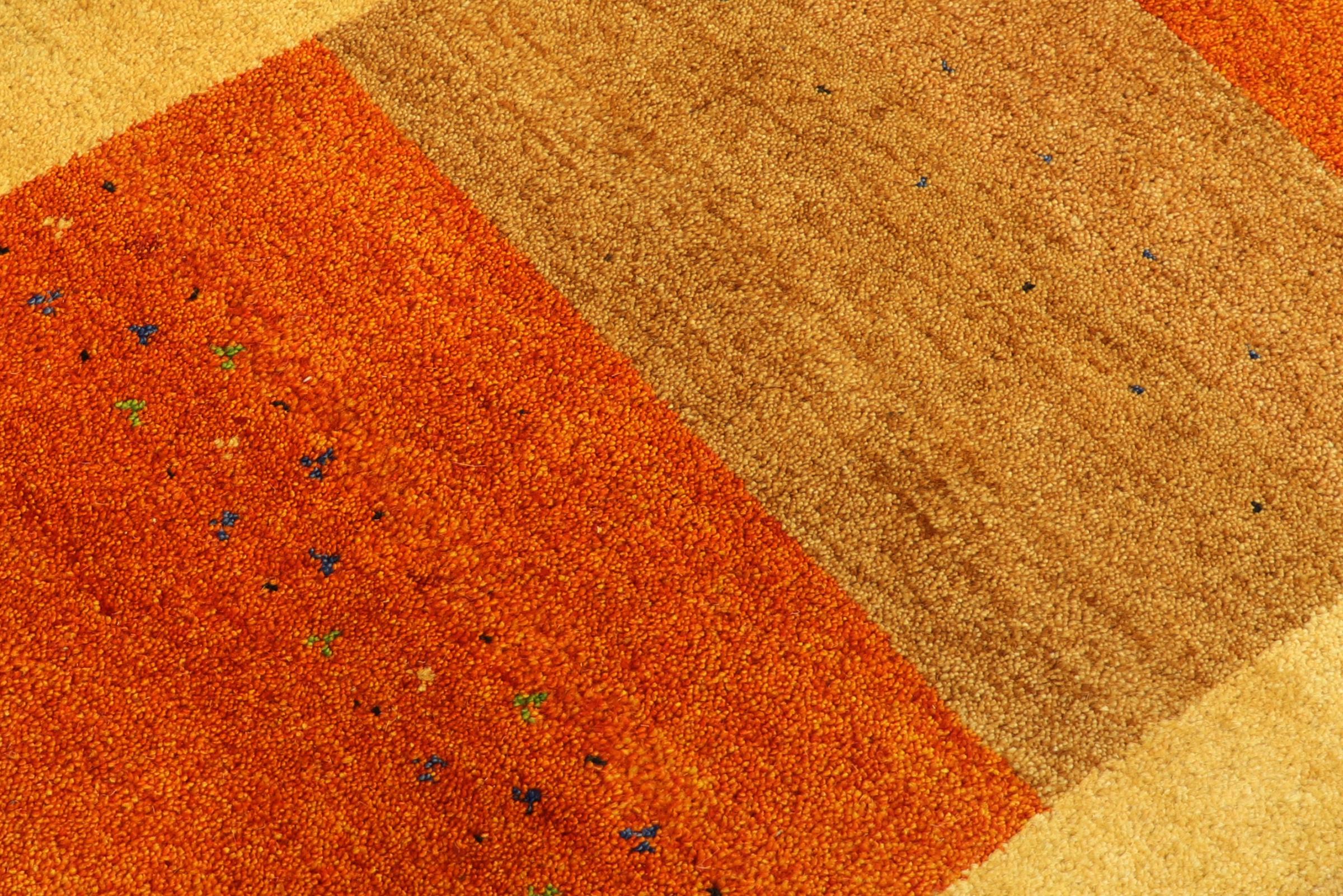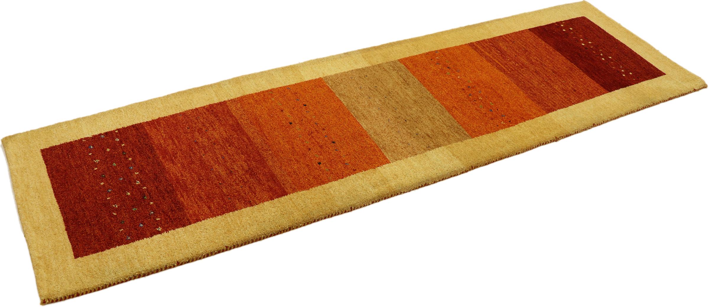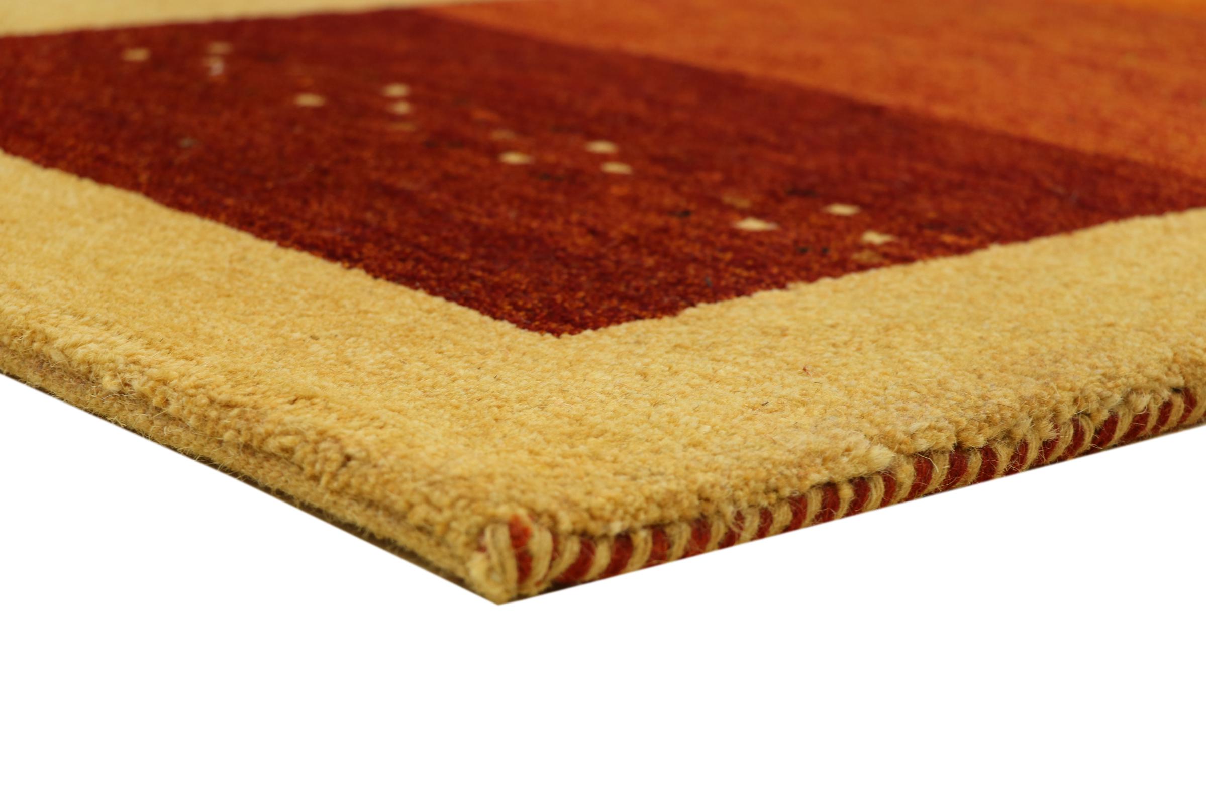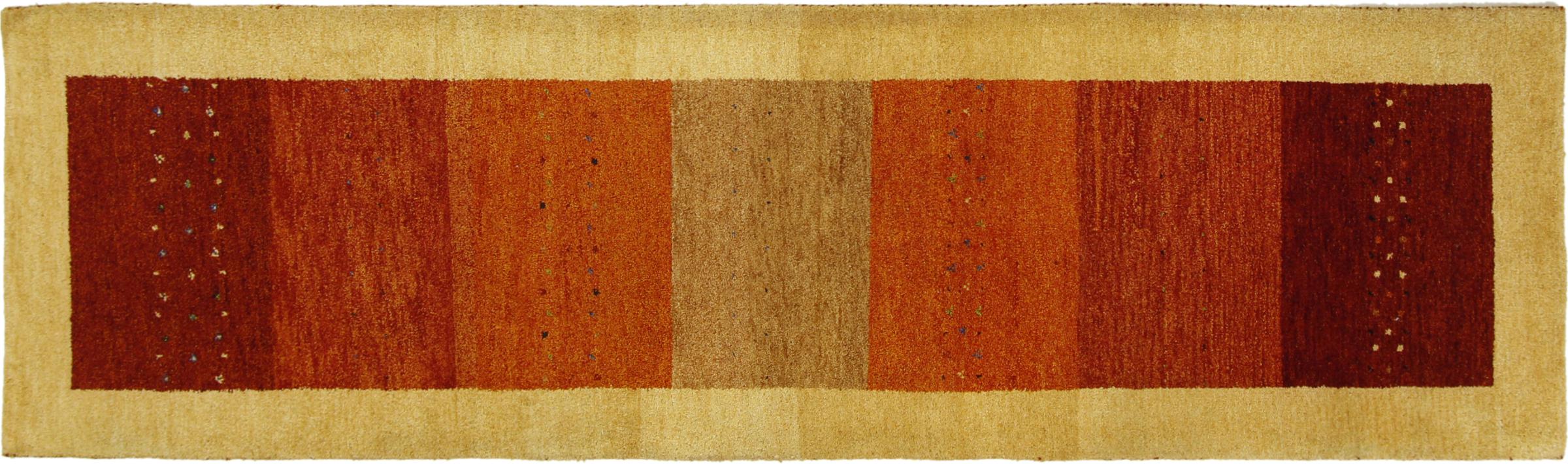 Denna vackra Gabbeh-matta var handknuten i Indien. Indiska Gabbeh-mattor är gjorda av mjuk fårull, är trevliga på fötterna och har värmeisolerande egenskaper. De flesta av deras mönster är enkla och tidlösa moderna. De inspirerades av nomadiska folk som låter mycket enkla motiv från omgivningen passera in i mattorna. Indiska Gabbeh-mattor matchar inte riktigt kvaliteten på en persisk Gabbeh, men de har ett mycket bra pris-prestanda-förhållande. Detta gör dem idealiska som en handknuten matta på entréplan.