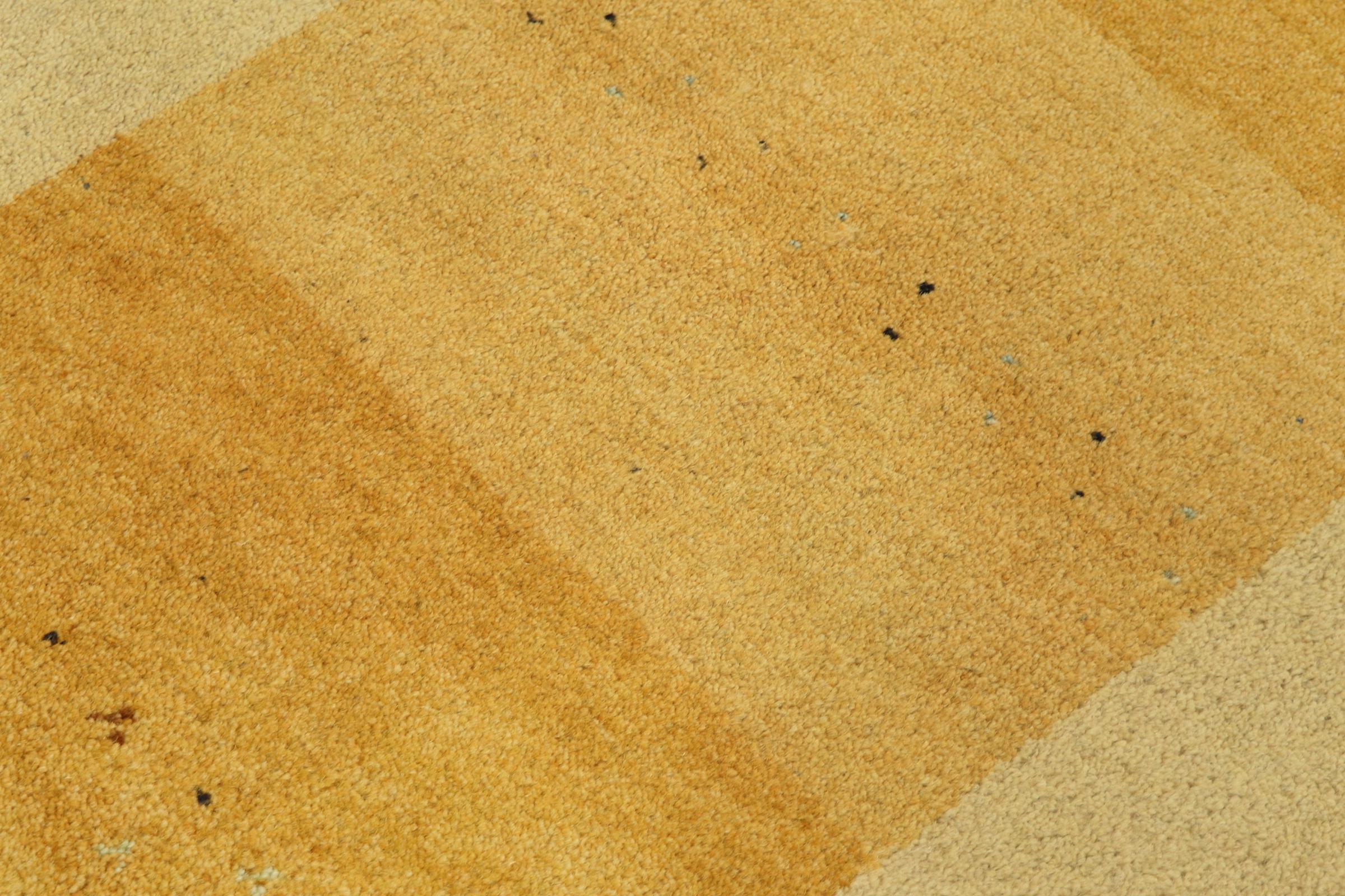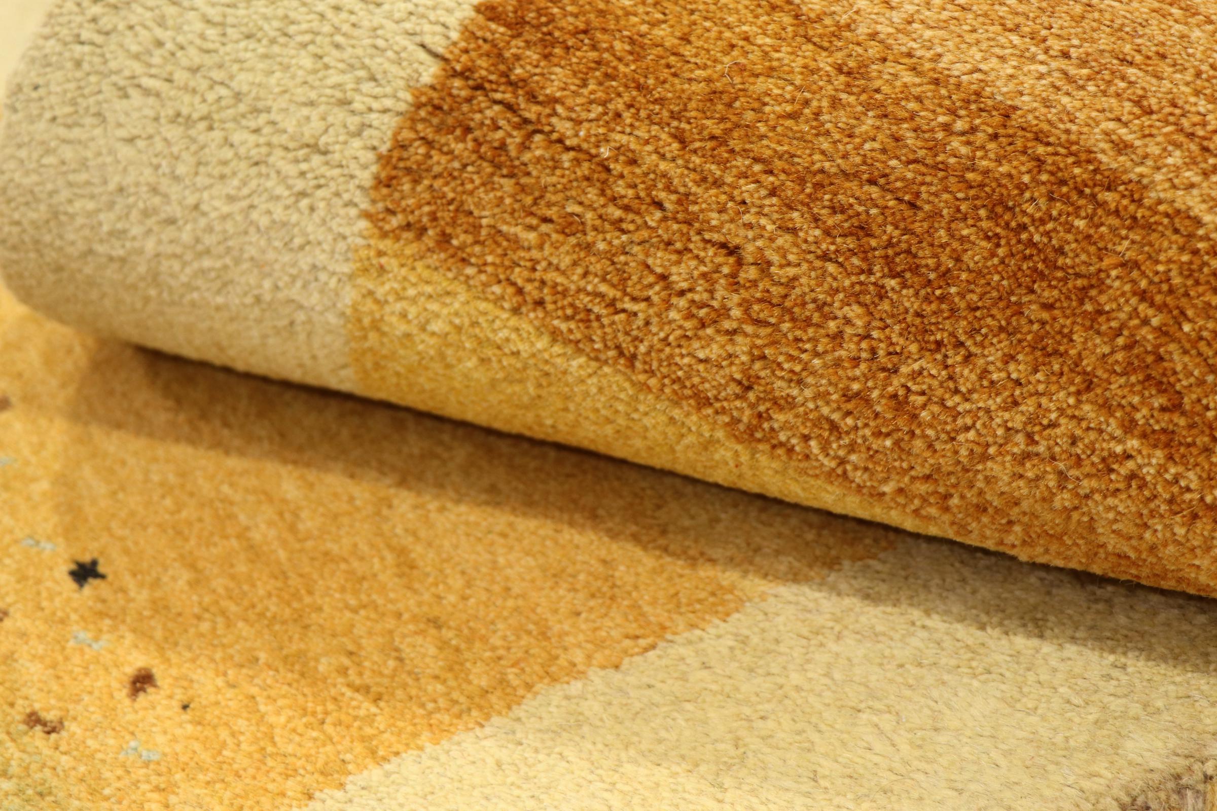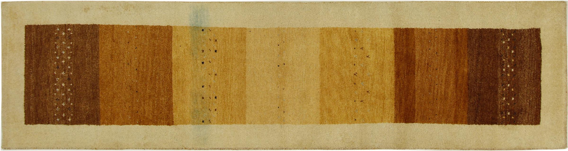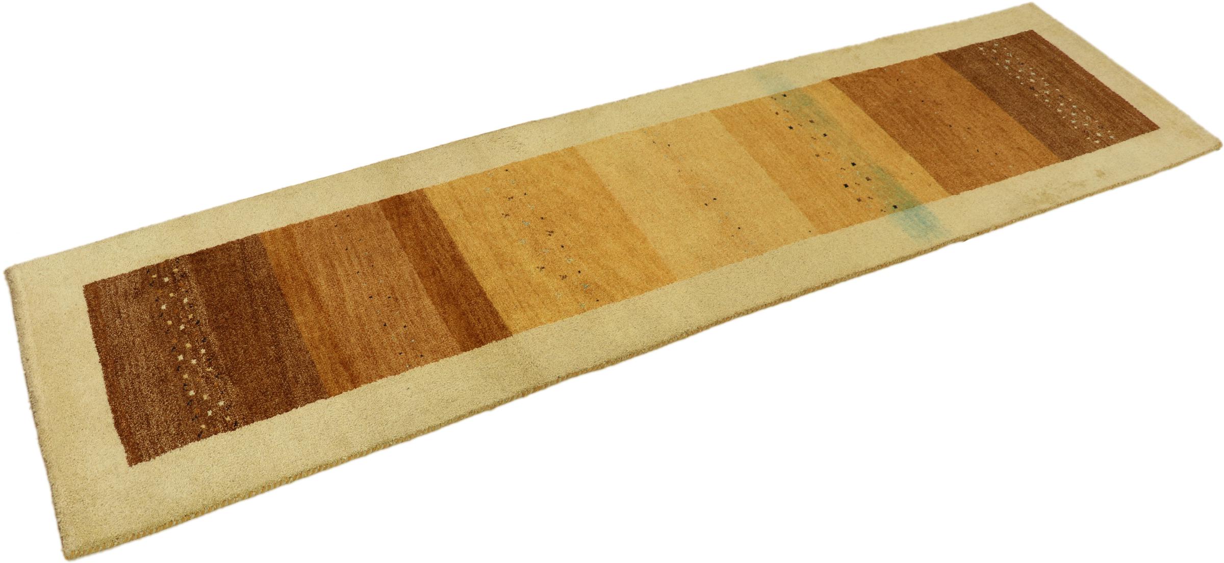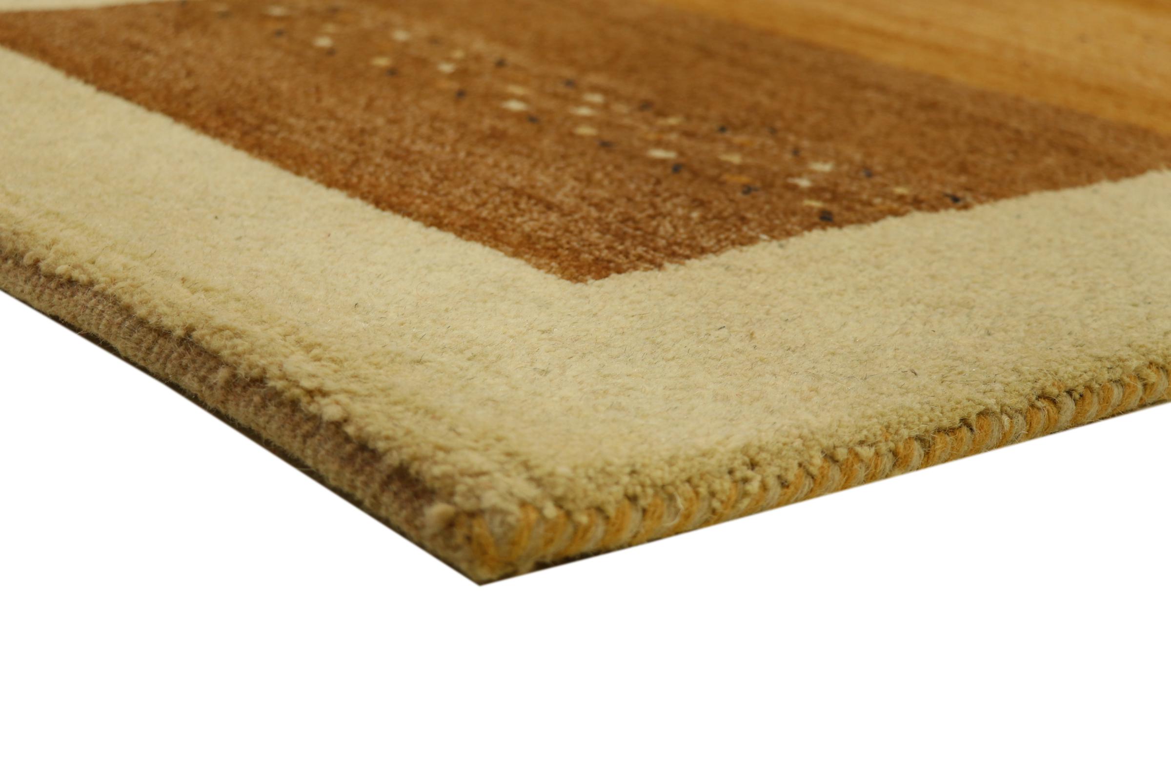 Denna vackra Gabbeh-matta var handknuten i Indien. Indiska Gabbeh-mattor är gjorda av mjuk fårull, är trevliga på fötterna och har värmeisolerande egenskaper. De flesta av deras mönster är enkla och tidlösa moderna. De inspirerades av nomadiska folk som låter mycket enkla motiv från omgivningen passera in i mattorna. Indiska Gabbeh-mattor matchar inte riktigt kvaliteten på en persisk Gabbeh, men de har ett mycket bra pris-prestanda-förhållande. Detta gör dem idealiska som en handknuten matta på entréplan.