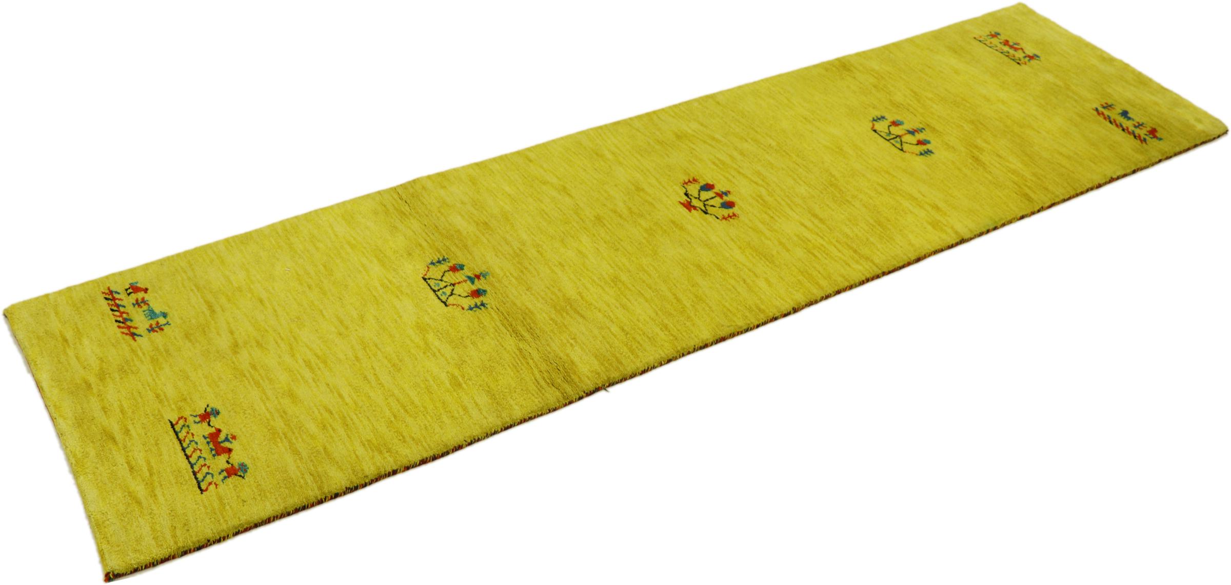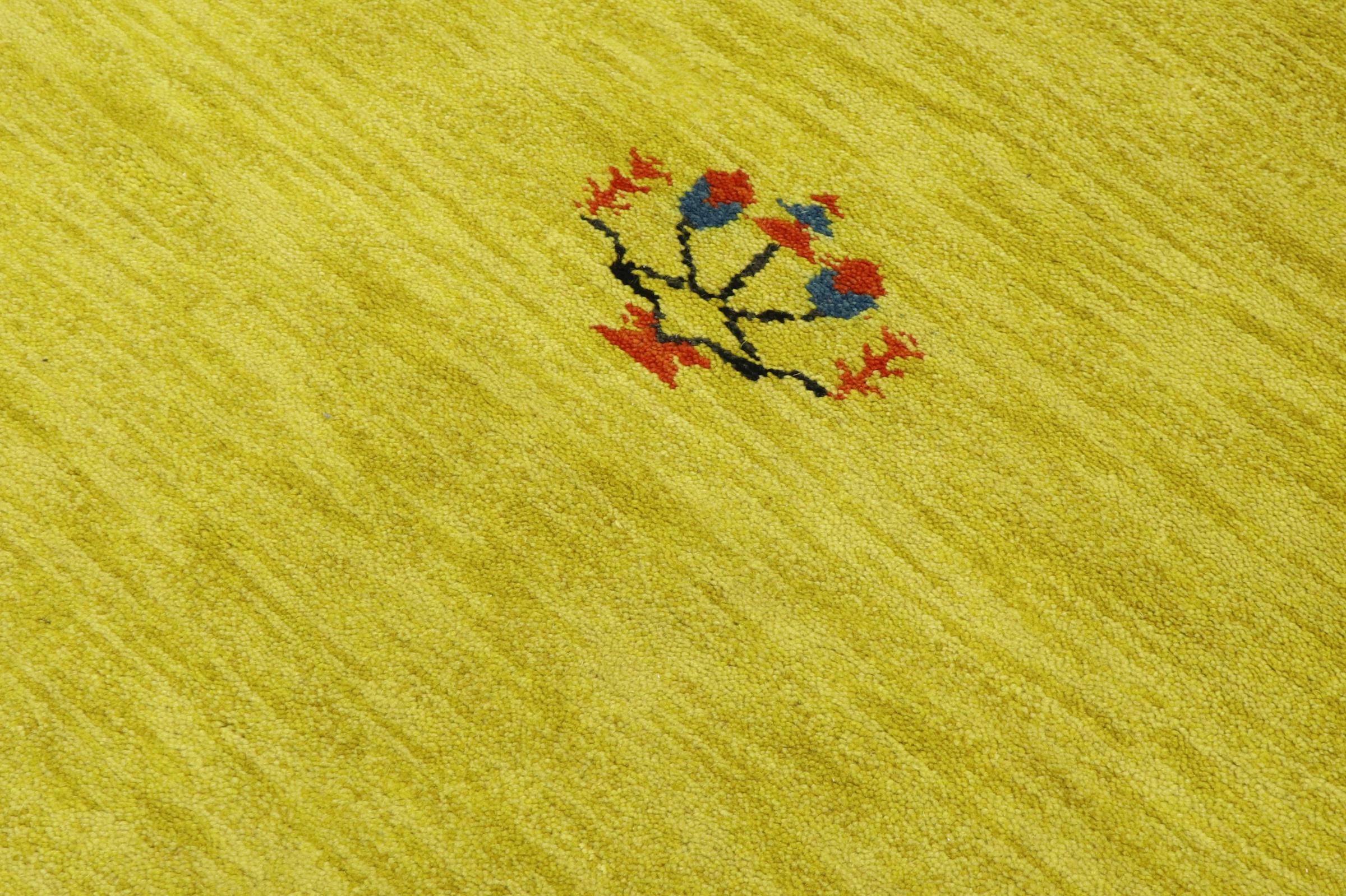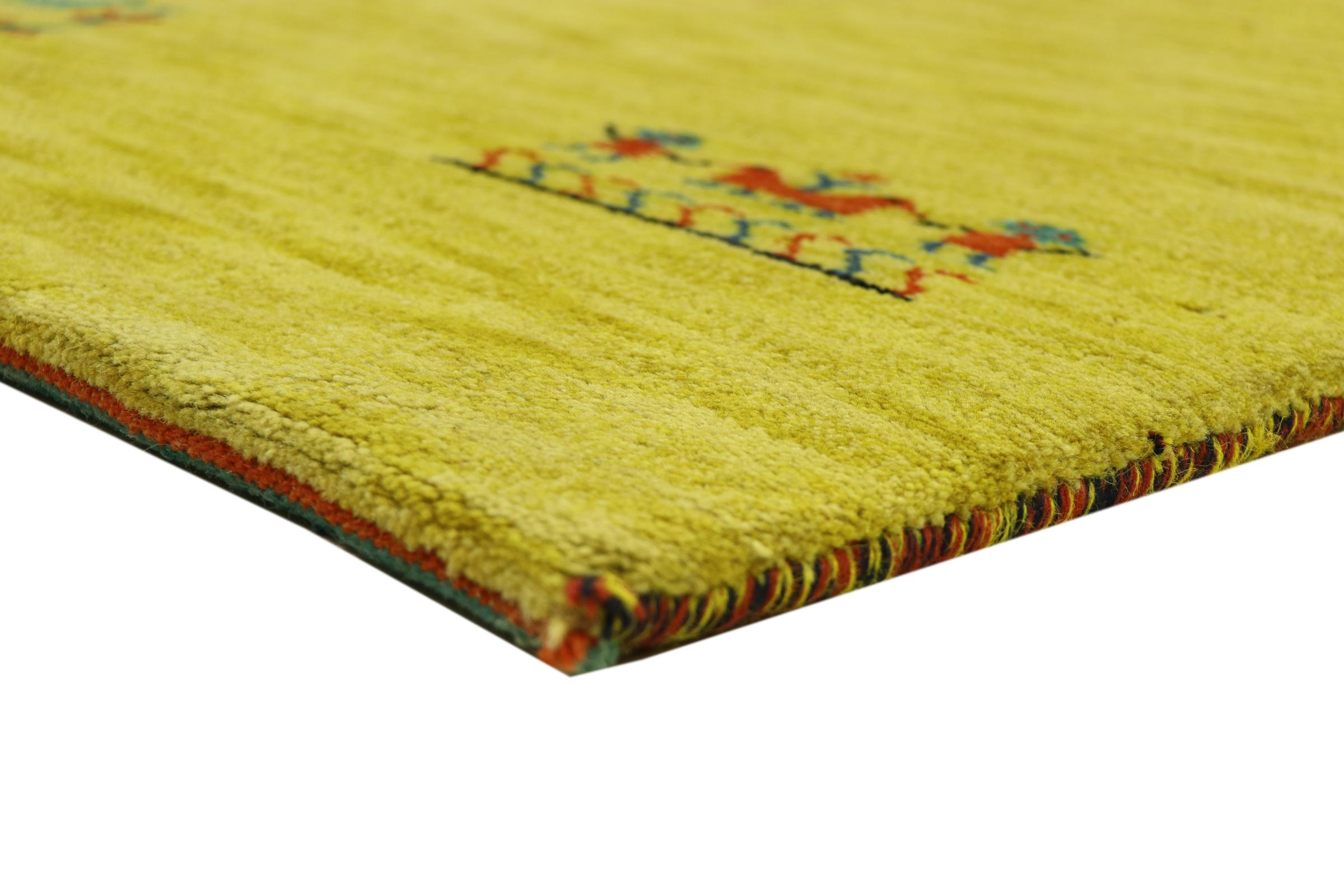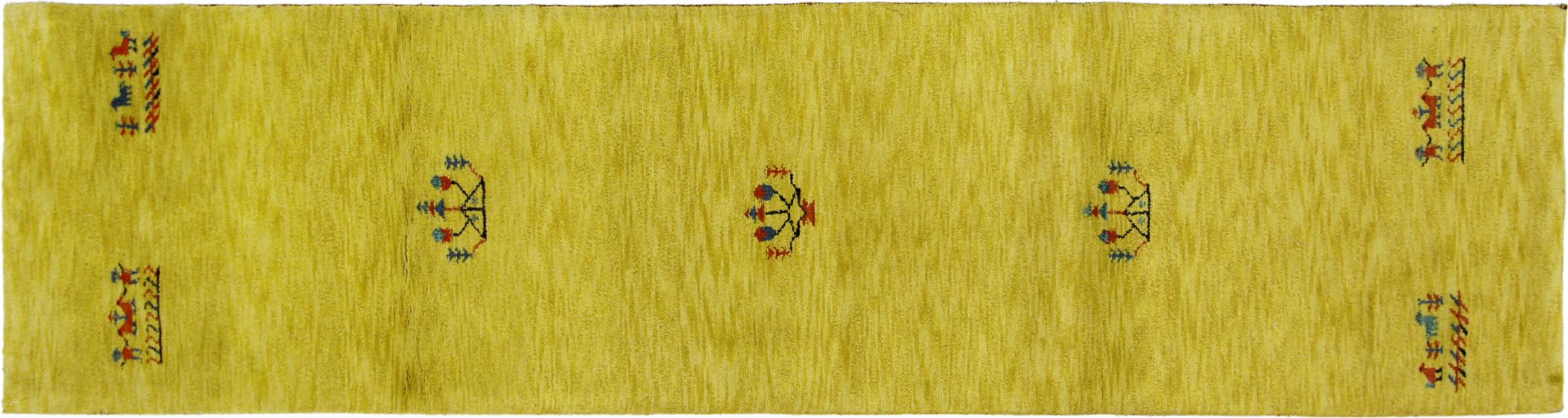 Denna vackra Gabbeh-matta var handknuten i Indien. Indiska Gabbeh-mattor är gjorda av mjuk fårull, är trevliga på fötterna och har värmeisolerande egenskaper. De flesta av deras mönster är enkla och tidlösa moderna. De inspirerades av nomadiska folk som låter mycket enkla motiv från omgivningen passera in i mattorna. Indiska Gabbeh-mattor matchar inte riktigt kvaliteten på en persisk Gabbeh, men de har ett mycket bra pris-prestanda-förhållande. Detta gör dem idealiska som en handknuten matta på entréplan.