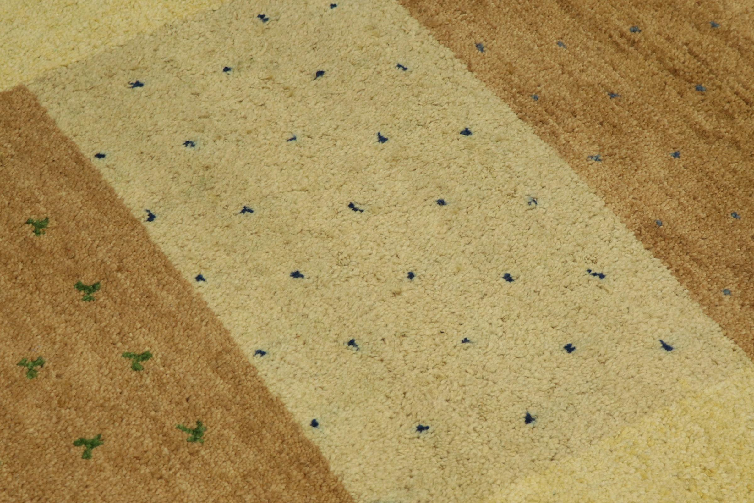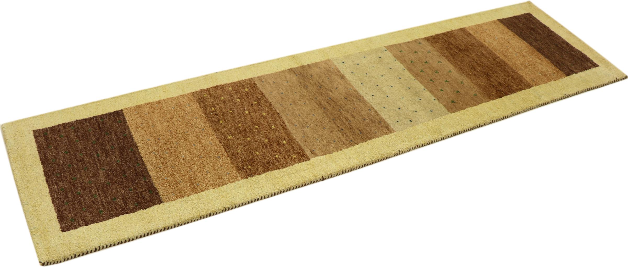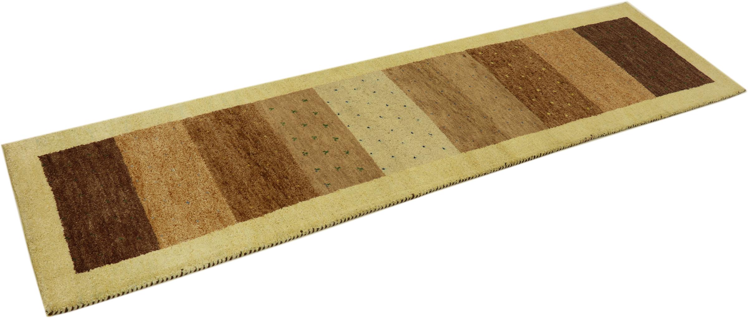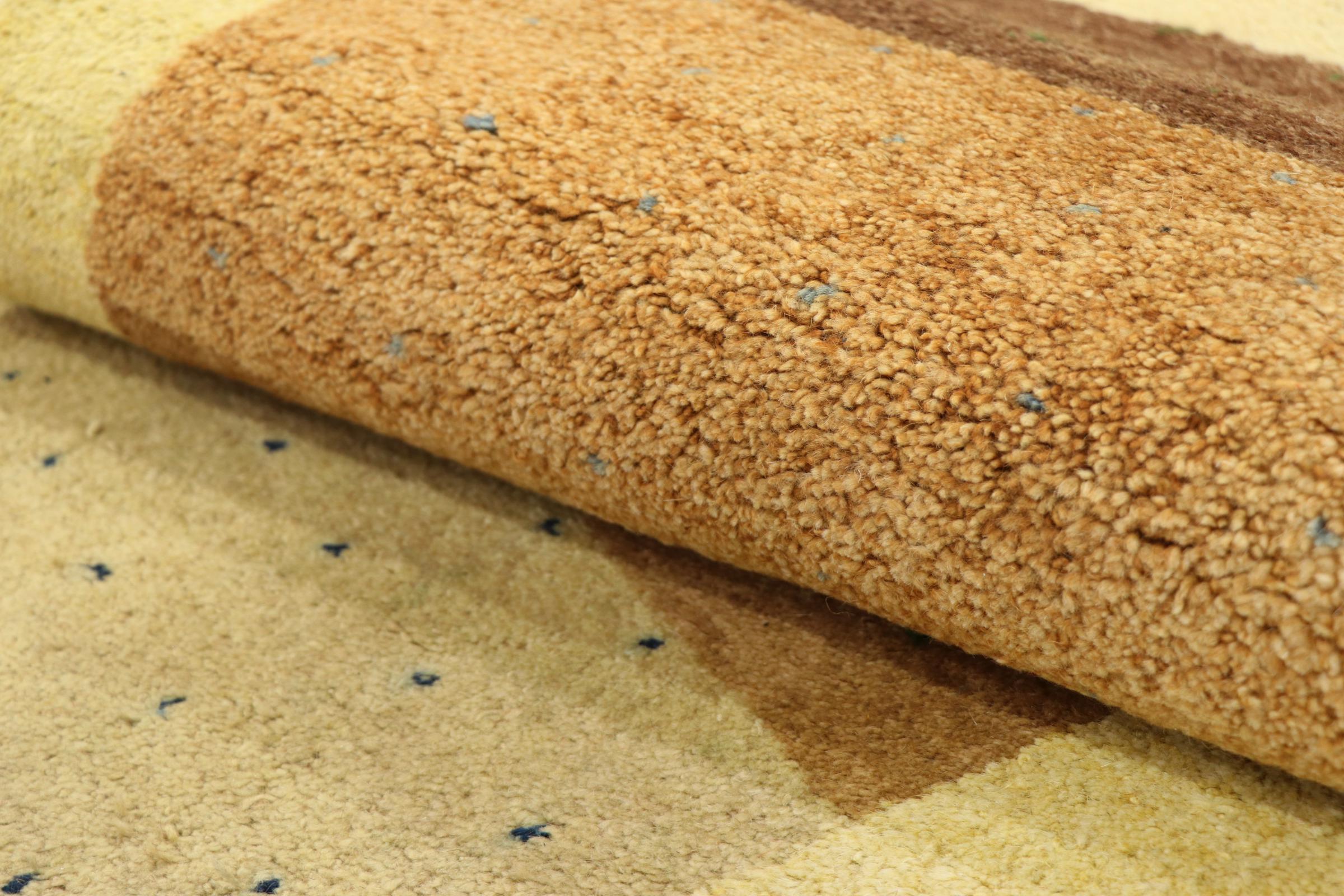 Denna vackra Gabbeh-matta var handknuten i Indien. Indiska Gabbeh-mattor är gjorda av mjuk fårull, är trevliga på fötterna och har värmeisolerande egenskaper. De flesta av deras mönster är enkla och tidlösa moderna. De inspirerades av nomadiska folk som låter mycket enkla motiv från omgivningen passera in i mattorna. Indiska Gabbeh-mattor matchar inte riktigt kvaliteten på en persisk Gabbeh, men de har ett mycket bra pris-prestanda-förhållande. Detta gör dem idealiska som en handknuten matta på entréplan.
