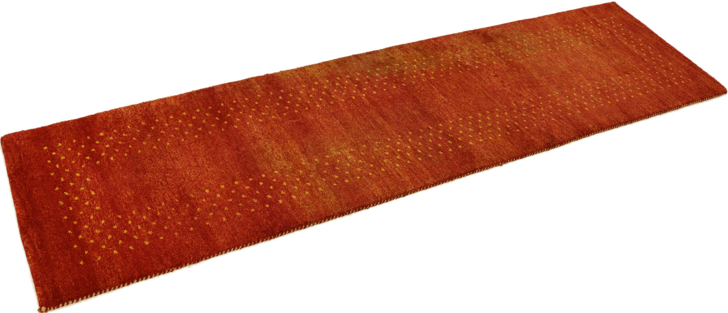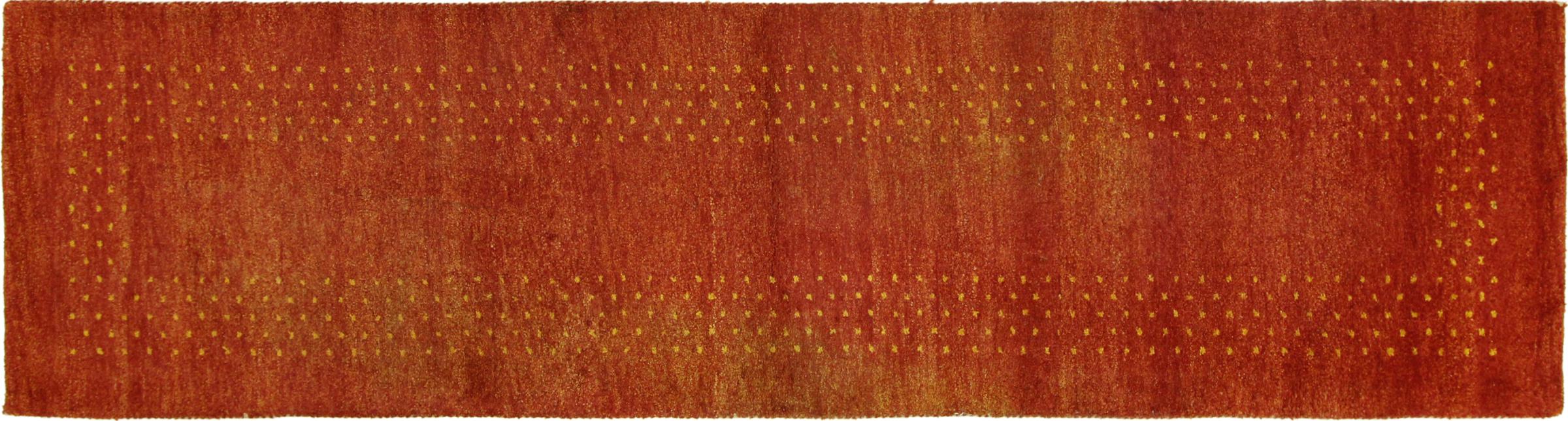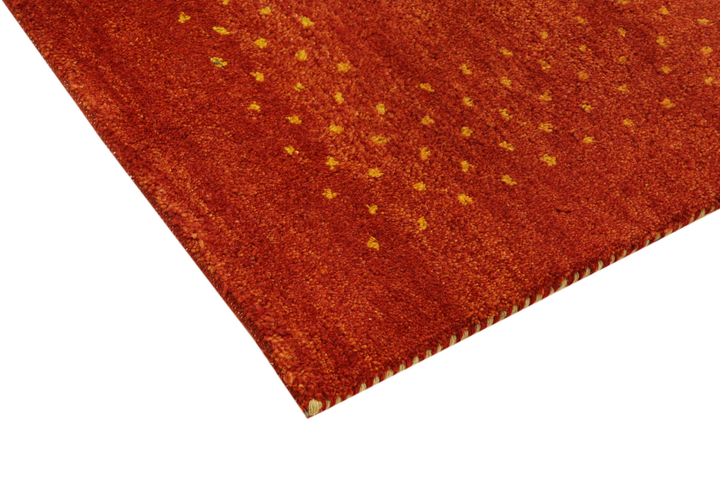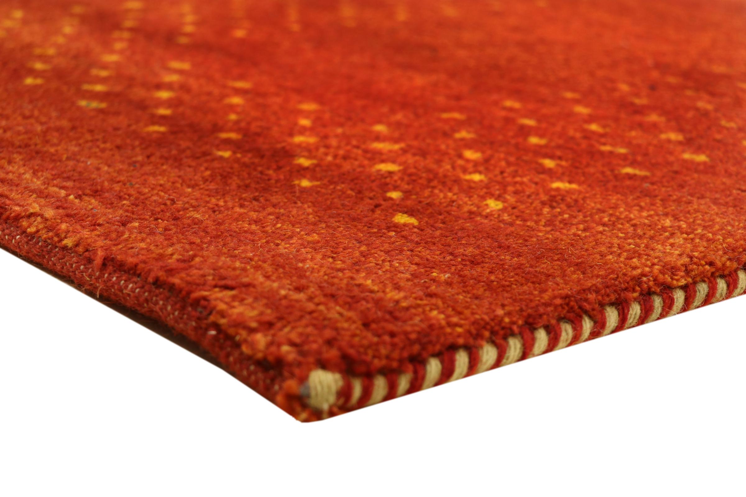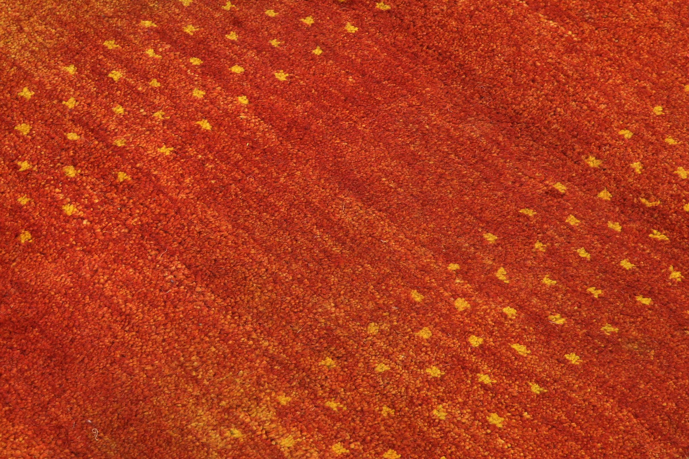 Denna vackra Gabbeh-matta var handknuten i Indien. Indiska Gabbeh-mattor är gjorda av mjuk fårull, är trevliga på fötterna och har värmeisolerande egenskaper. De flesta av deras mönster är enkla och tidlösa moderna. De inspirerades av nomadiska folk som låter mycket enkla motiv från omgivningen passera in i mattorna. Indiska Gabbeh-mattor matchar inte riktigt kvaliteten på en persisk Gabbeh, men de har ett mycket bra pris-prestanda-förhållande. Detta gör dem idealiska som en handknuten matta på entréplan.
