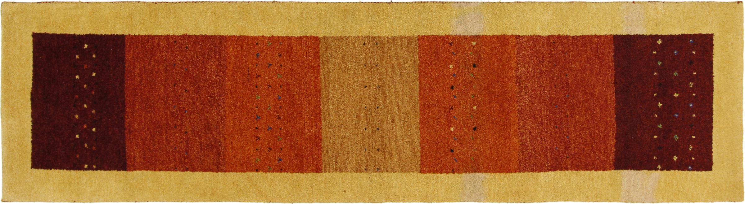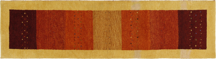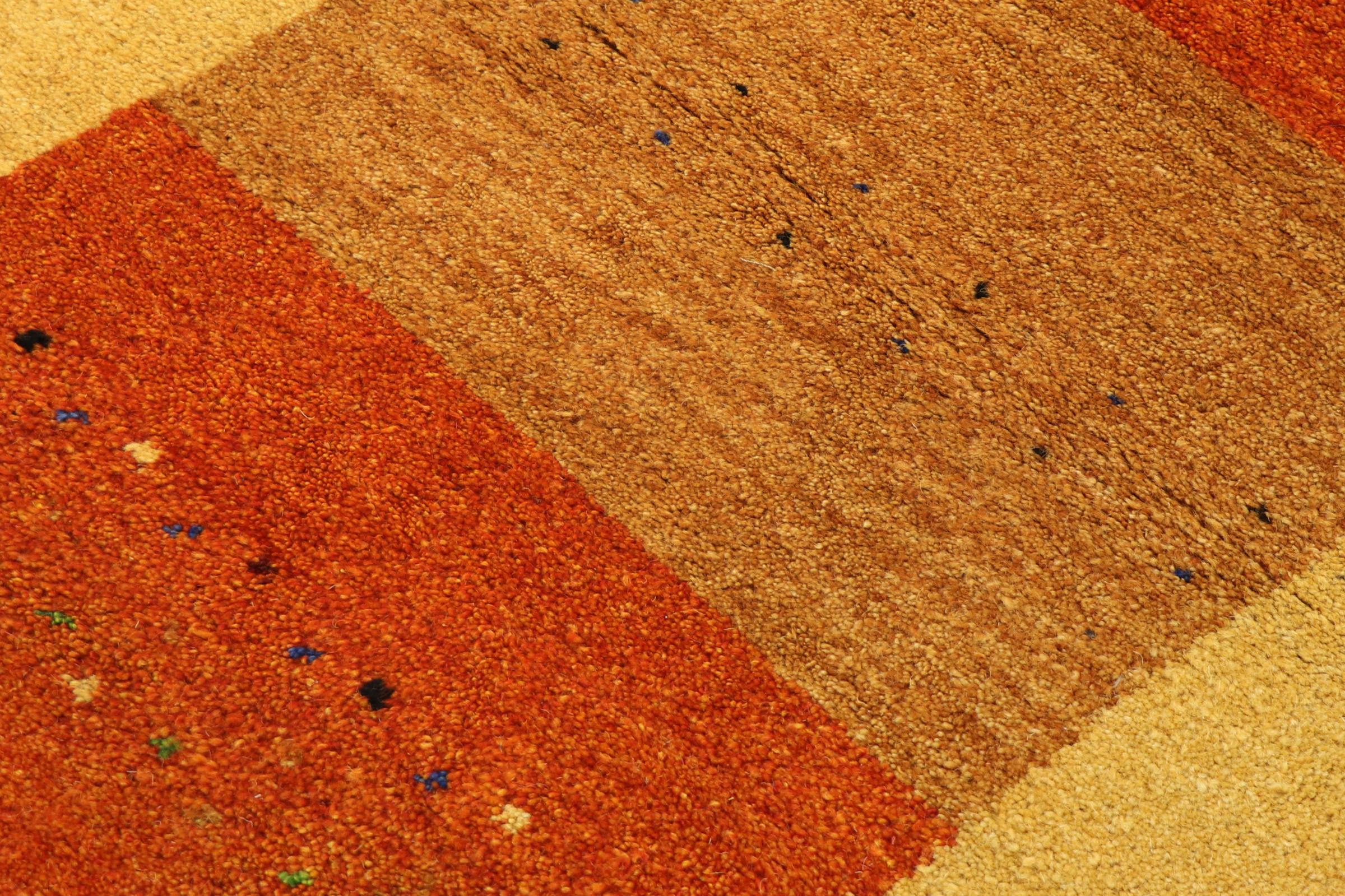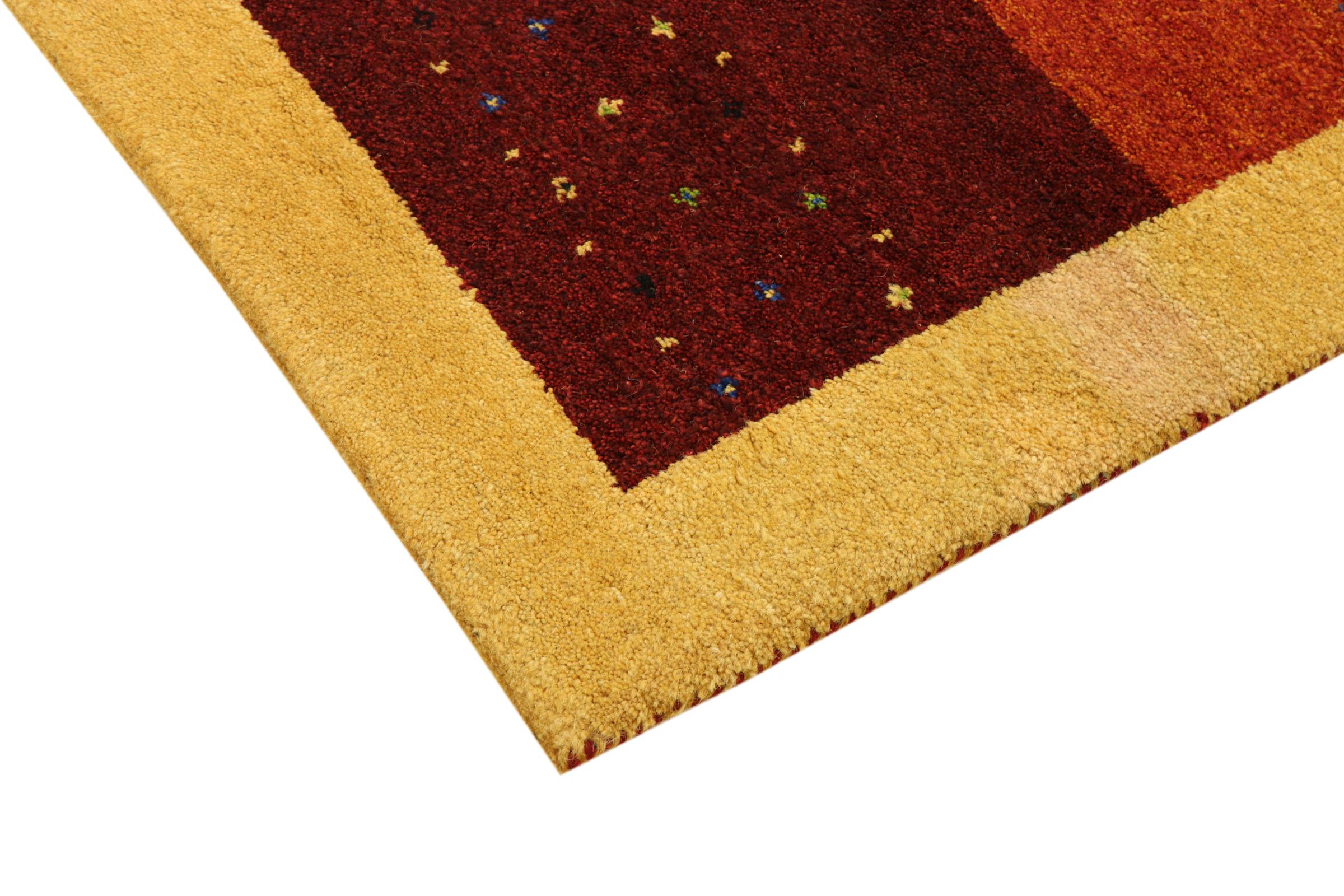 Denna vackra Gabbeh-matta var handknuten i Indien. Indiska Gabbeh-mattor är gjorda av mjuk fårull, är trevliga på fötterna och har värmeisolerande egenskaper. De flesta av deras mönster är enkla och tidlösa moderna. De inspirerades av nomadiska folk som låter mycket enkla motiv från omgivningen passera in i mattorna. Indiska Gabbeh-mattor matchar inte riktigt kvaliteten på en persisk Gabbeh, men de har ett mycket bra pris-prestanda-förhållande. Detta gör dem idealiska som en handknuten matta på entréplan.