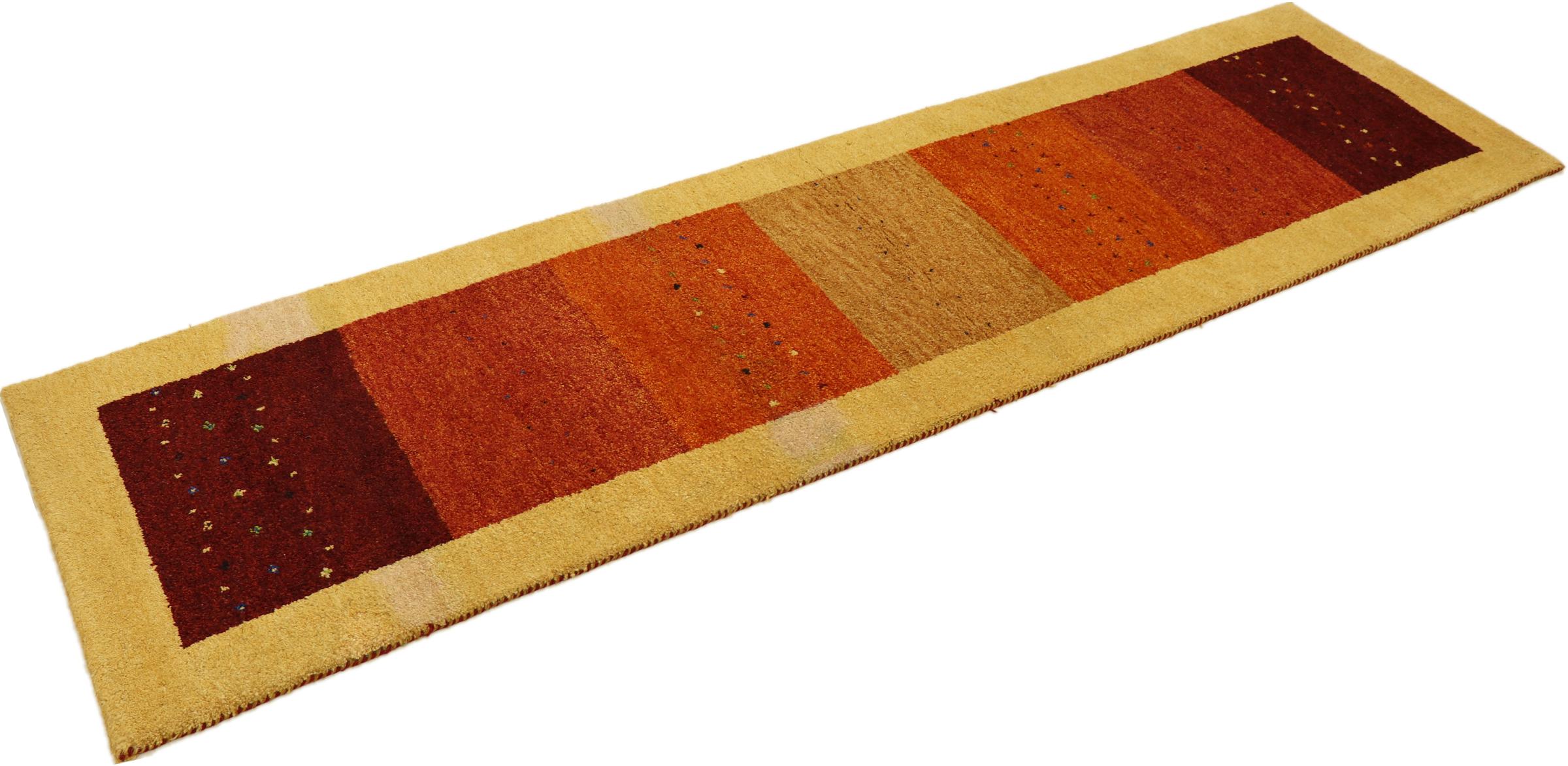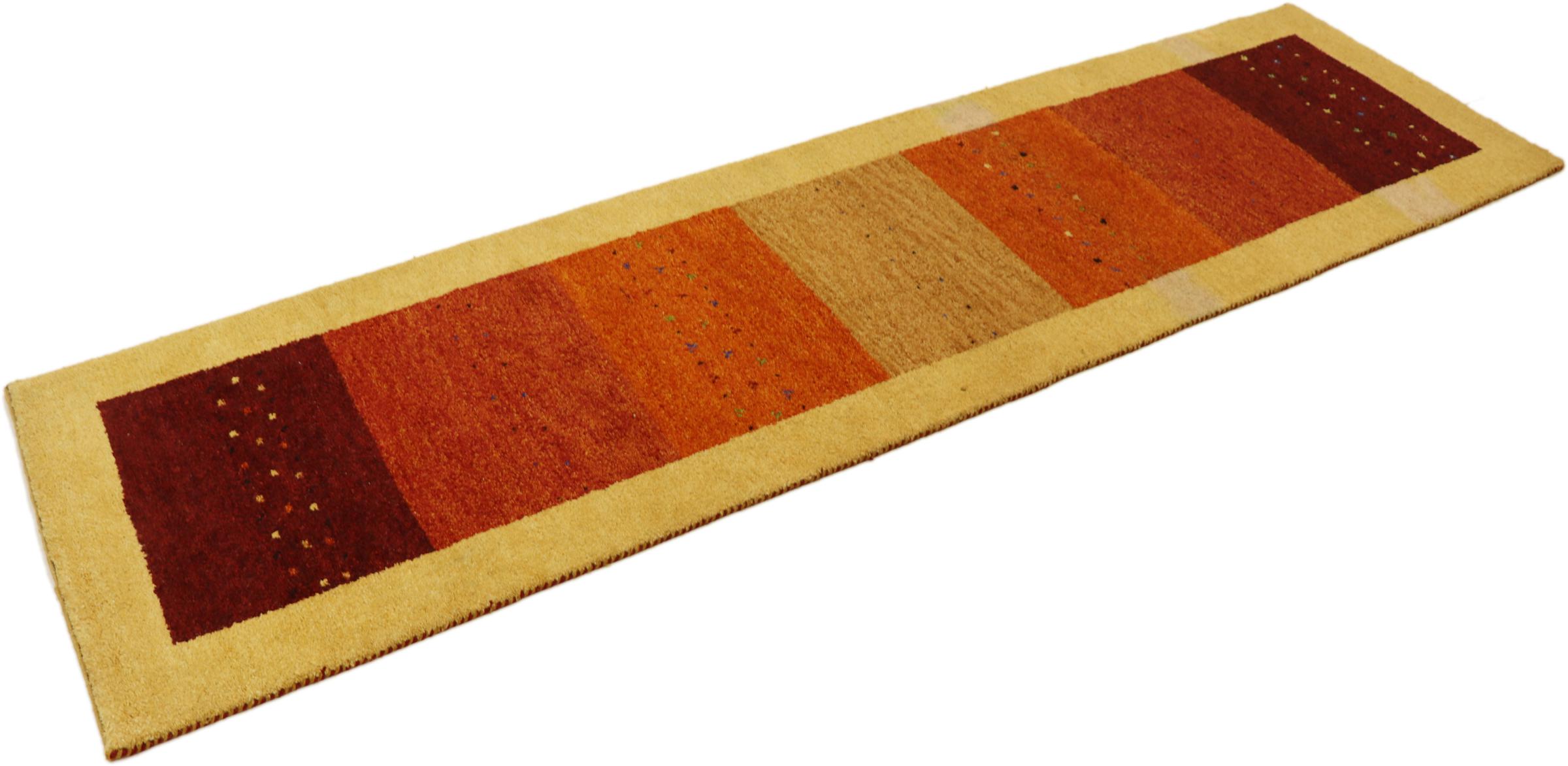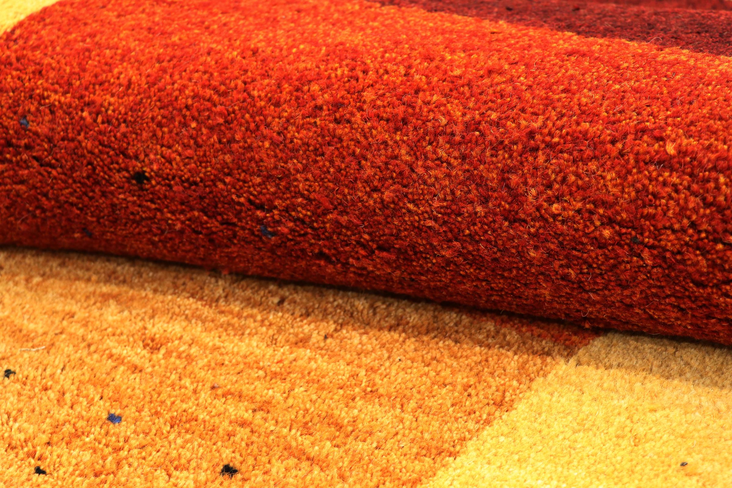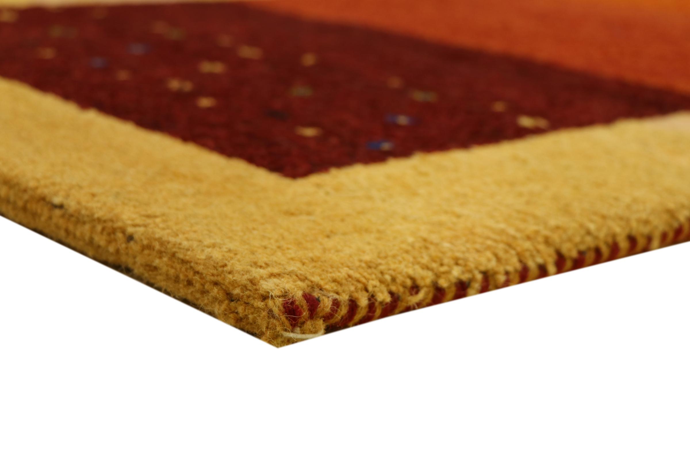 Denna vackra Gabbeh-matta var handknuten i Indien. Indiska Gabbeh-mattor är gjorda av mjuk fårull, är trevliga på fötterna och har värmeisolerande egenskaper. De flesta av deras mönster är enkla och tidlösa moderna. De inspirerades av nomadiska folk som låter mycket enkla motiv från omgivningen passera in i mattorna. Indiska Gabbeh-mattor matchar inte riktigt kvaliteten på en persisk Gabbeh, men de har ett mycket bra pris-prestanda-förhållande. Detta gör dem idealiska som en handknuten matta på entréplan.