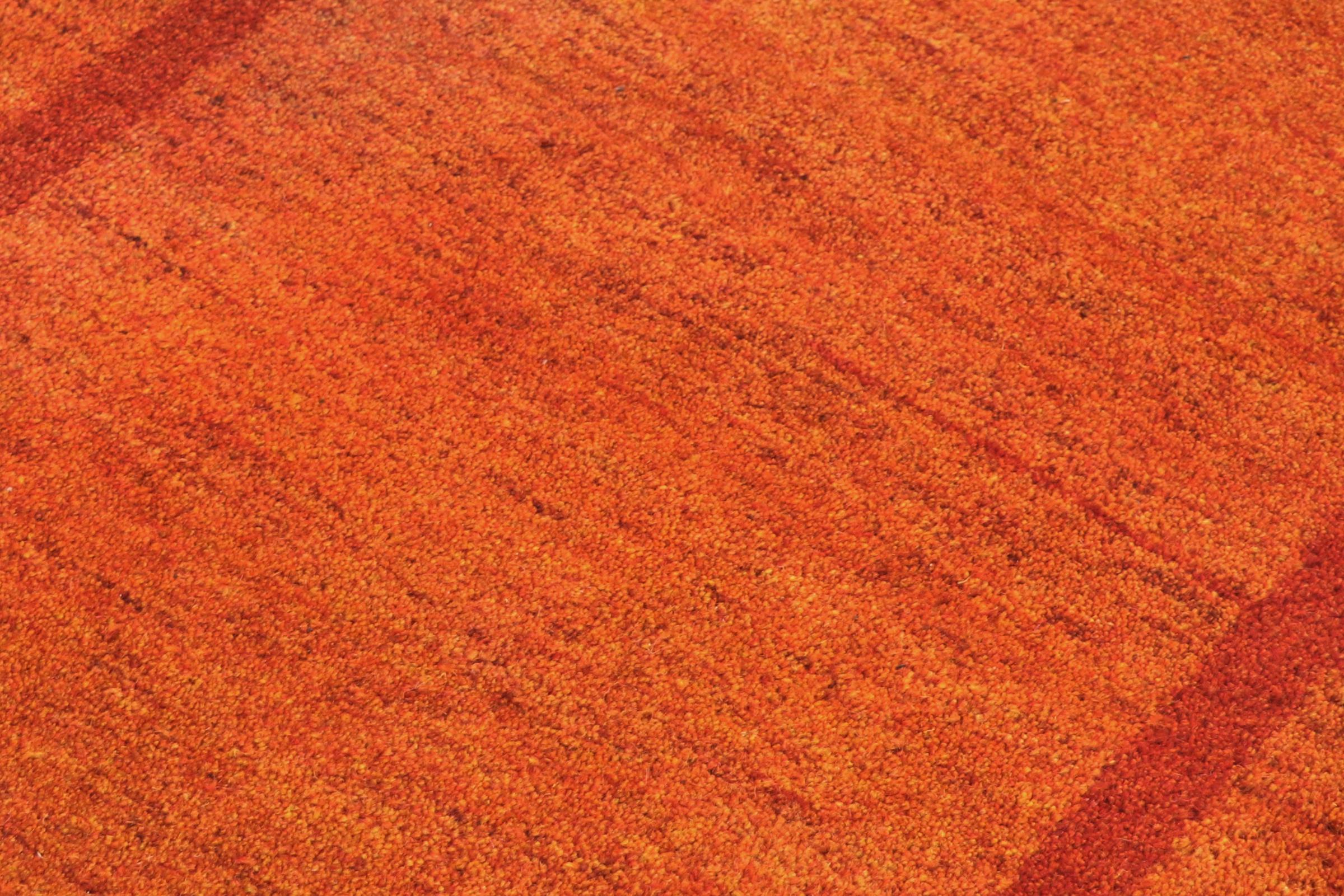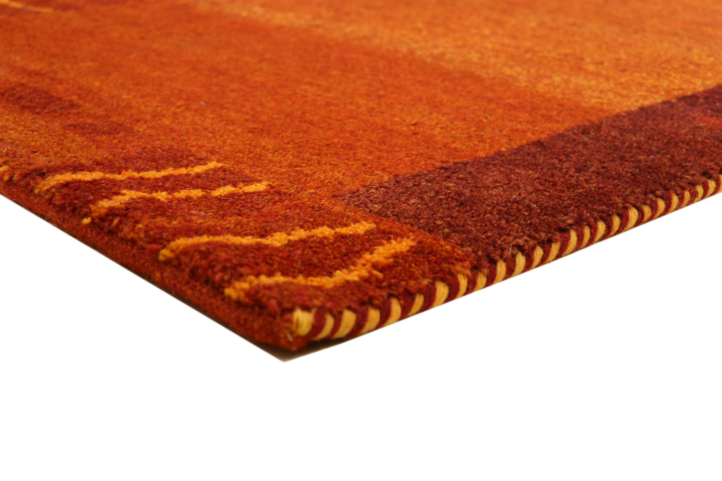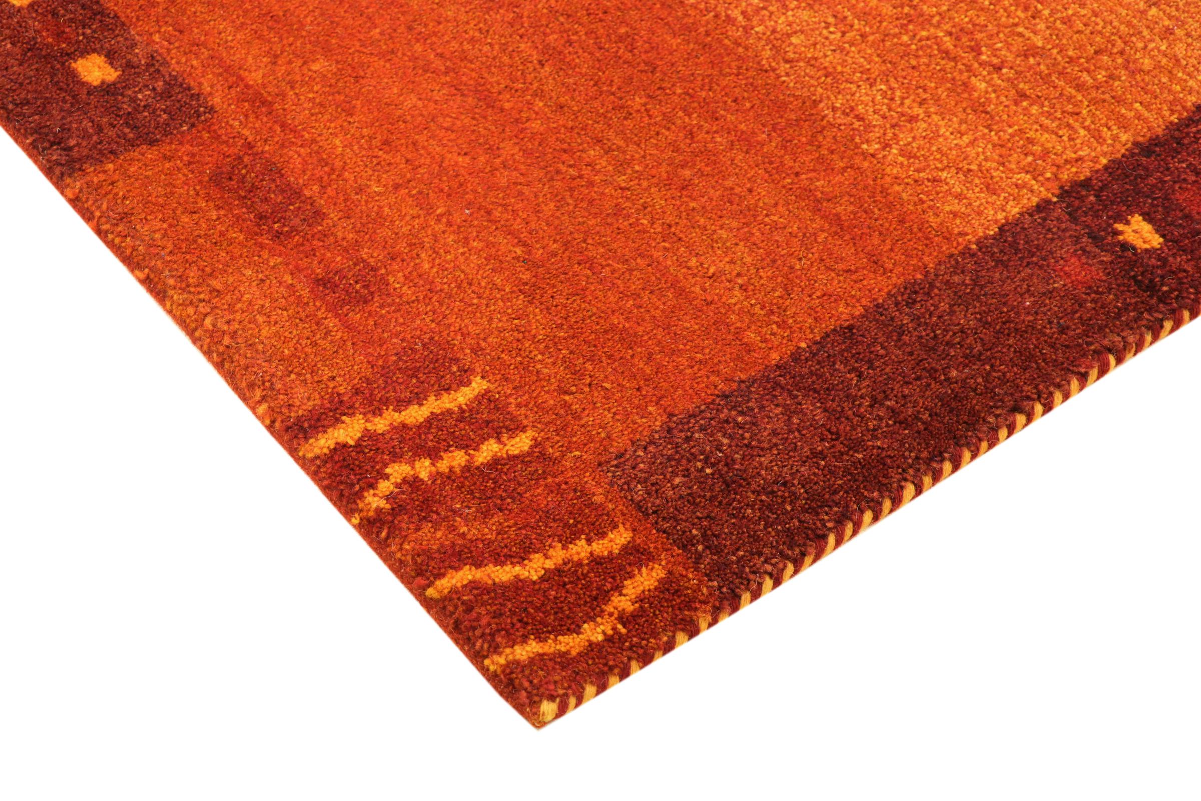 Denna vackra Gabbeh-matta var handknuten i Indien. Indiska Gabbeh-mattor är gjorda av mjuk fårull, är trevliga på fötterna och har värmeisolerande egenskaper. De flesta av deras mönster är enkla och tidlösa moderna. De inspirerades av nomadiska folk som låter mycket enkla motiv från omgivningen passera in i mattorna. Indiska Gabbeh-mattor matchar inte riktigt kvaliteten på en persisk Gabbeh, men de har ett mycket bra pris-prestanda-förhållande. Detta gör dem idealiska som en handknuten matta på entréplan.