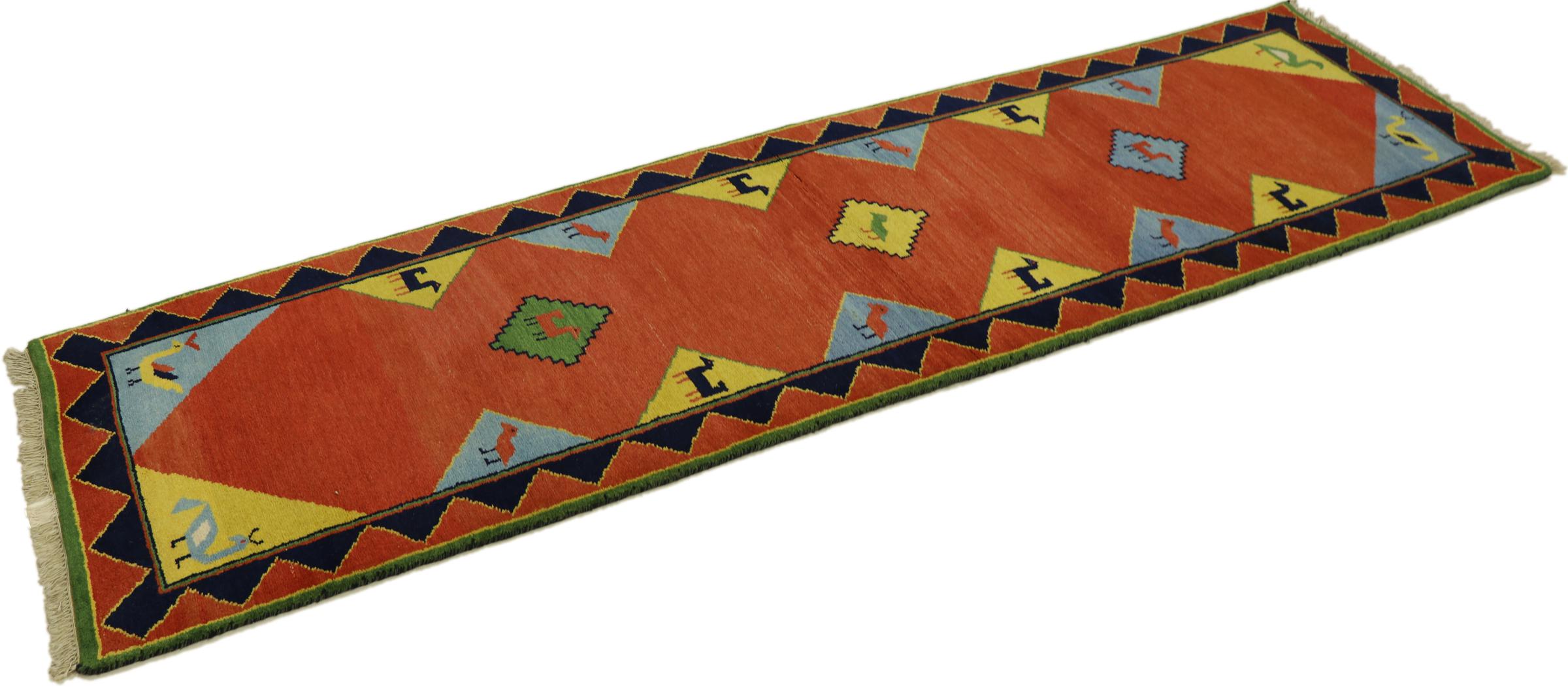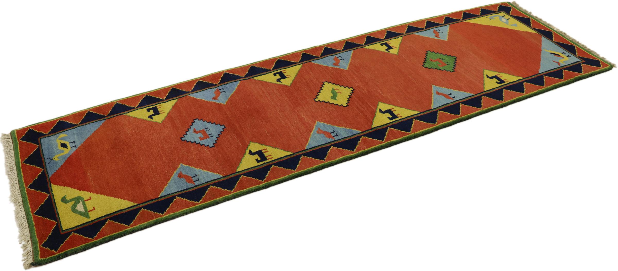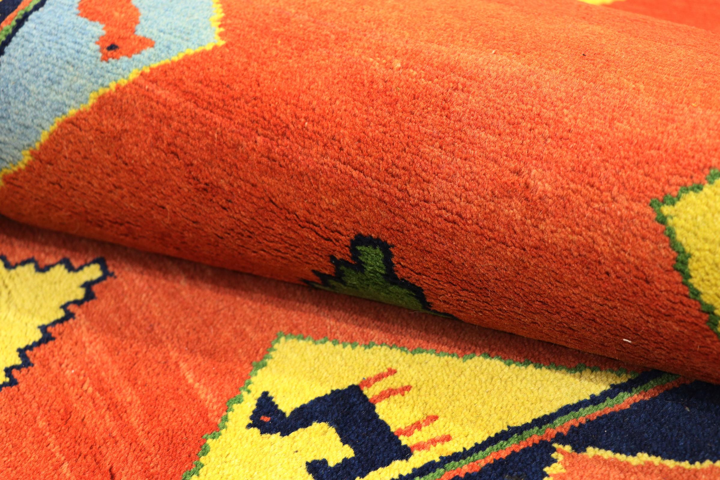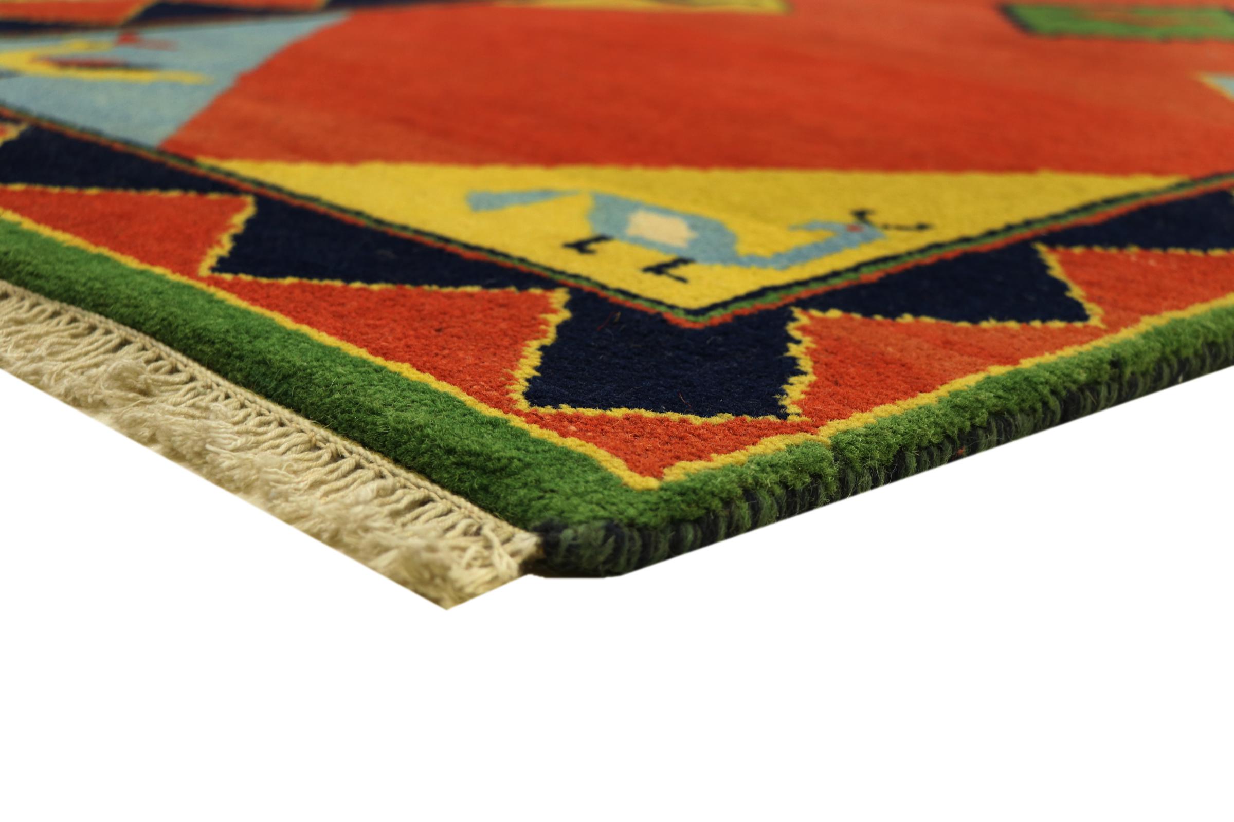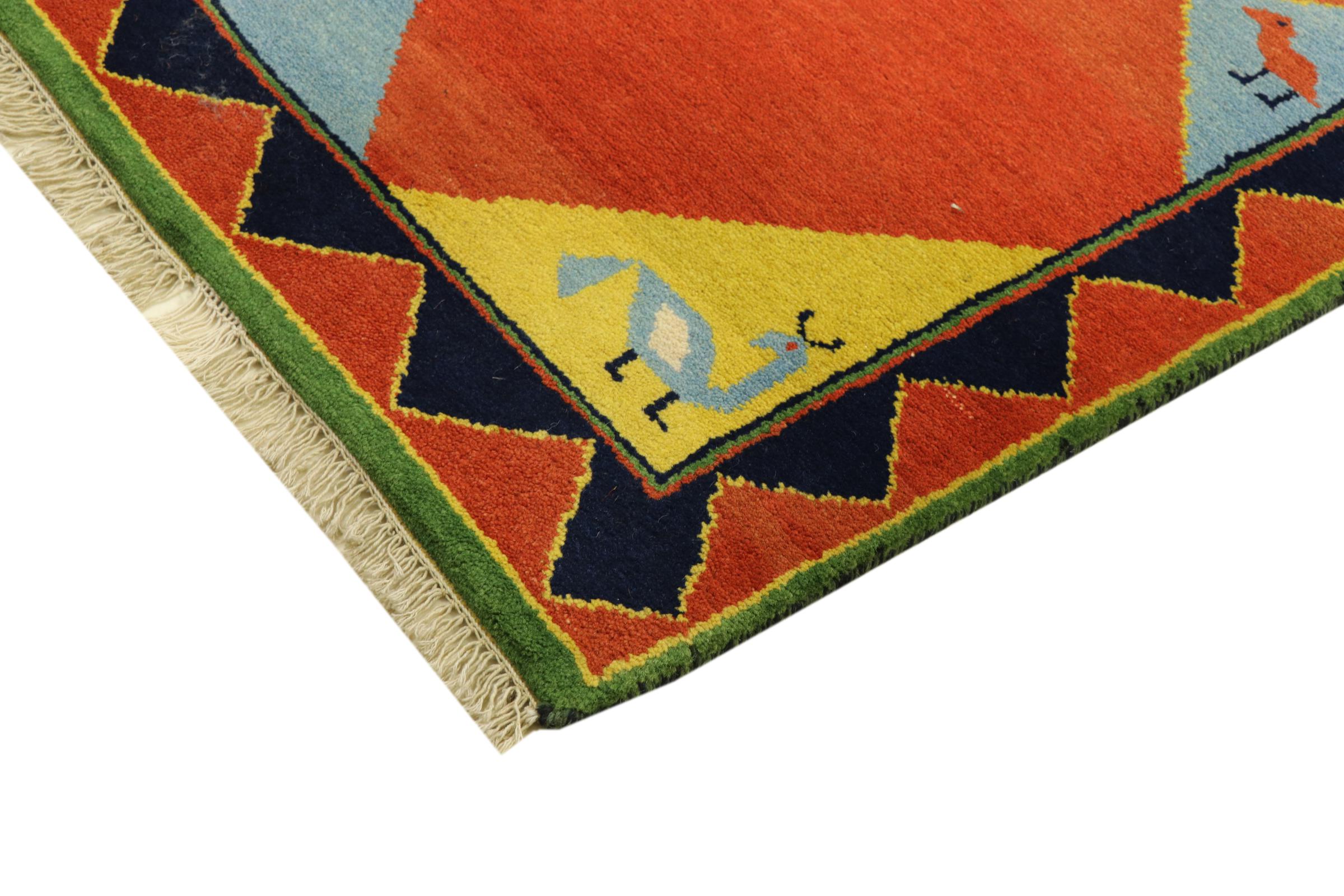 Denna vackra Gabbeh-matta var handknuten i Indien. Indiska Gabbeh-mattor är gjorda av mjuk fårull, är trevliga på fötterna och har värmeisolerande egenskaper. De flesta av deras mönster är enkla och tidlösa moderna. De inspirerades av nomadiska folk som låter mycket enkla motiv från omgivningen passera in i mattorna. Indiska Gabbeh-mattor matchar inte riktigt kvaliteten på en persisk Gabbeh, men de har ett mycket bra pris-prestanda-förhållande. Detta gör dem idealiska som en handknuten matta på entréplan.