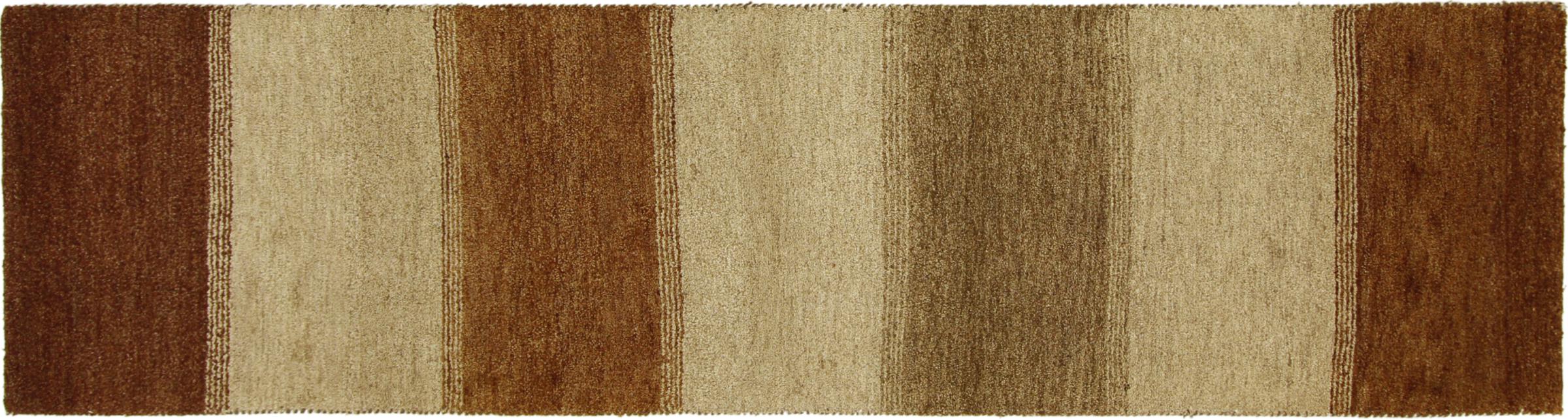 Denna vackra Gabbeh-matta var handknuten i Indien. Indiska Gabbeh-mattor är gjorda av mjuk fårull, är trevliga på fötterna och har värmeisolerande egenskaper. De flesta av deras mönster är enkla och tidlösa moderna. De inspirerades av nomadiska folk som låter mycket enkla motiv från omgivningen passera in i mattorna. Indiska Gabbeh-mattor matchar inte riktigt kvaliteten på en persisk Gabbeh, men de har ett mycket bra pris-prestanda-förhållande. Detta gör dem idealiska som en handknuten matta på entréplan.
