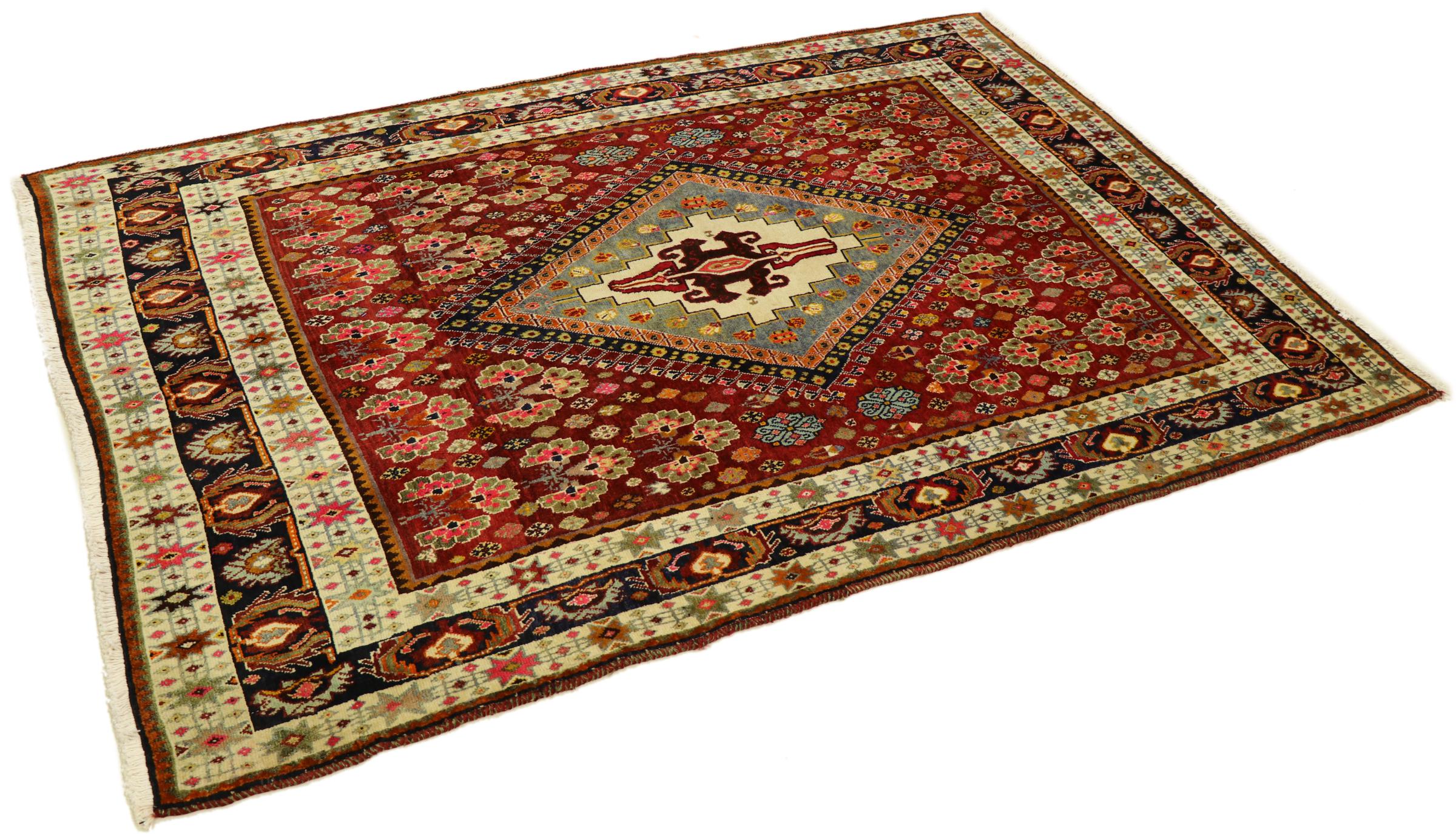Denna matta tillhör byar och nomadmattor från Iran, tidigare Persien. Denna typ av matta är handknuten i små städer och byar i den gamla traditionen. Nomader gör också persiska mattor under öppen himmel. Mattorna är knutna helt från huvudet utan mall. De kännetecknas av klassiska ornament som är utformade i linjära och geometriska mönster. Tack vare deras kulturella och traditionella ursprung har dessa mattor en unik karaktär som förkroppsligar det antika Persien.
